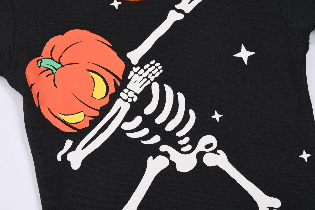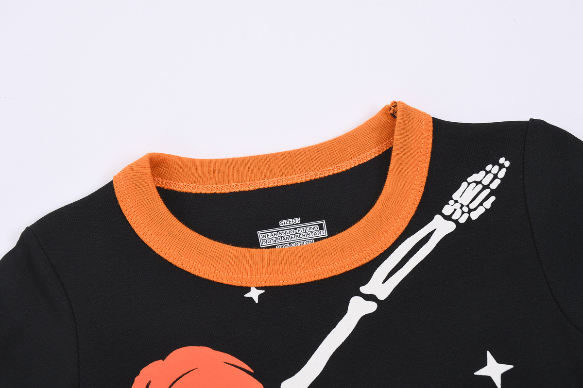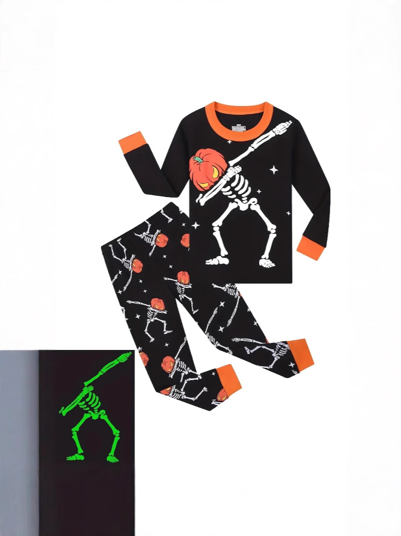 할로윈 뼈 빛나는 소년 잠옷 긴팔 골지 면화 아동복 에어컨 의류 세트