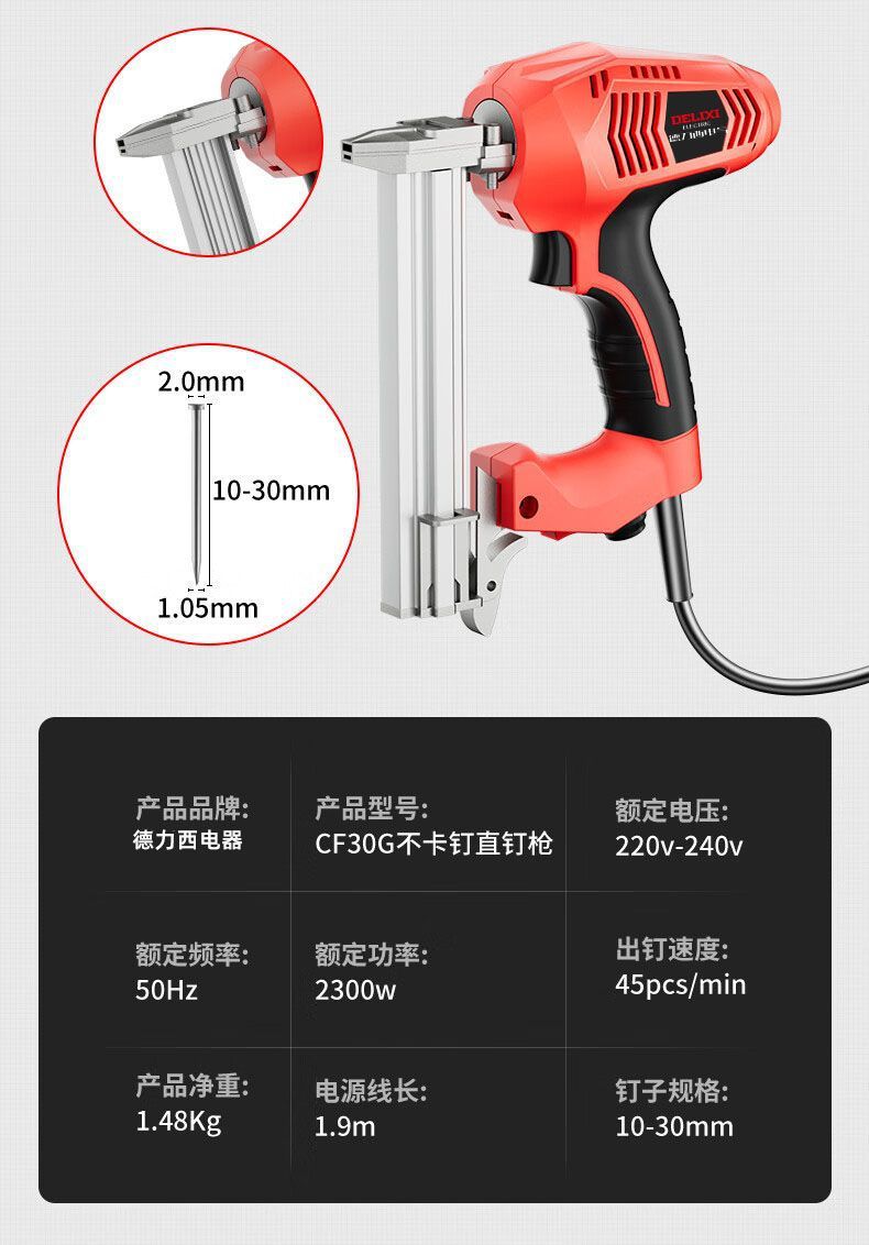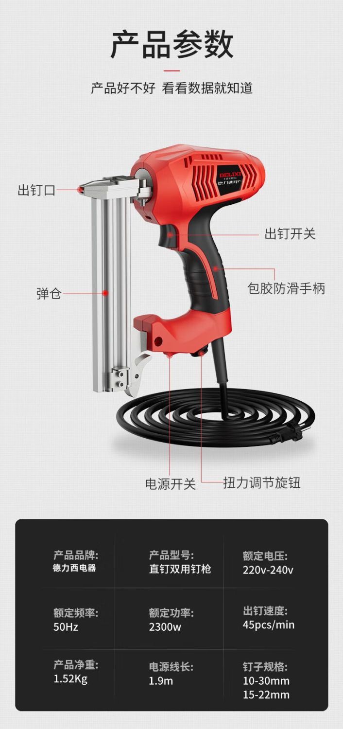 Delixi 전기 네일 건 목공 F30 에어 네일 건 이중 목적 스트레이트 코드 네일 건 네일 건 목공 도구스토어 가기