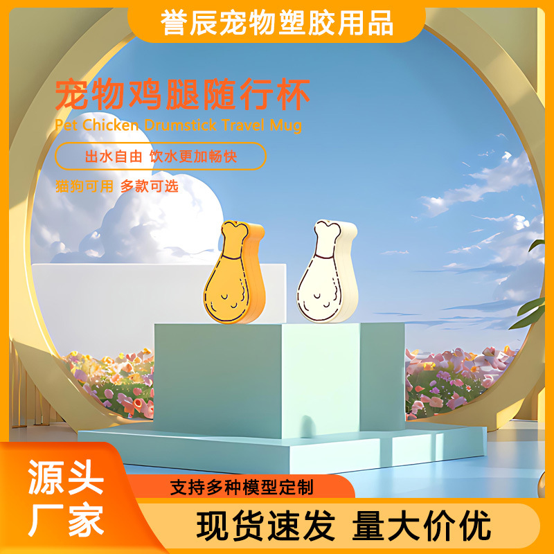 애완 동물 야외 마시는 컵 투인원 피더 이중 목적 개와 고양이 여행 컵 귀여운 닭 다리 모양스토어 가기