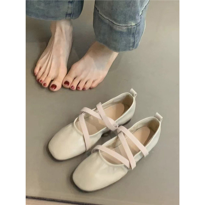 양가죽 버전 ~ 프렌치 크로스 스트랩 레드 메리제인 슈즈 플랫 슈즈 여성용 펌프스 이브닝 바람 요정 발레 슈즈
