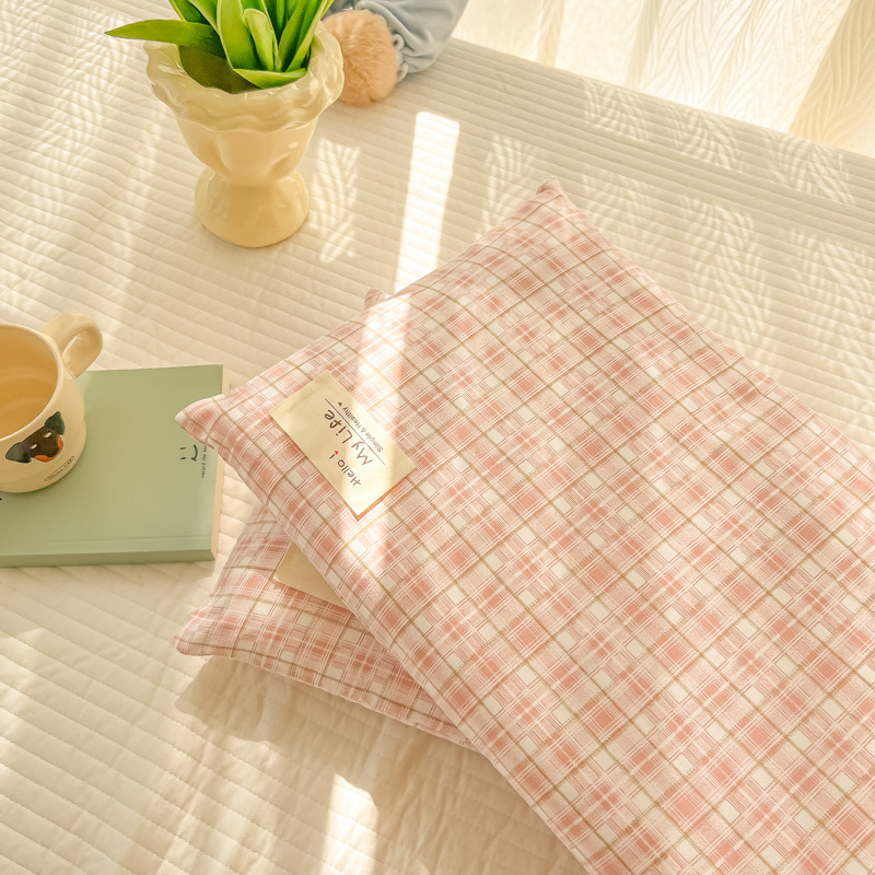 • 피치핑크 체크무늬/전용 [워시드 코튼 베갯잇]
