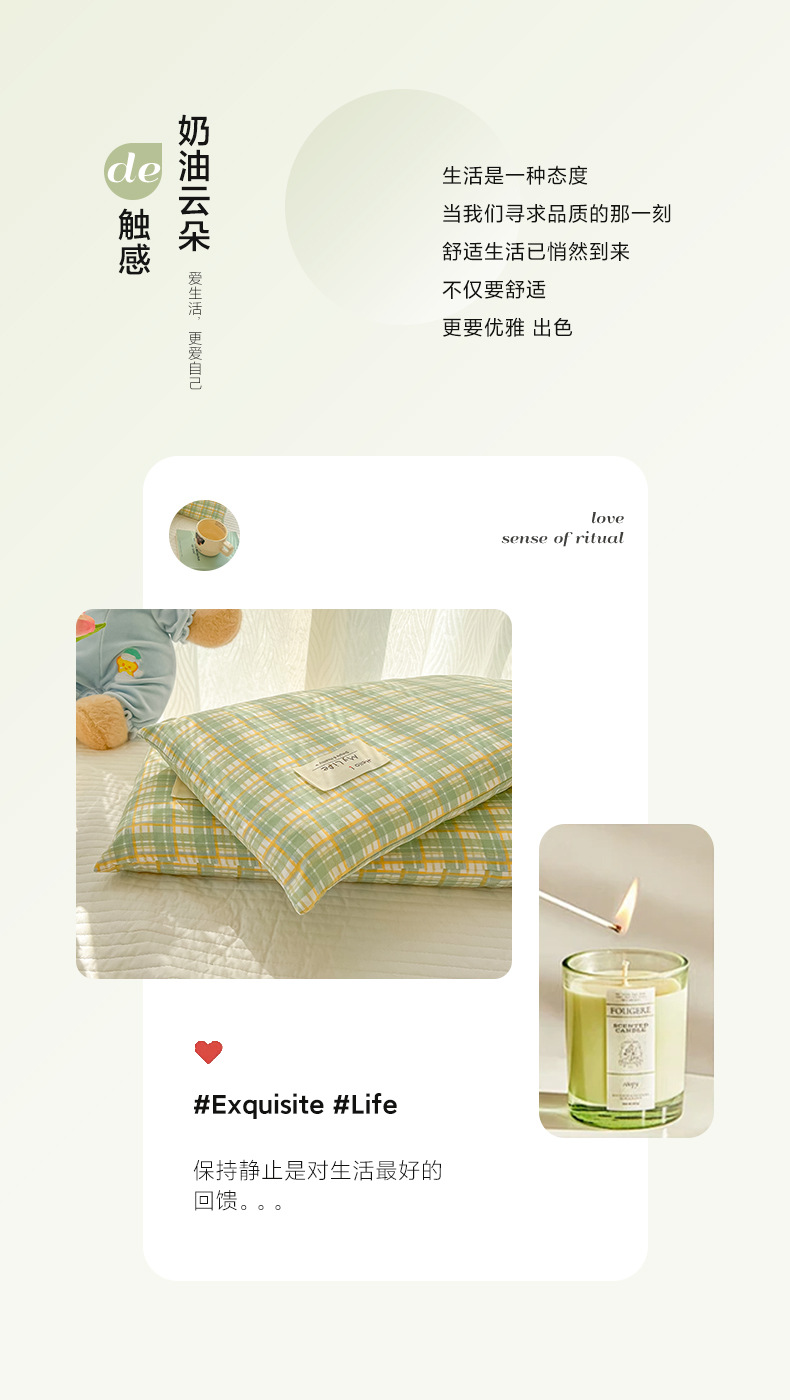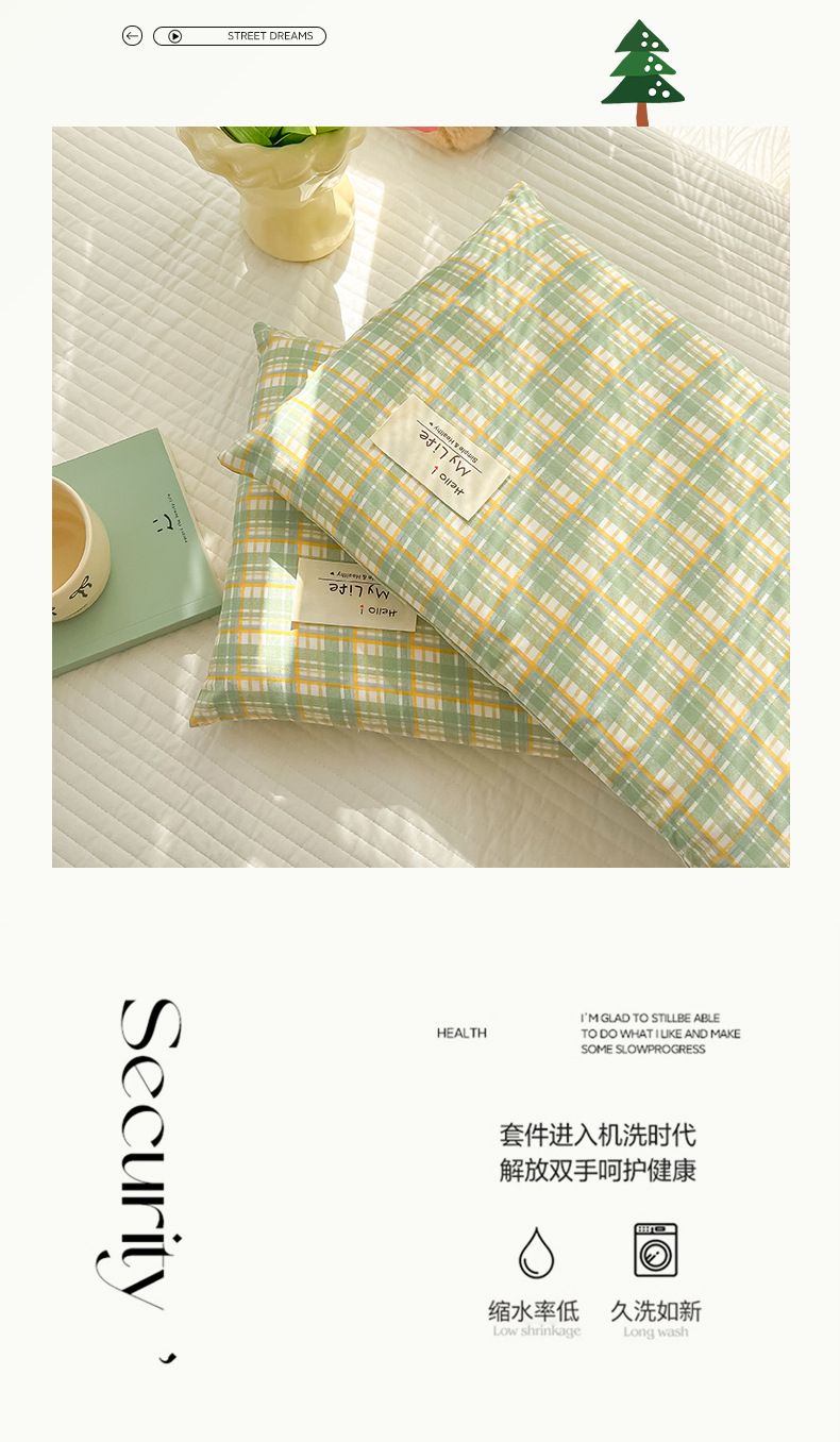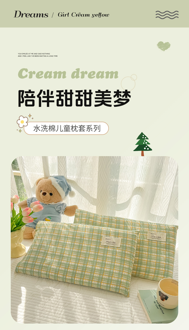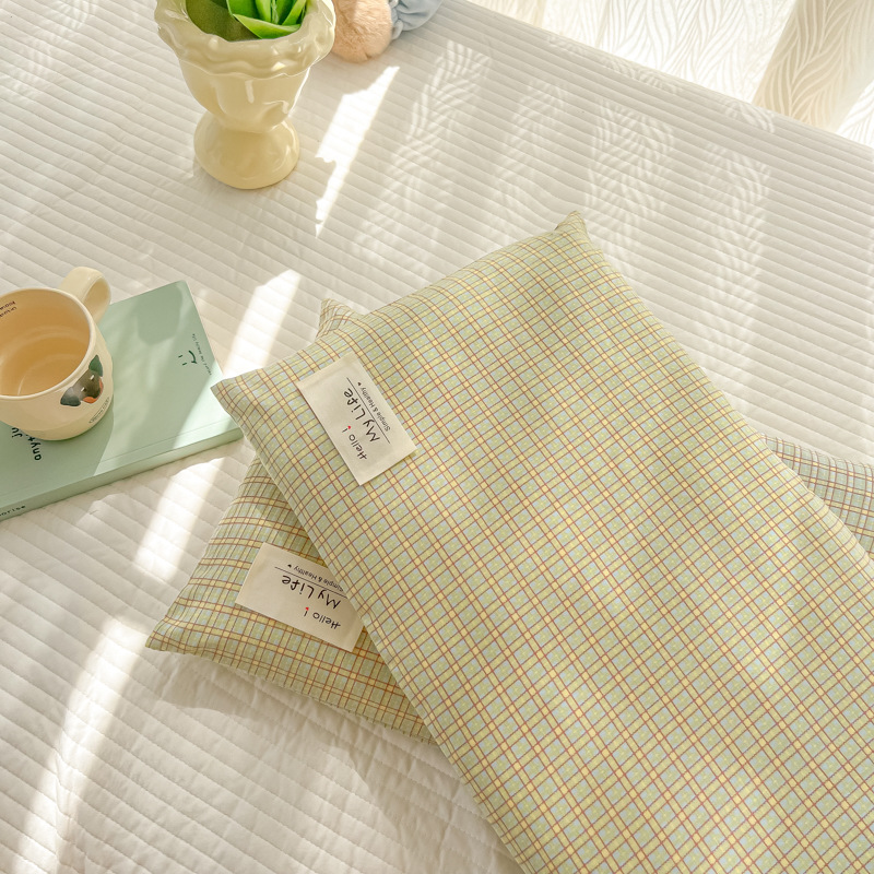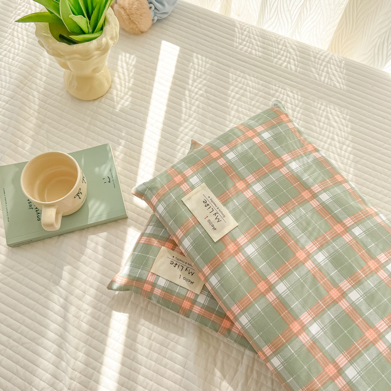 • 녹색 작은 격자/쌍 [세탁된 면 베갯잇]