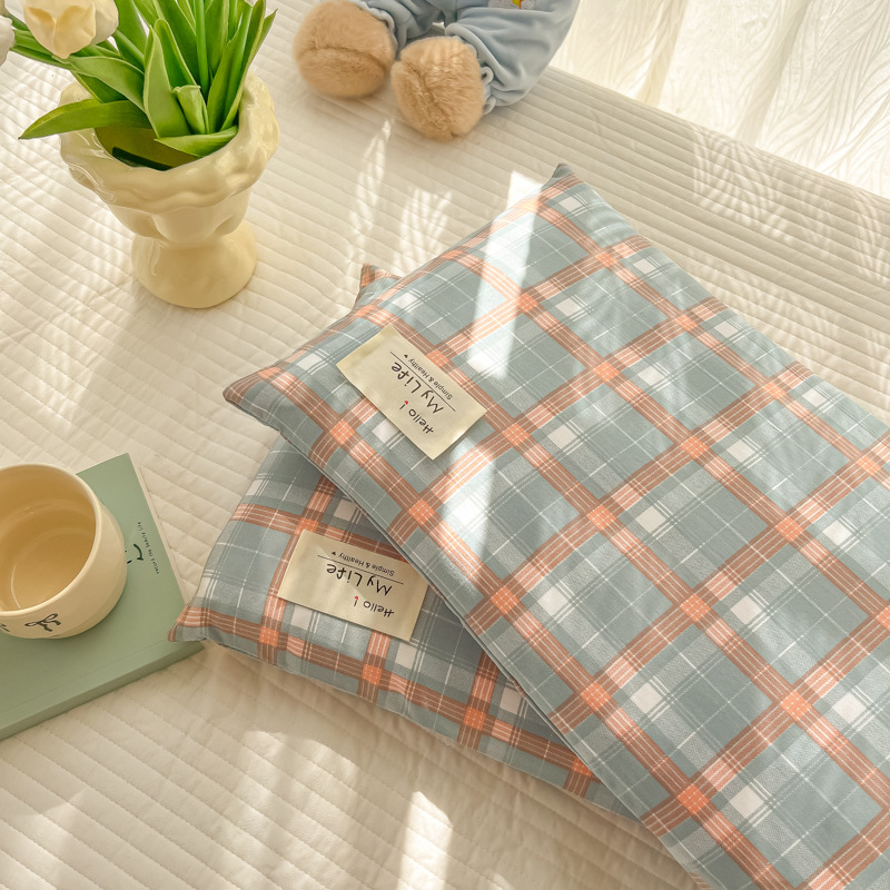 • 칭메이 오렌지 체크/전용 [워시드 코튼 베갯잇]