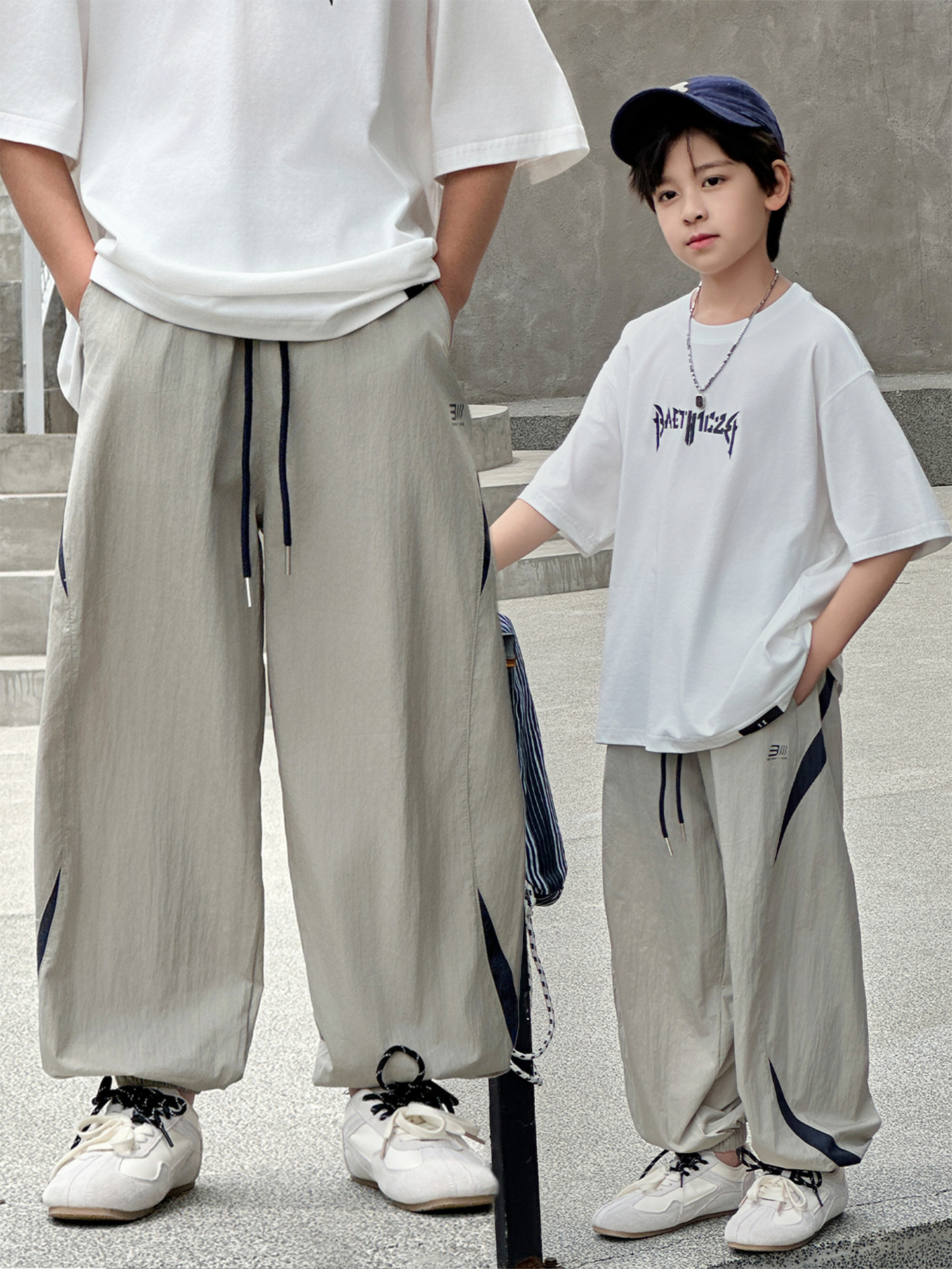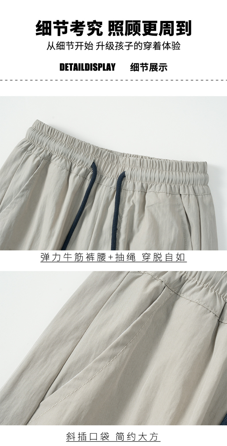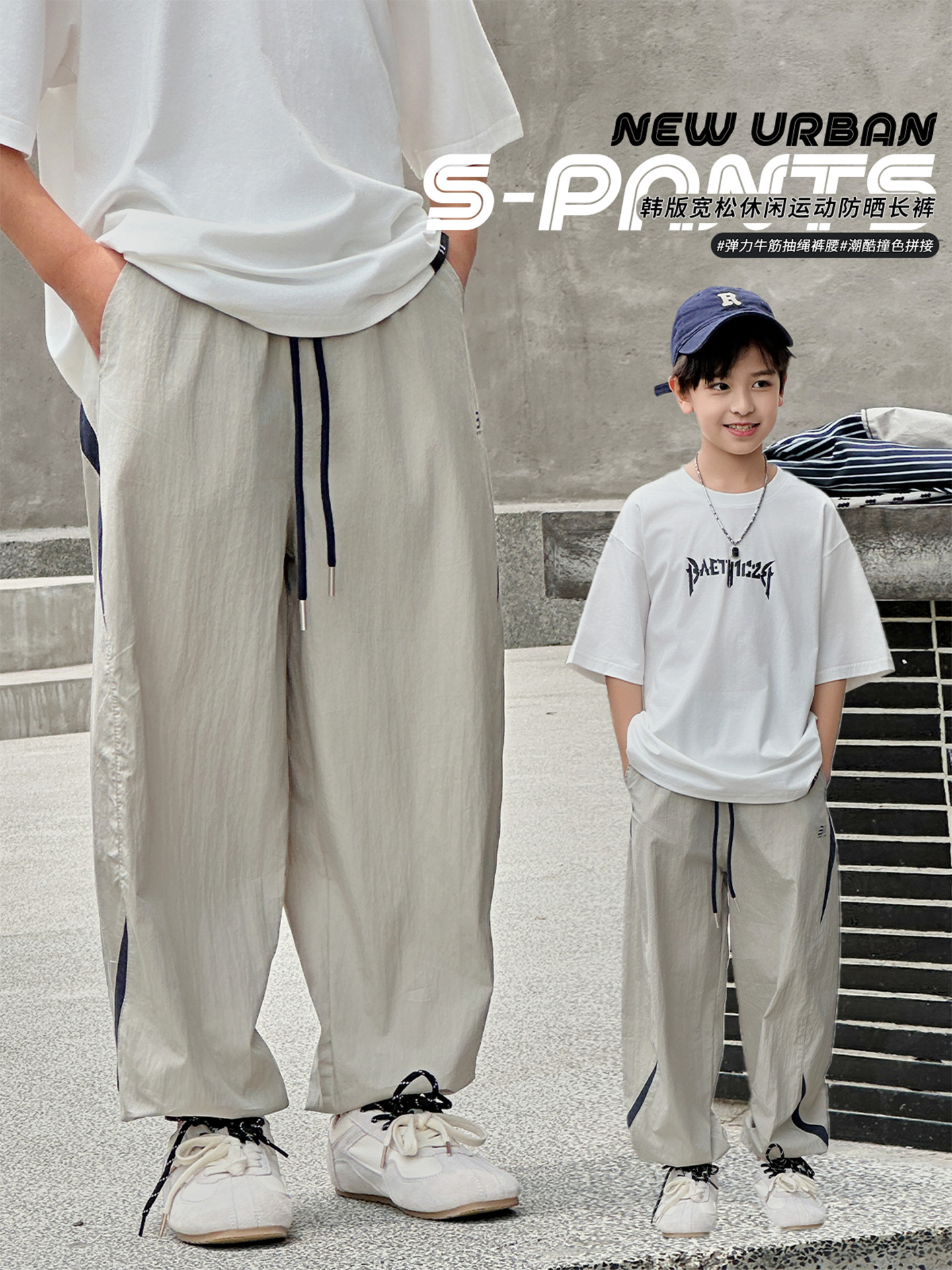 어린이 컬러 매칭 소년 바지 2025 여름 새로운 한국 스타일 스플 라이스 모기 방지 루즈 캐주얼 바지 얇은스토어 가기