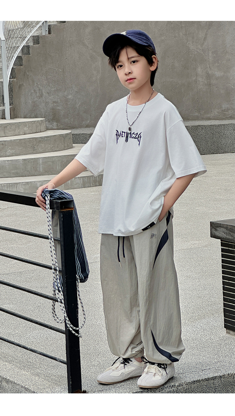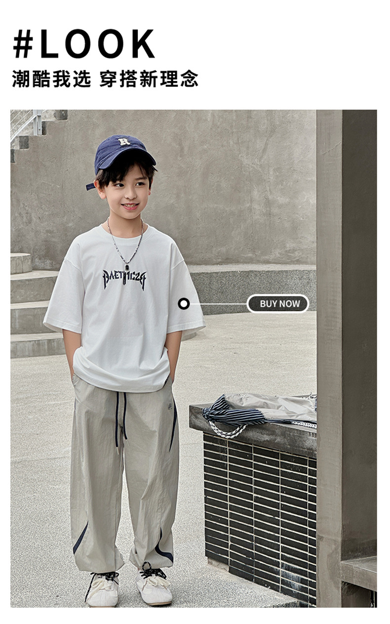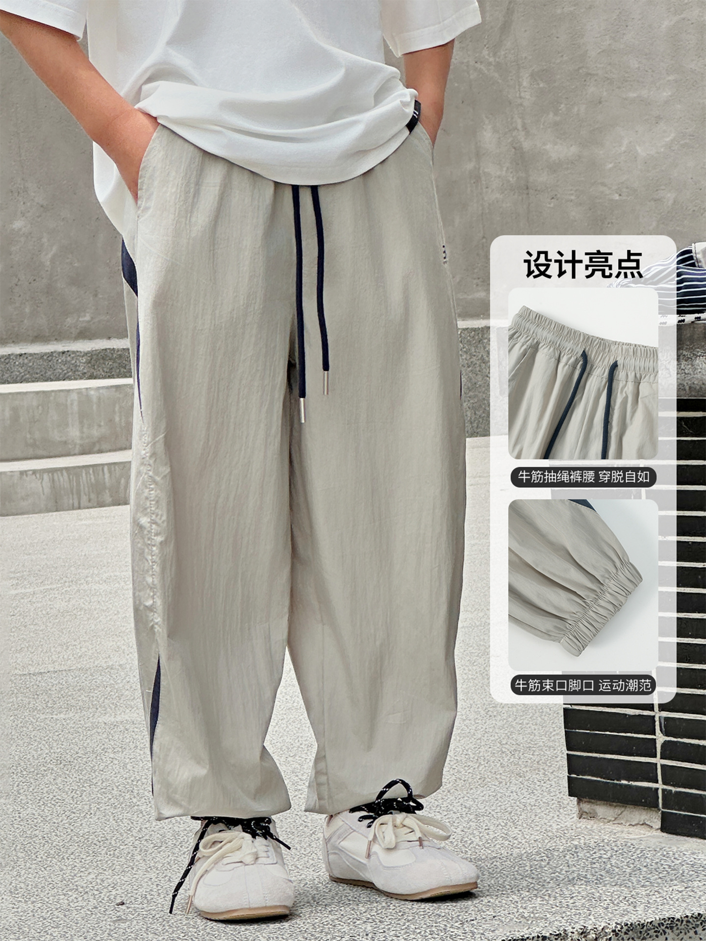 어린이 컬러 매칭 소년 바지 2025 여름 새로운 한국 스타일 스플 라이스 모기 방지 루즈 캐주얼 바지 얇은스토어 가기