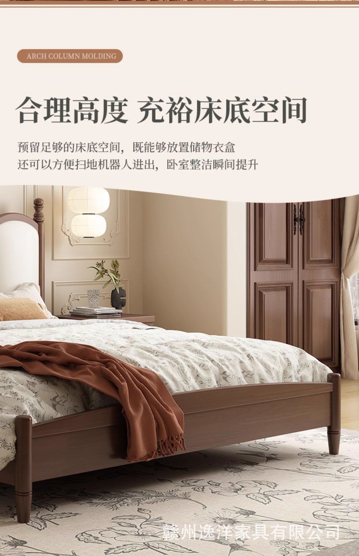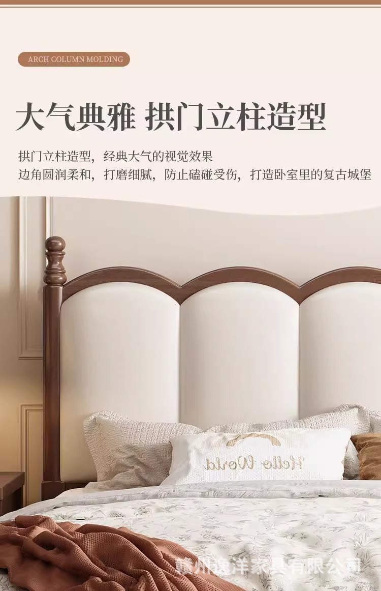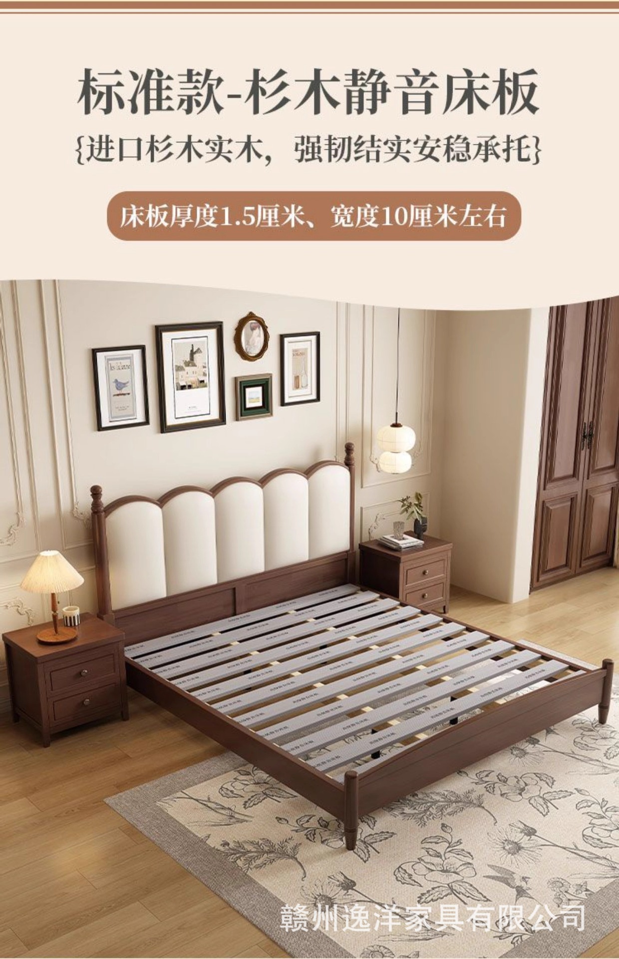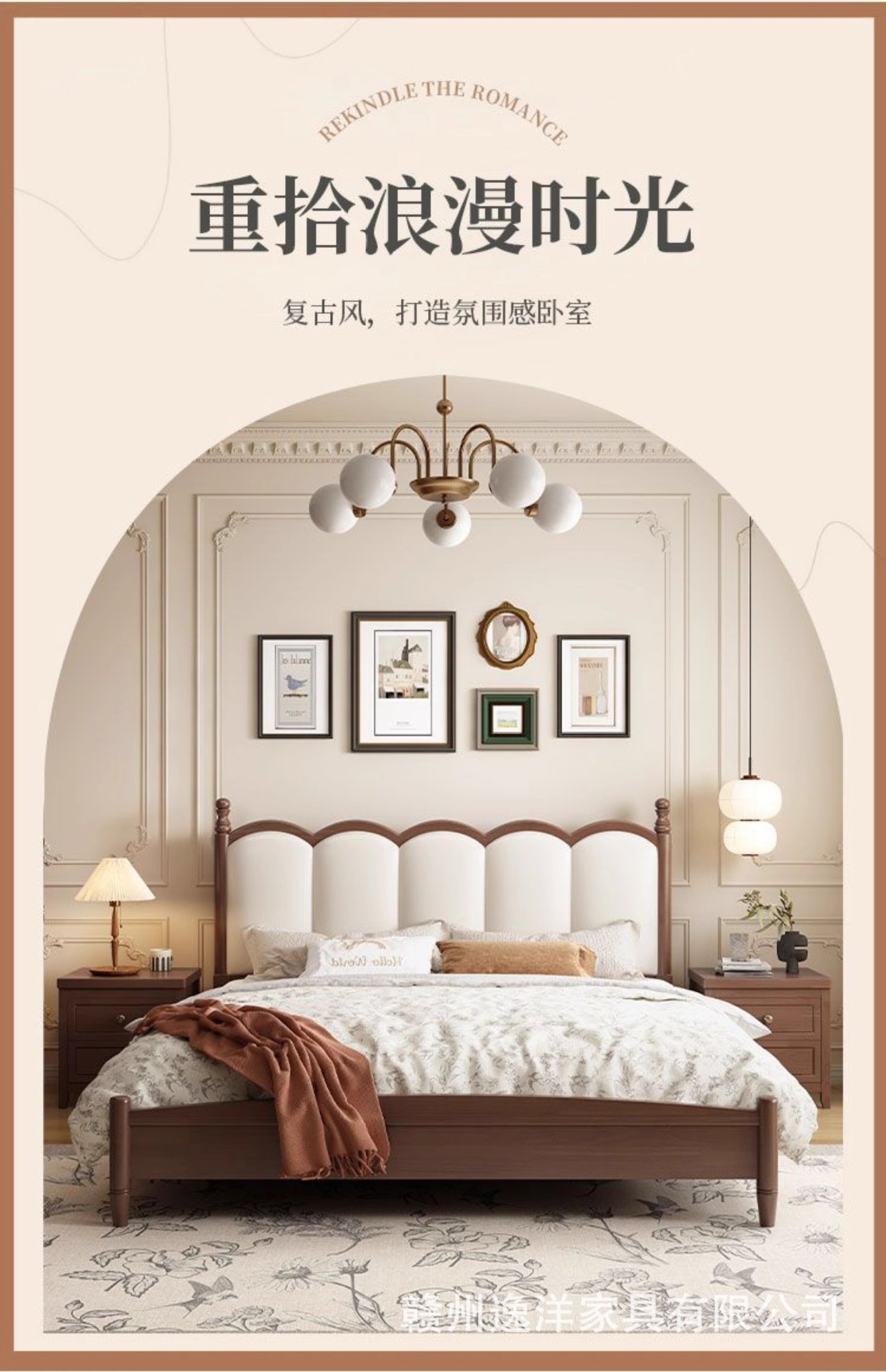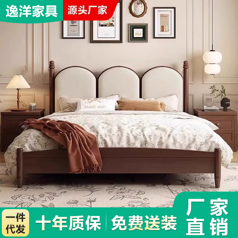 현대적이고 심플한 중세 스타일의 원목 침대, 복고풍 소프트 침대, 미국식 1.8m 마스터 침실 대형 침대, 1.5m 프렌치 싱글 침대스토어 가기