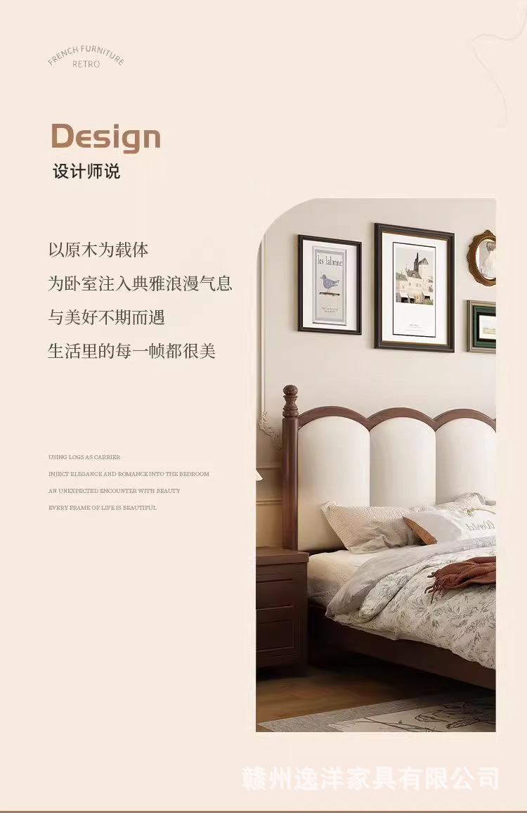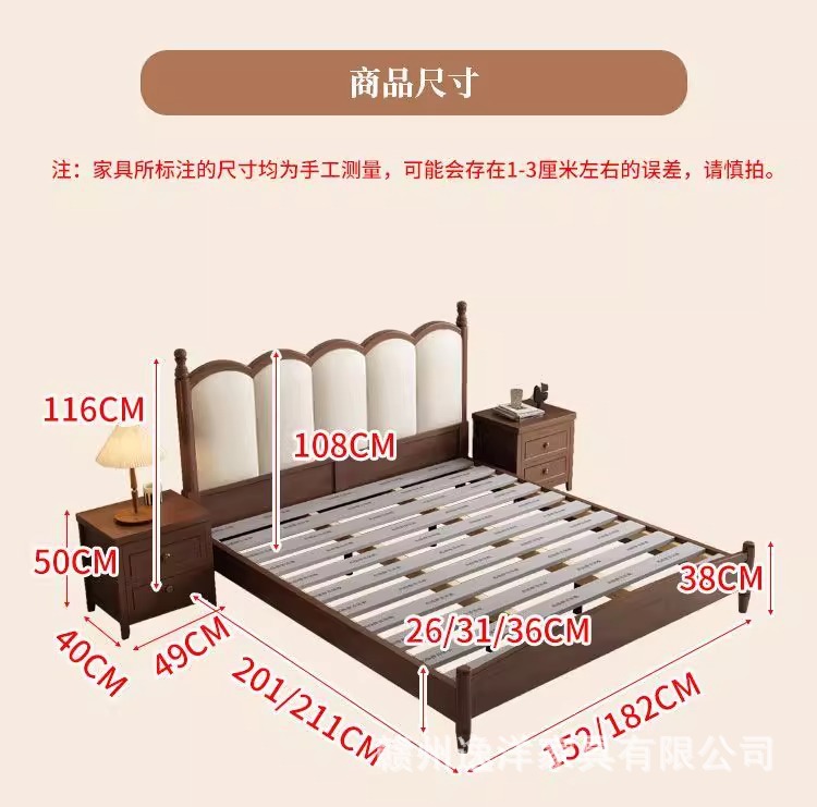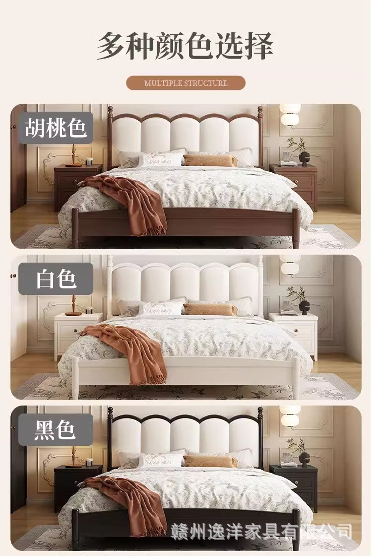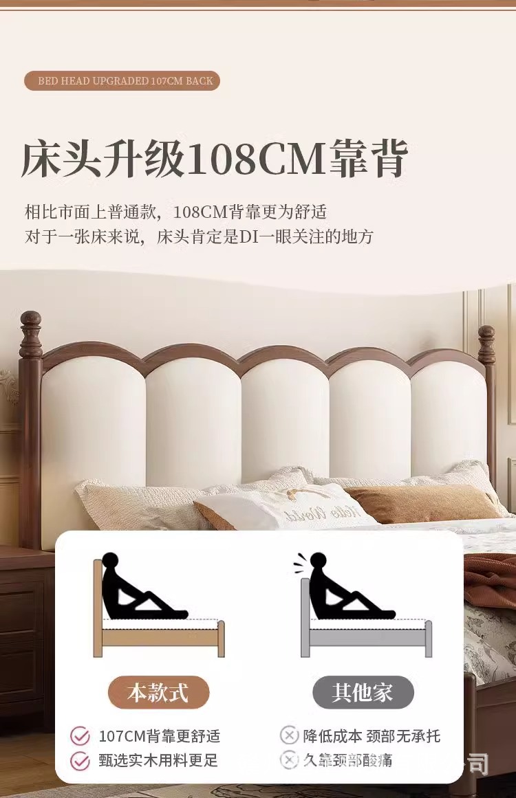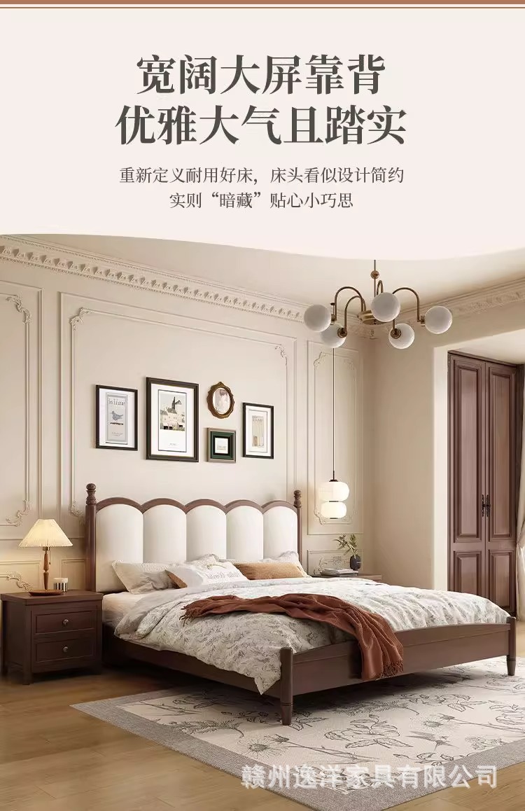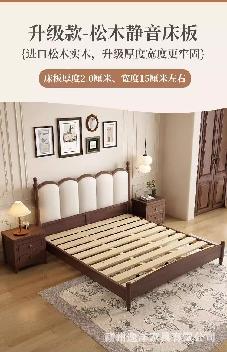 현대적이고 심플한 중세 스타일의 원목 침대, 복고풍 소프트 침대, 미국식 1.8m 마스터 침실 대형 침대, 1.5m 프렌치 싱글 침대스토어 가기