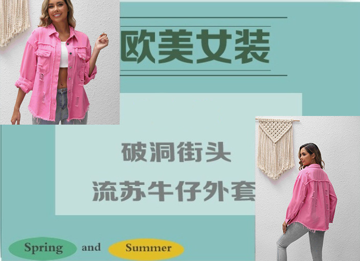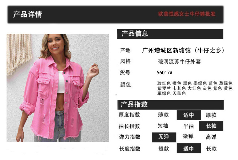 국경 유럽과 미국의 데님 재킷 여성 핑크 느슨한 데님 찢어진 재킷 플러스 사이즈 여성 긴팔 데님 재킷스토어 가기