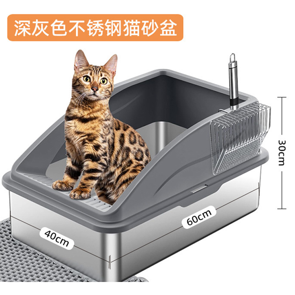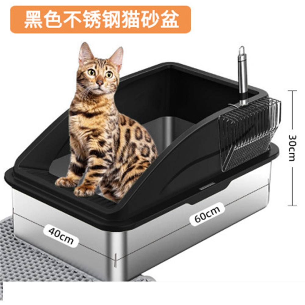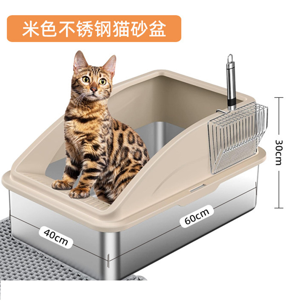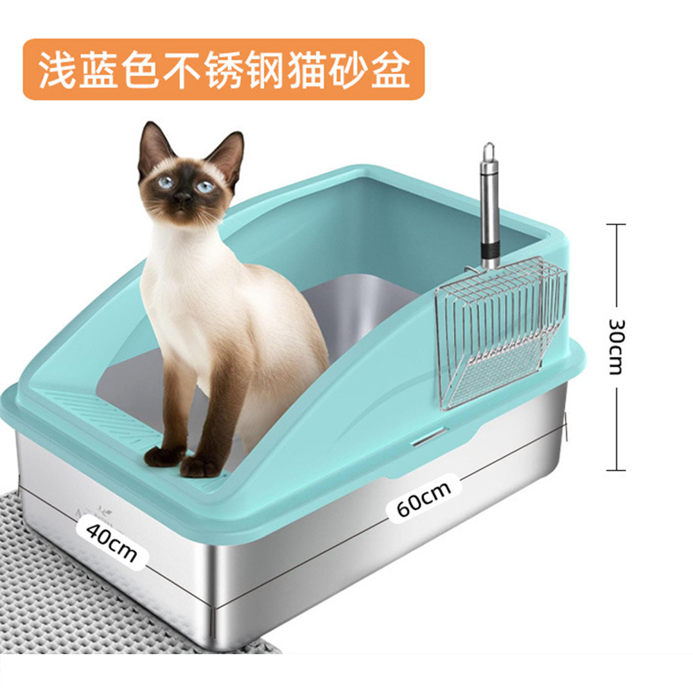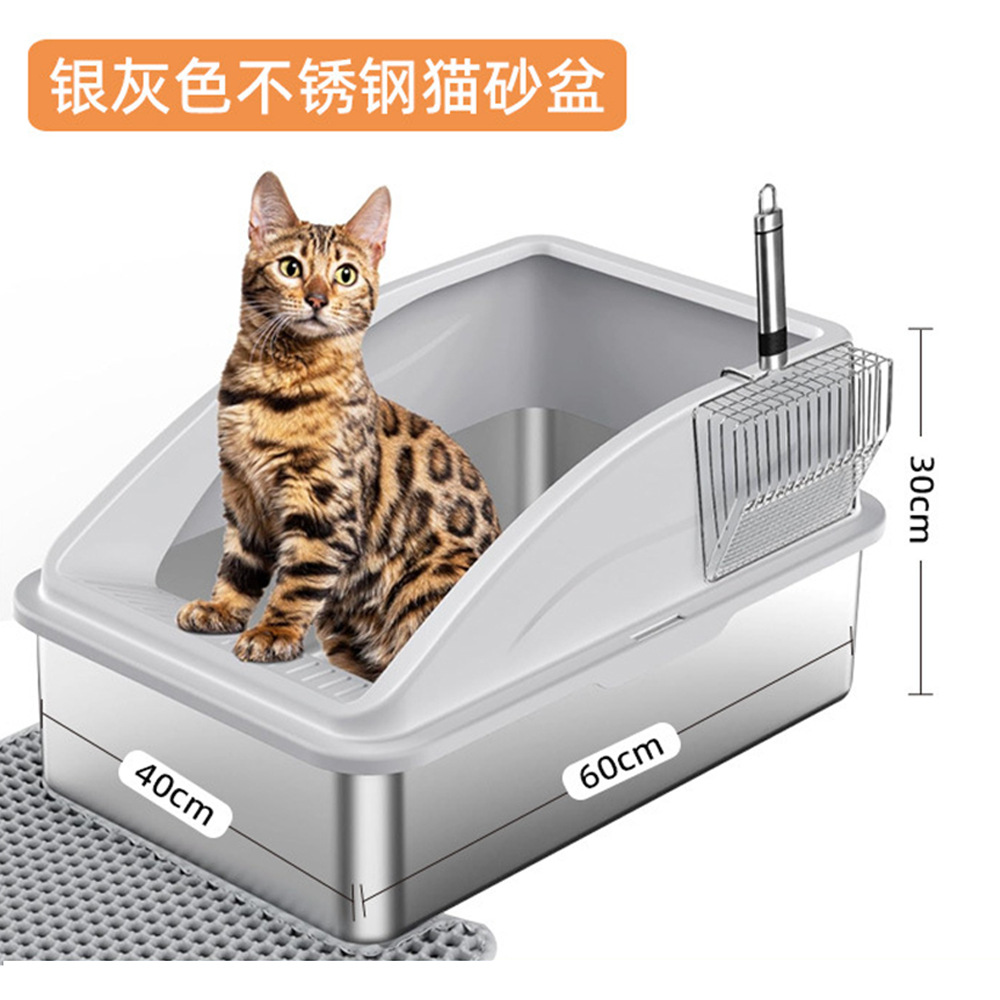 국경 간 아마존 스테인레스 스틸 고양이 쓰레기 상자 반 밀폐형 고양이 화장실 냄새 방지 및 물 튀김 방지 스테인레스 스틸 고양이 쓰레기 상자 대형스토어 가기