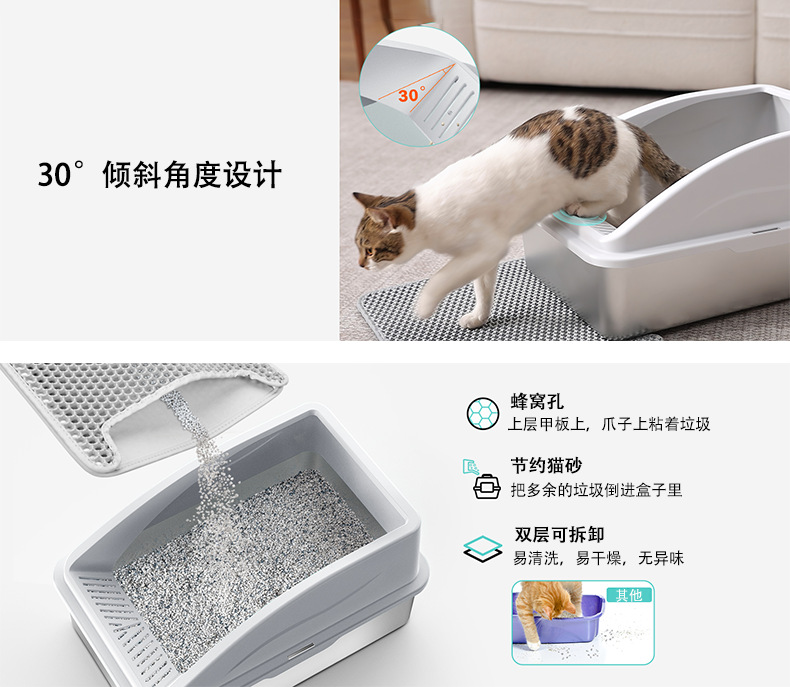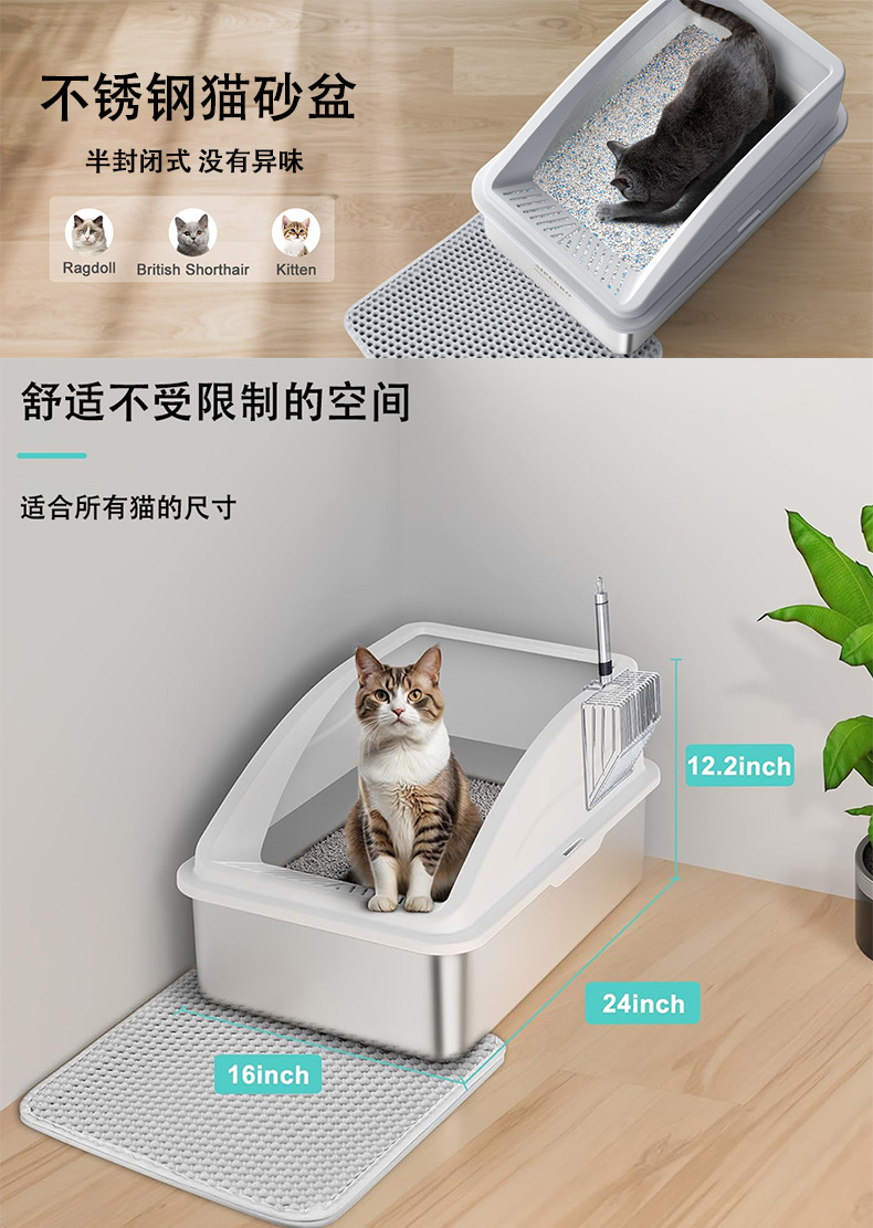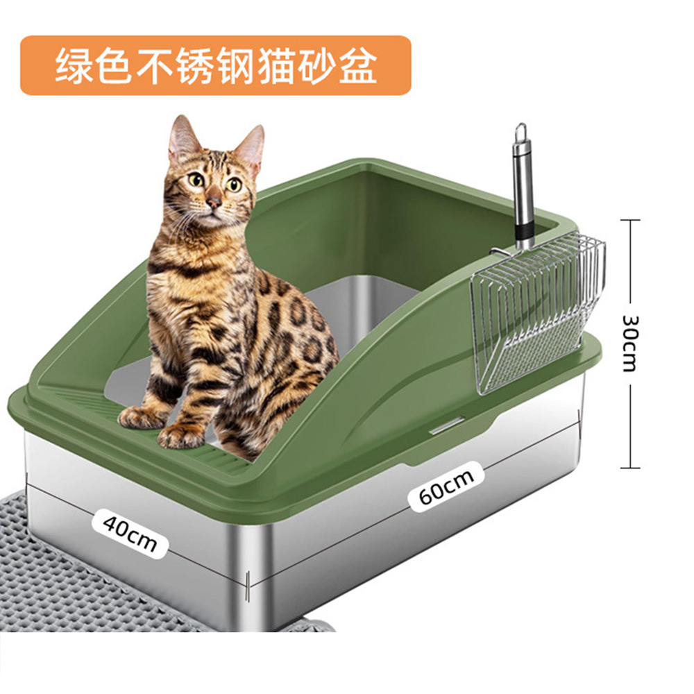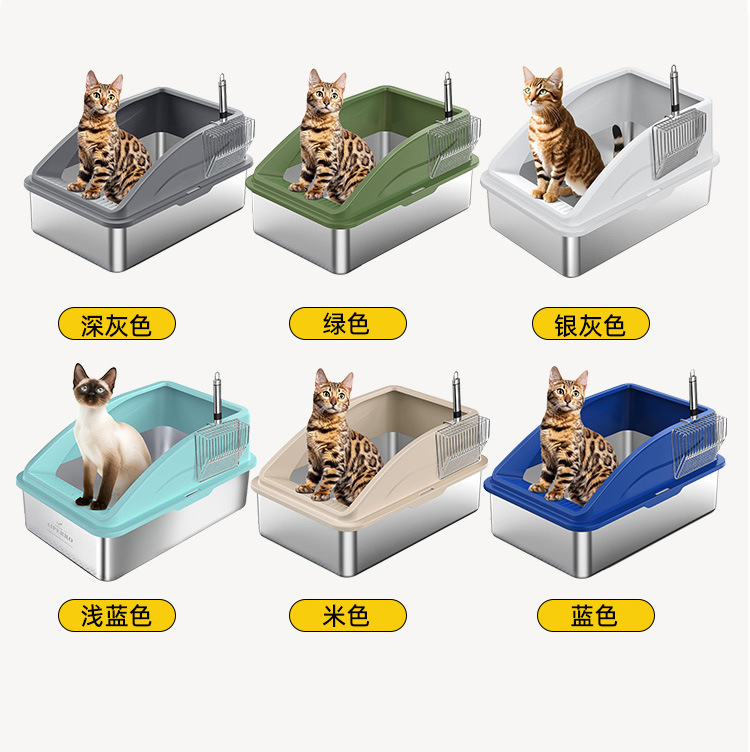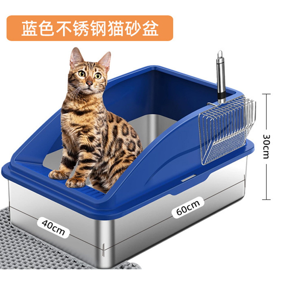 국경 간 아마존 스테인레스 스틸 고양이 쓰레기 상자 반 밀폐형 고양이 화장실 냄새 방지 및 물 튀김 방지 스테인레스 스틸 고양이 쓰레기 상자 대형스토어 가기