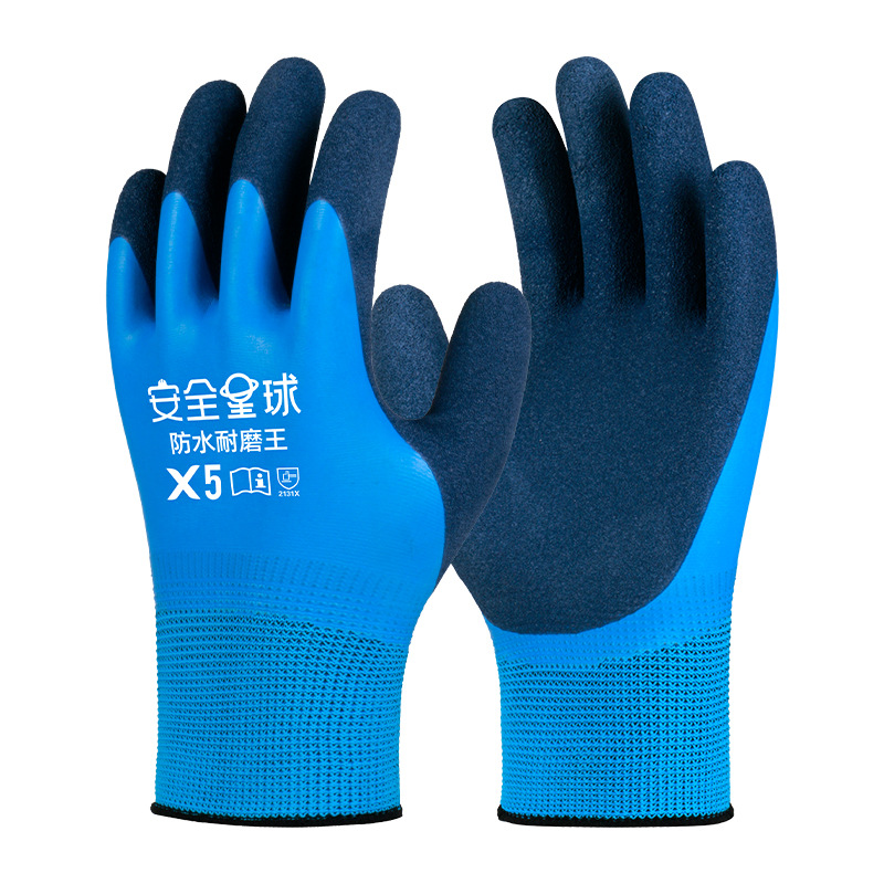 방수 노동 보호 장갑, 내마모성, 미끄럼 방지 및 내유성, 전체 가죽 이중층 라텍스 건설 현장 도매 고무 함침 보호 장갑