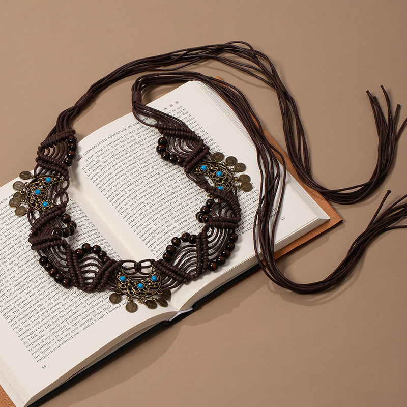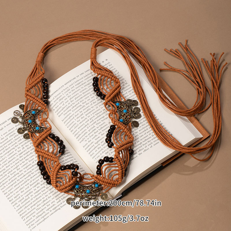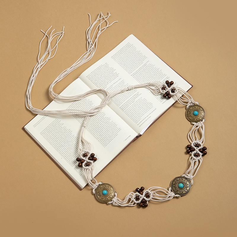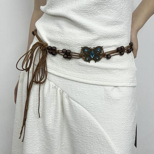 波西米亚风金属蝴蝶结腰绳女春夏新款复古民族风腰链百搭抽绳腰带饰品批发货源