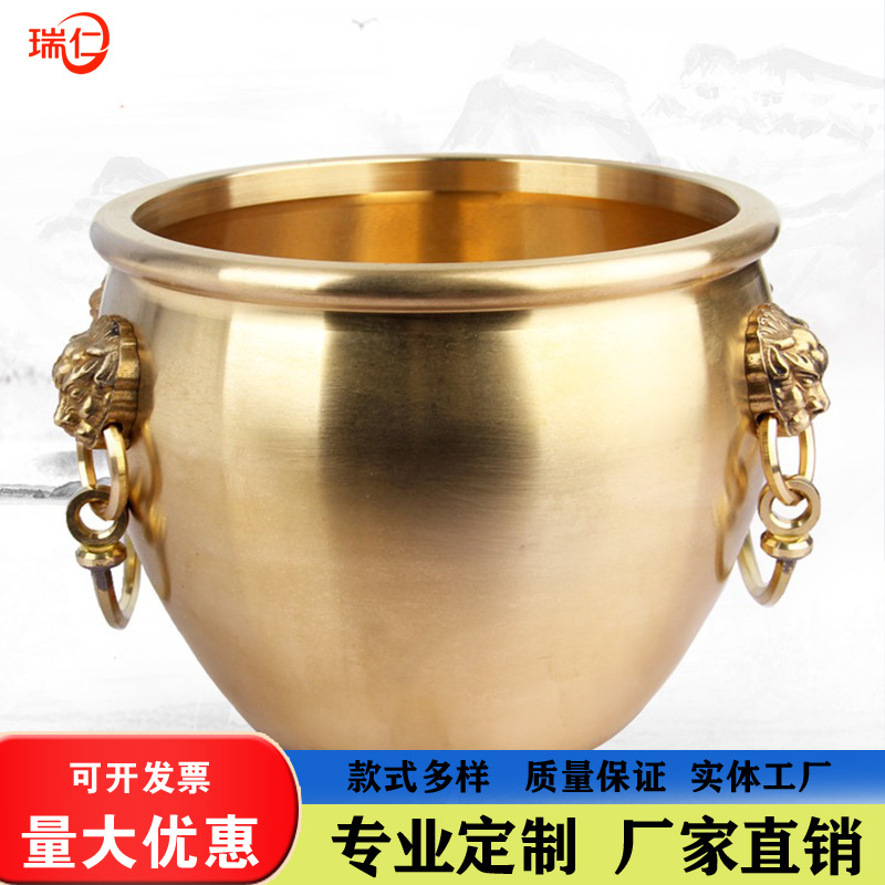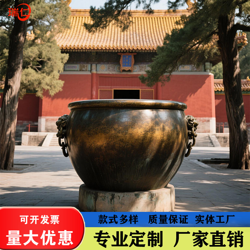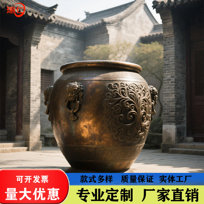맞춤형 주조 구리 골동품 정원 풍경 대형 항아리 조각 야외 안뜰 장식 호랑이 머리 보물 상자 자금성 항아리 장식품스토어 가기