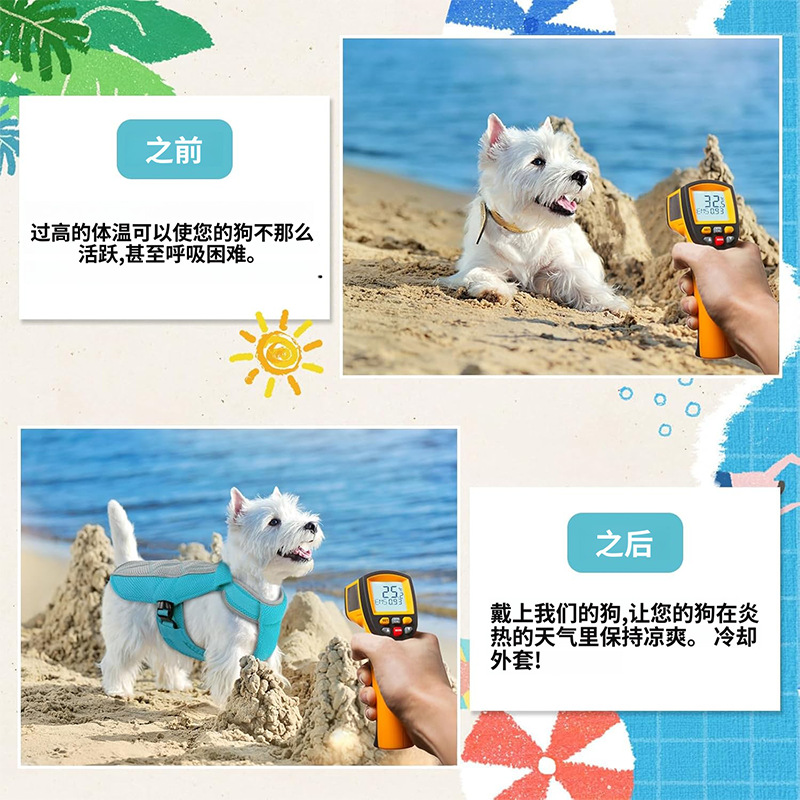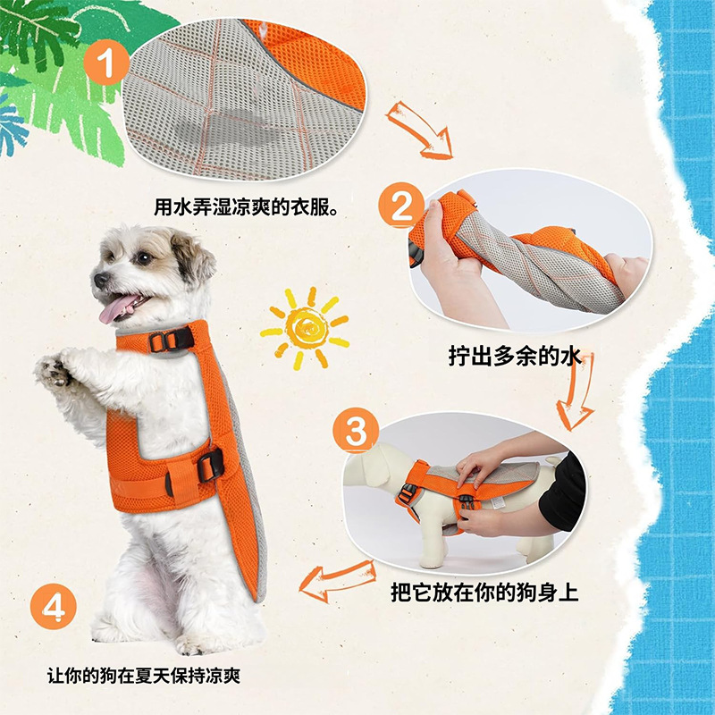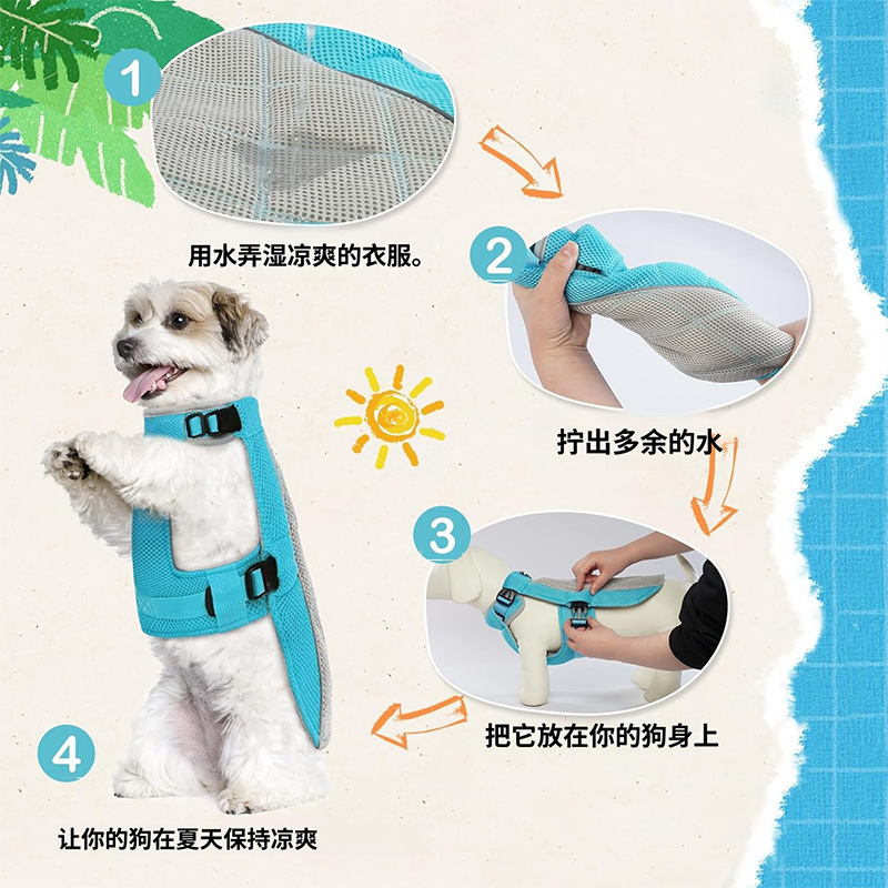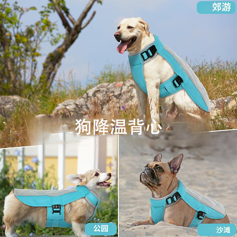강아지 여름 쿨링 의류, 반려동물 시원한 조끼, 가볍고 통기성 좋은 원단, 반려동물 열사병 예방 및 냉각 의류, 쿨링복스토어 가기