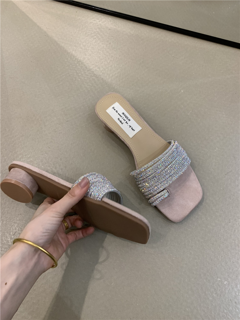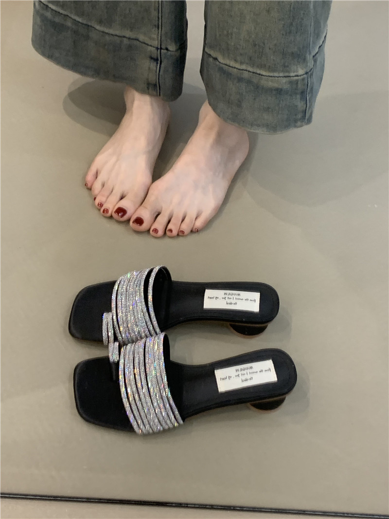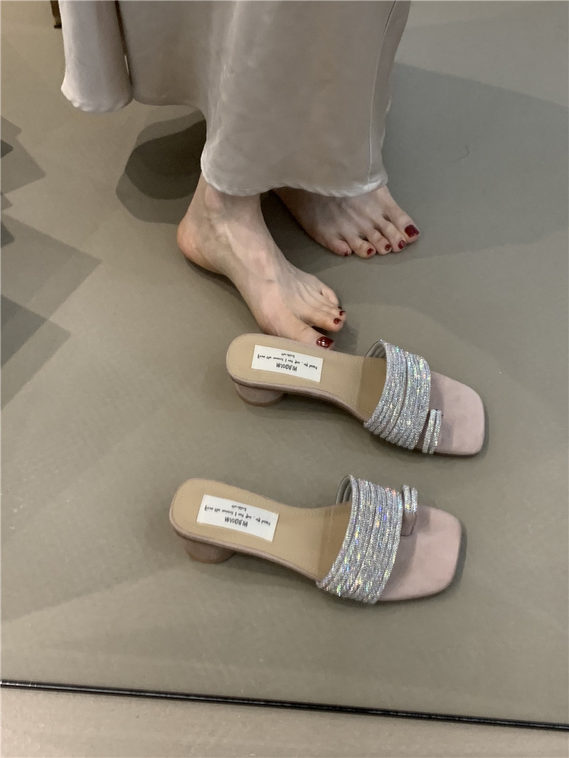 프렌치 젠틀 페어리 샌들 2025 여름 스타일 빙빙 라인스톤 두꺼운 굽 원라인 샌들스토어 가기