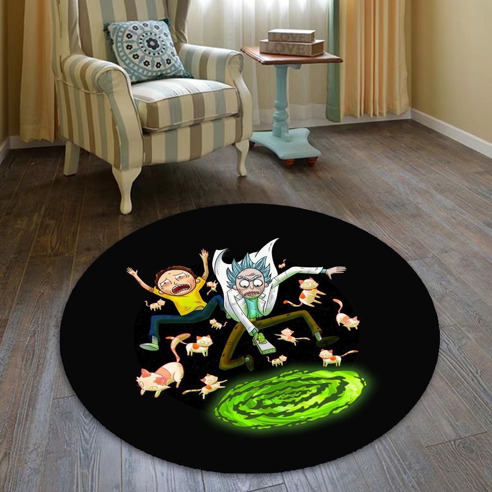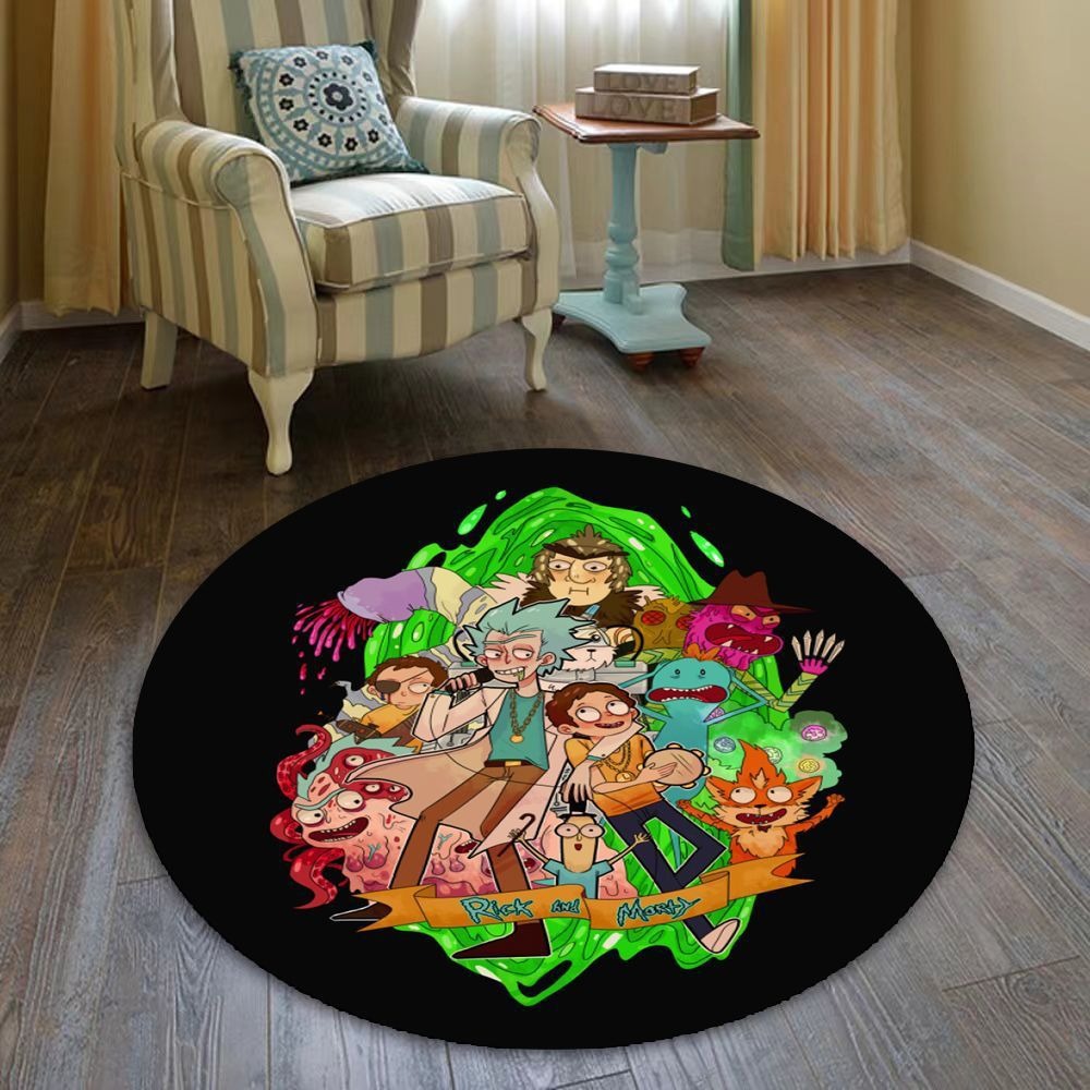 Rick and Morty 만화 애니메이션 라운드 카펫 어린이 침실 침대 옆 바닥 매트 드레싱 의자 발 패드 얼룩 방지 라운드 카펫스토어 가기