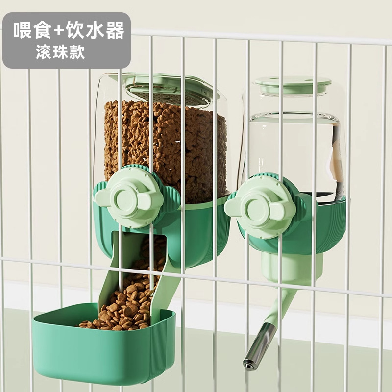 • 민트 그린 롤러 볼 식수대 + 피더