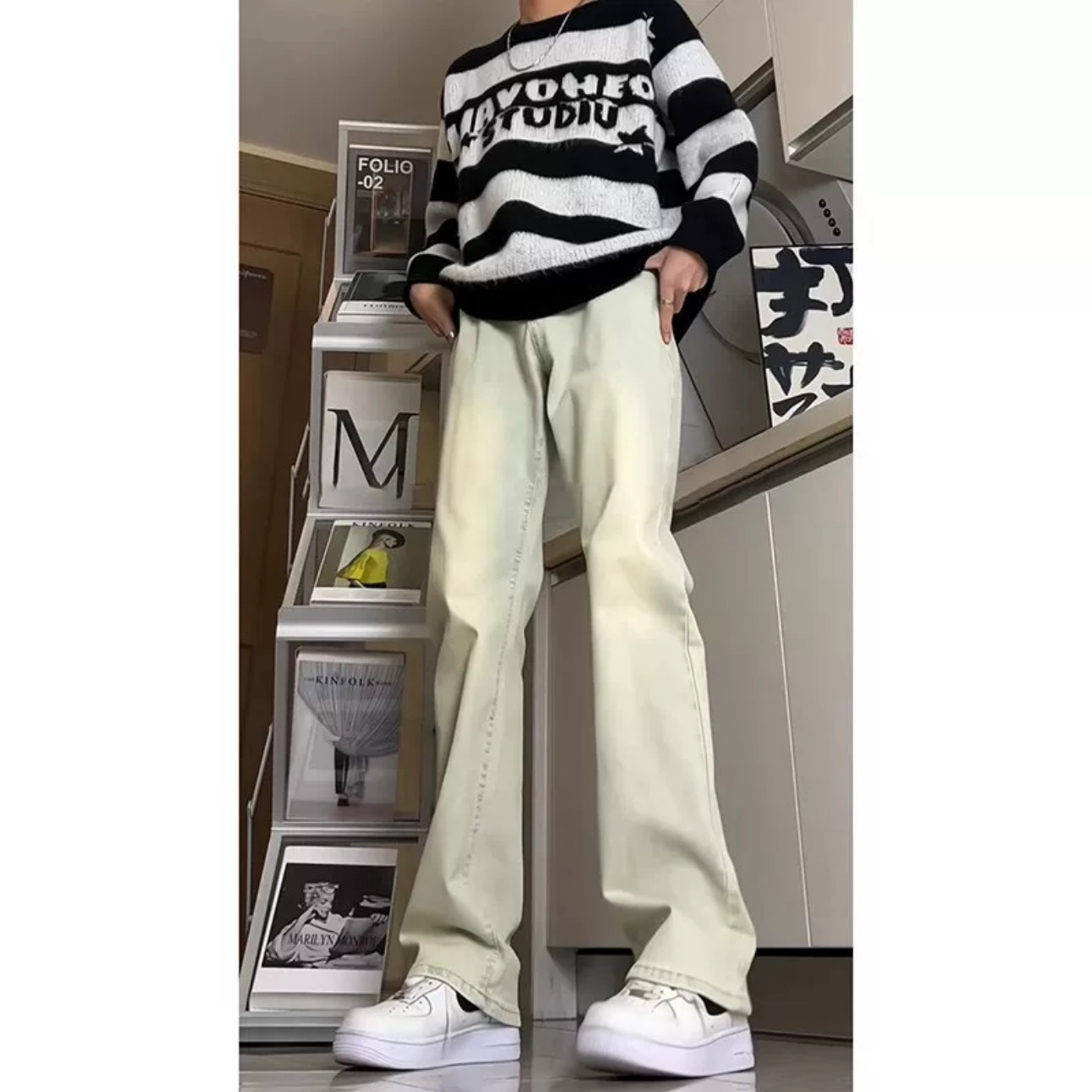 아메리칸 하이 스트리트 레트로 블루 하이 웨이스트 청바지 남성 가을 바이브 팬츠 키 큰 슬림 스트레이트 부츠컷 팬츠스토어 가기