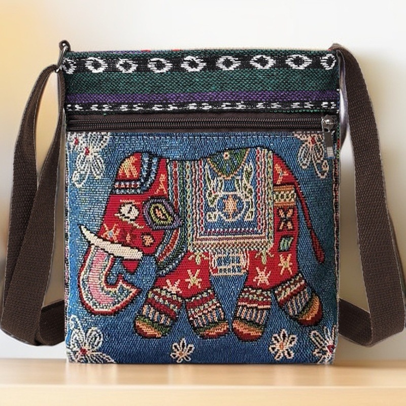 맞춤형 여성용 크로스백 캔버스백 민족풍 코끼리 부엉이 여성용 핸드폰 가방 쇼핑용 숄더백스토어 가기