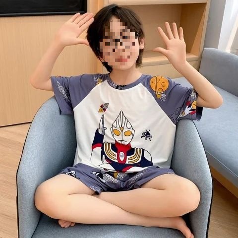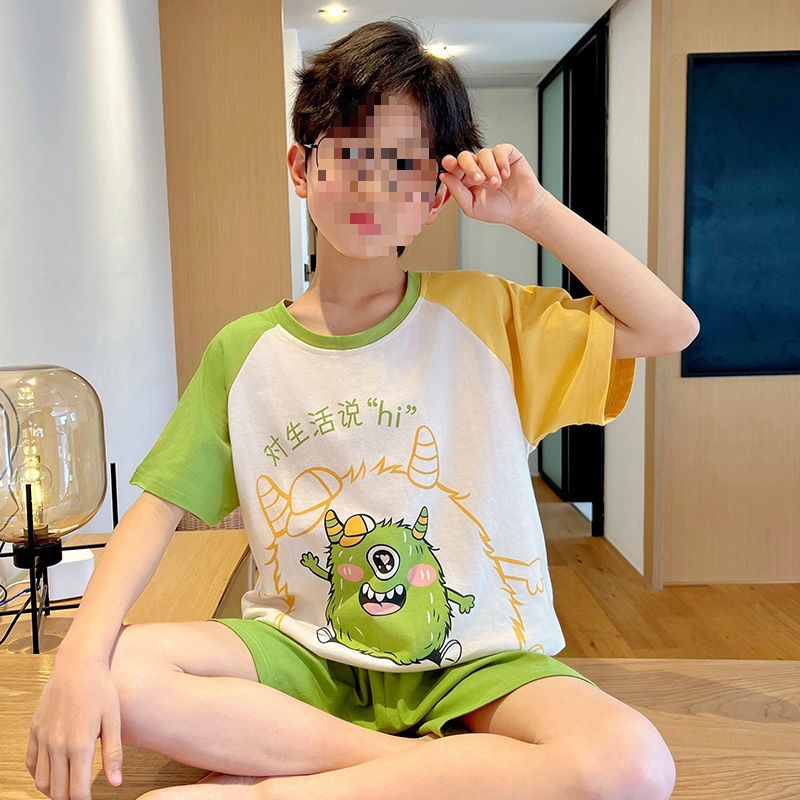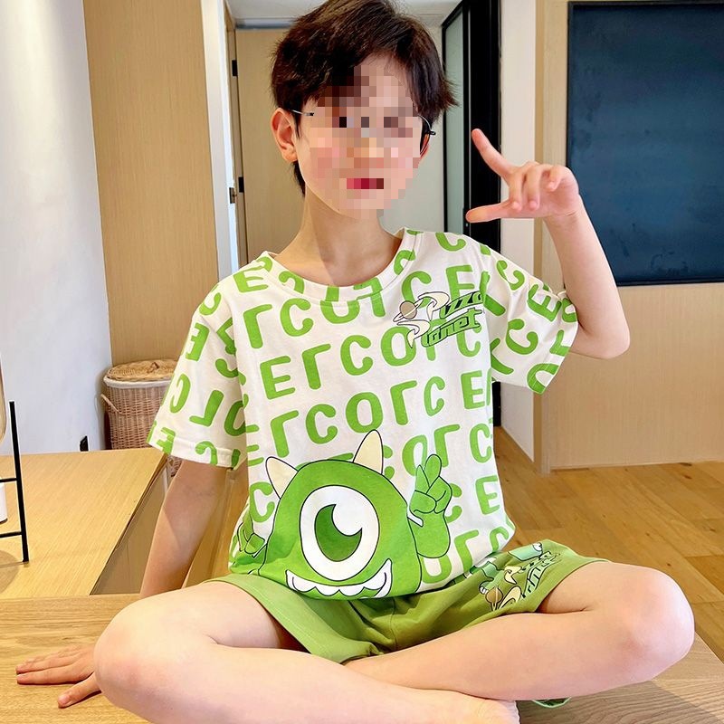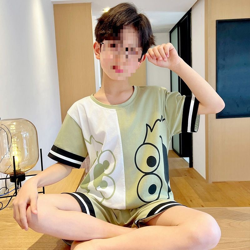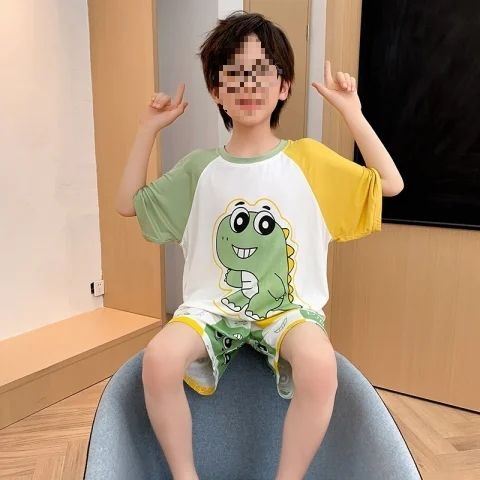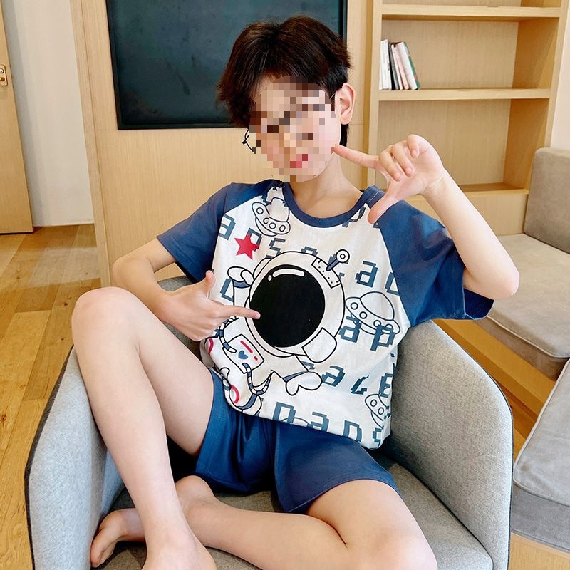 어린이를위한 모달 잠옷 여름 얇은 소년의 새로운 반팔 반바지 가정 의류 세트 여름 아기 에어컨 옷스토어 가기
