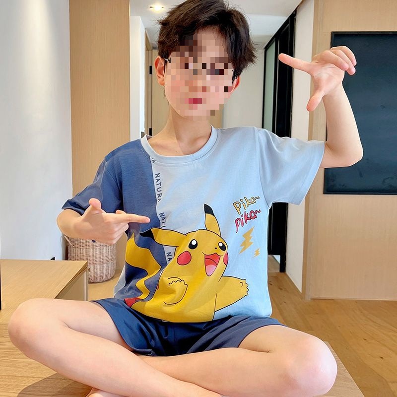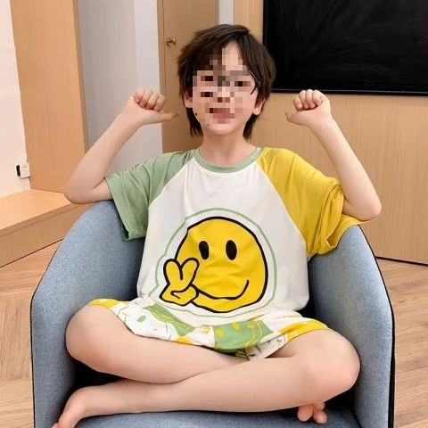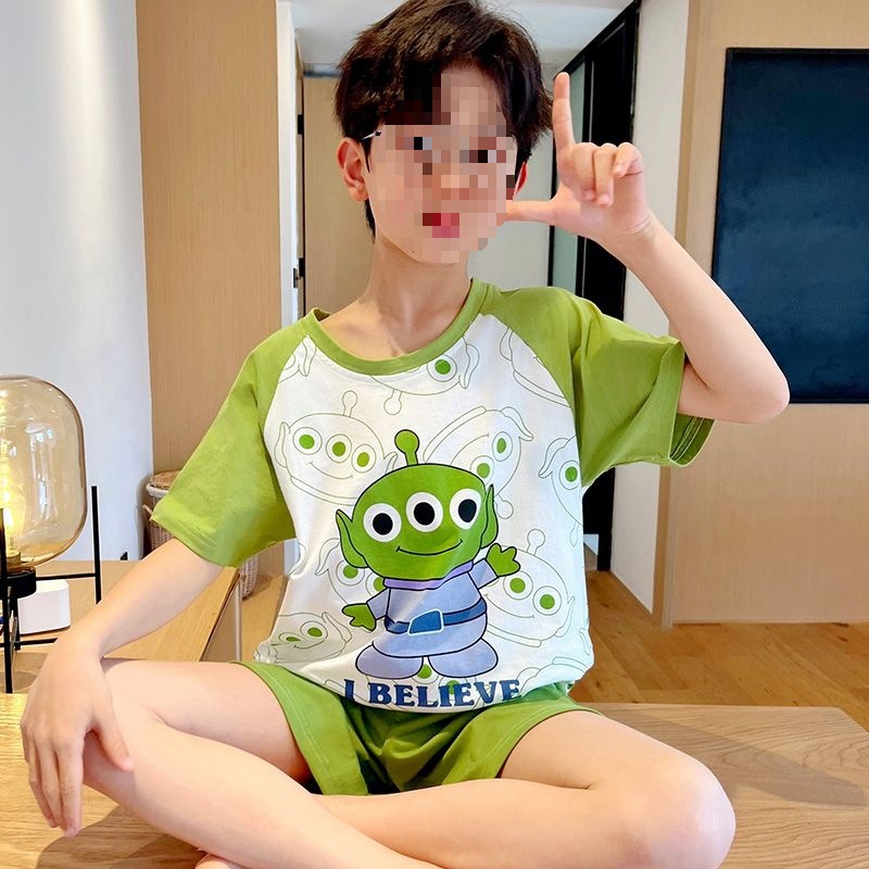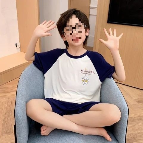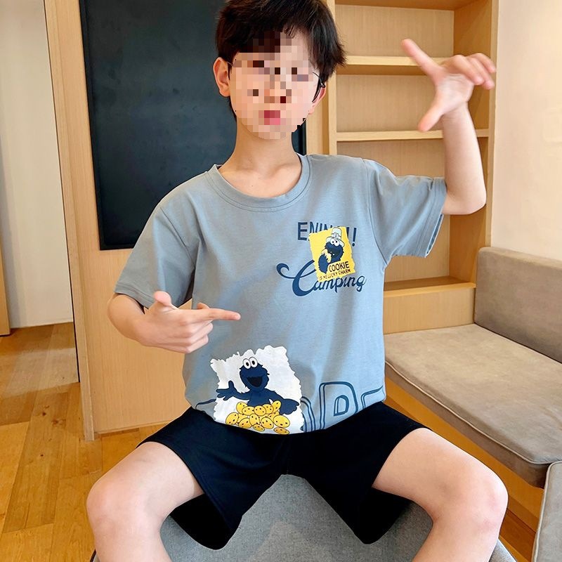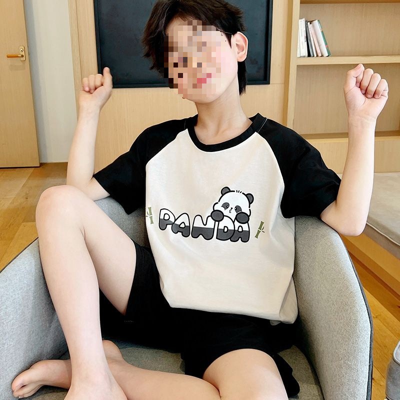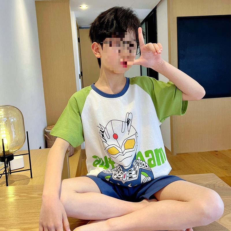어린이를위한 모달 잠옷 여름 얇은 소년의 새로운 반팔 반바지 가정 의류 세트 여름 아기 에어컨 옷스토어 가기