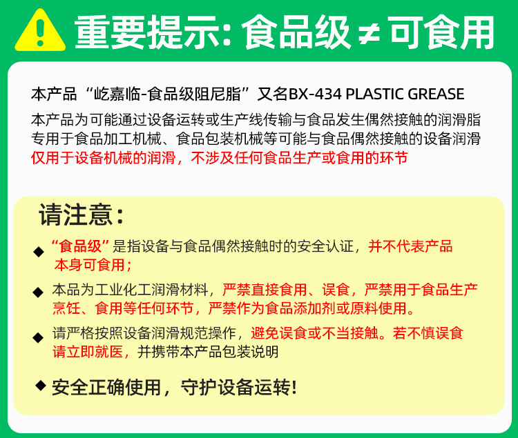 H1 등급 식품 등급 댐핑 그리스 아이스크림 기계 고기 분쇄기 반죽 프레스 정밀 기계 내마모성 댐핑 페이스트 도매스토어 가기