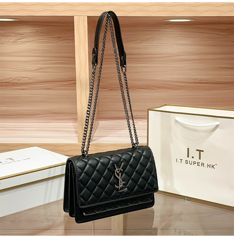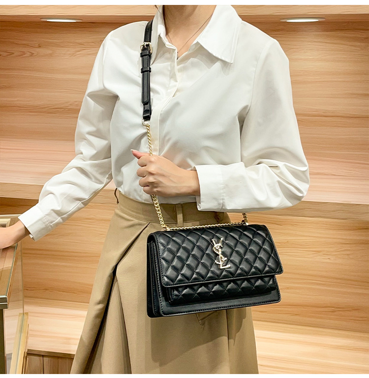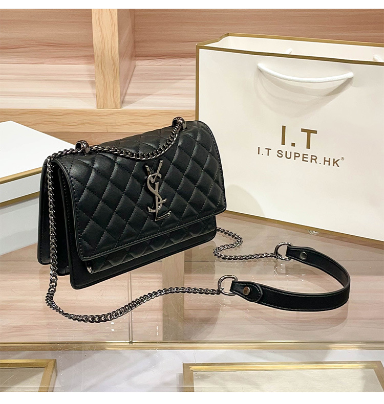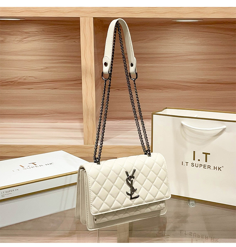 여성을위한 국경 간 고급 정품 가죽 가방 2025 새로운 마름모 체인 크로스 바디 백 세련되고 다재다능한 작은 사각형 가방스토어 가기