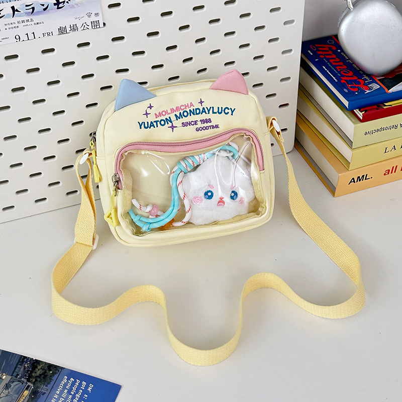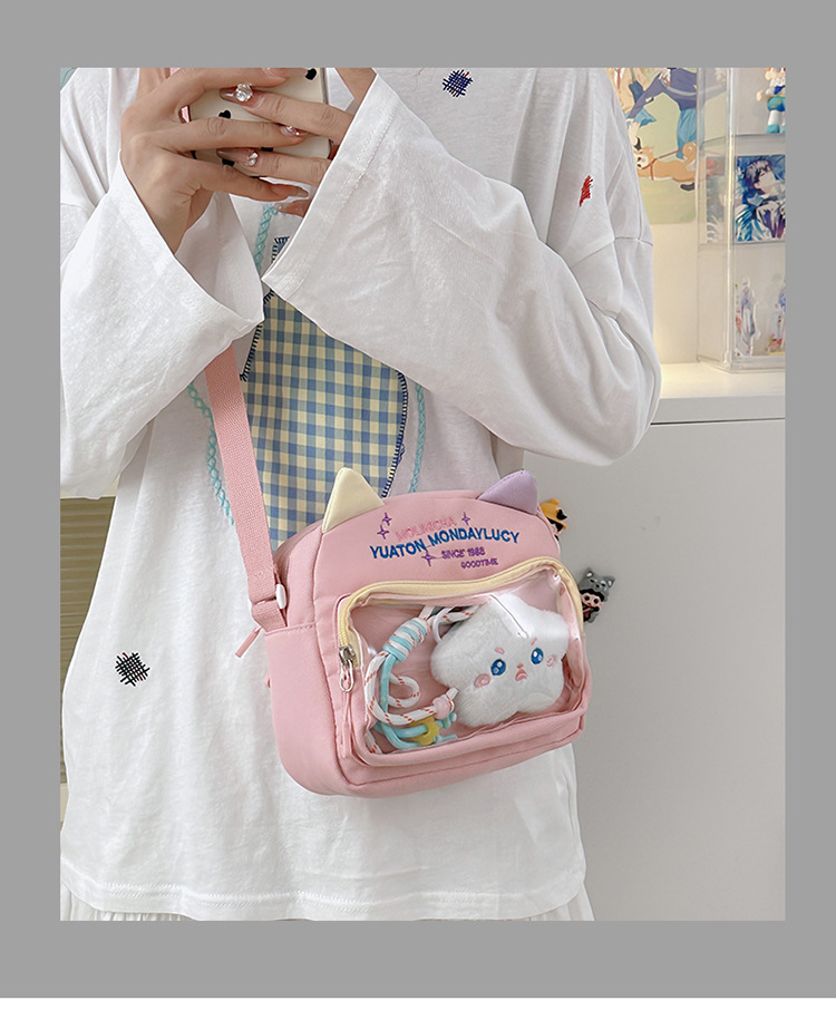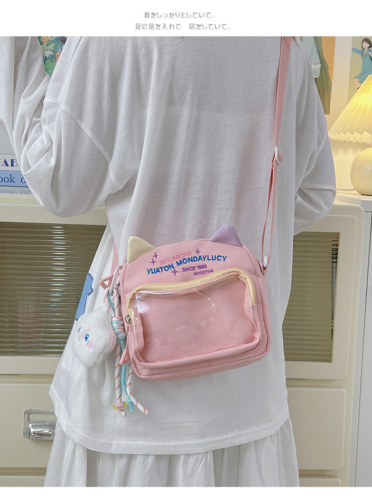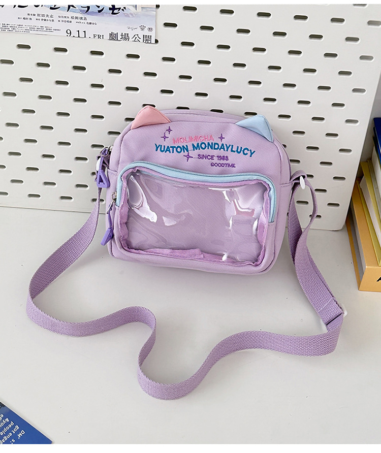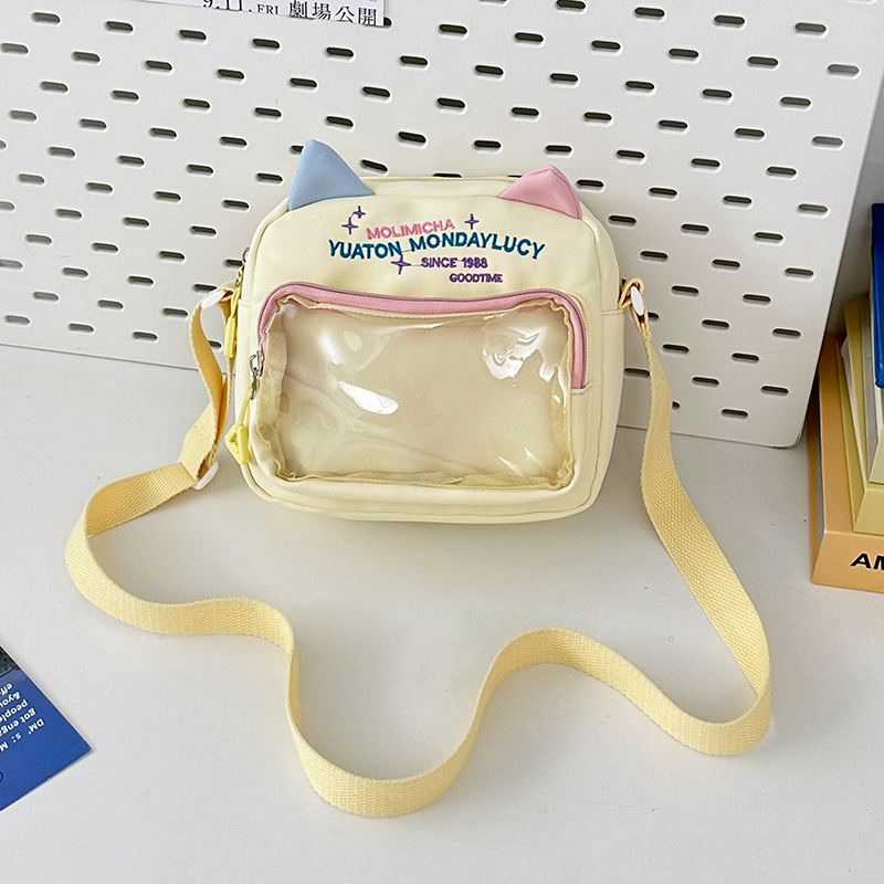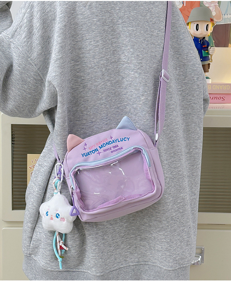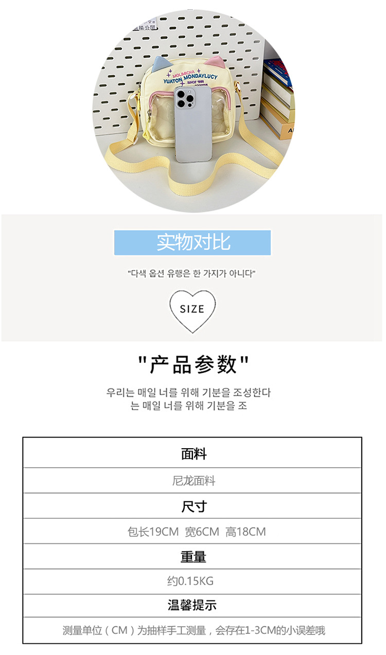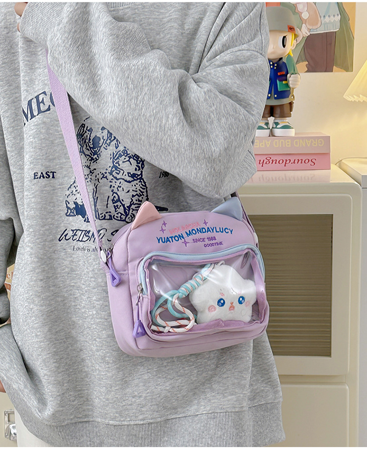 여성용 크로스백, 새로운 대비색상 도파민 스몰 스퀘어백, 귀엽고 멋스러운 투명 나일론 숄더백