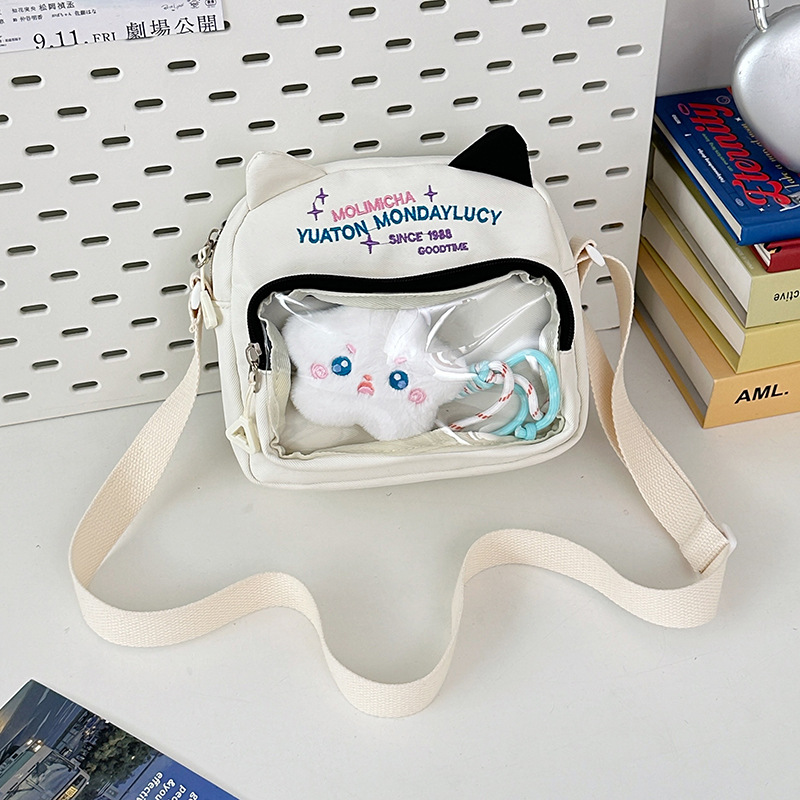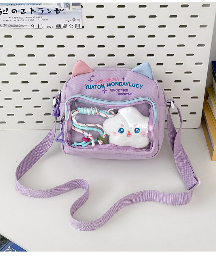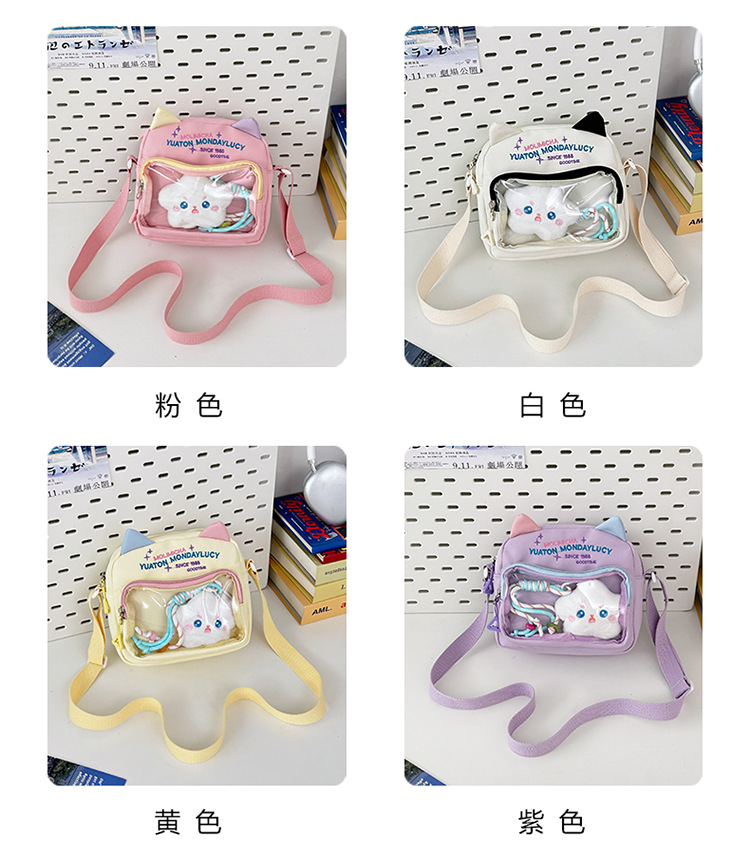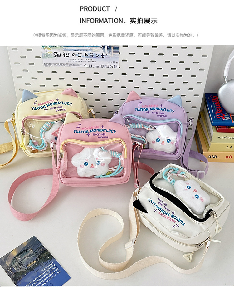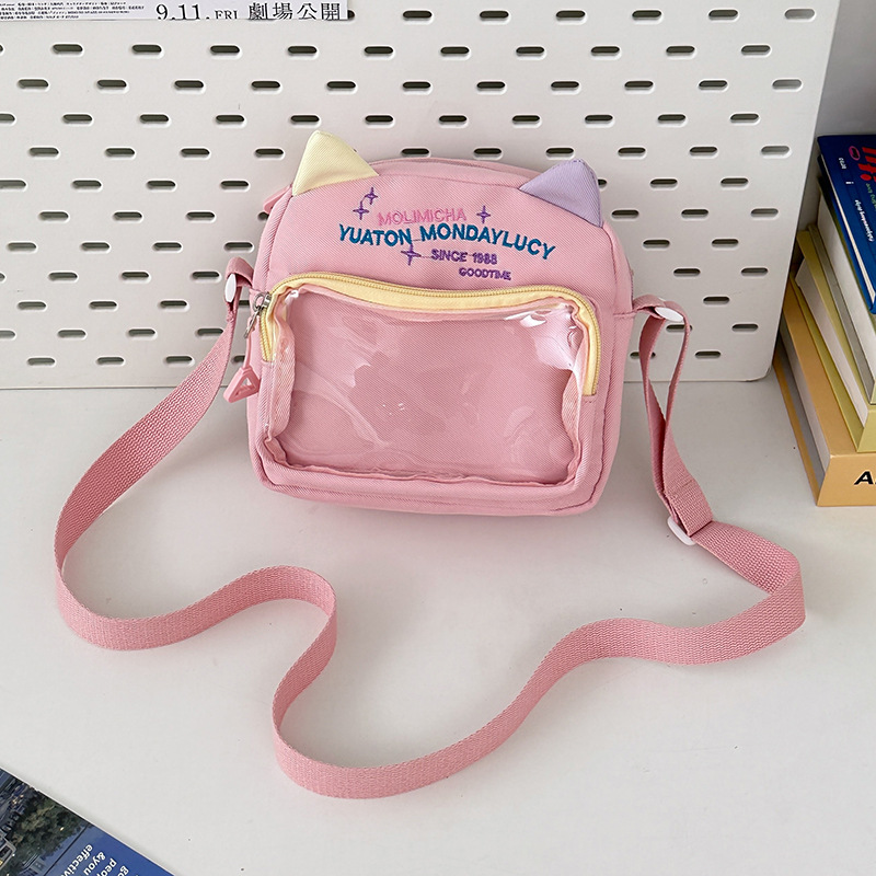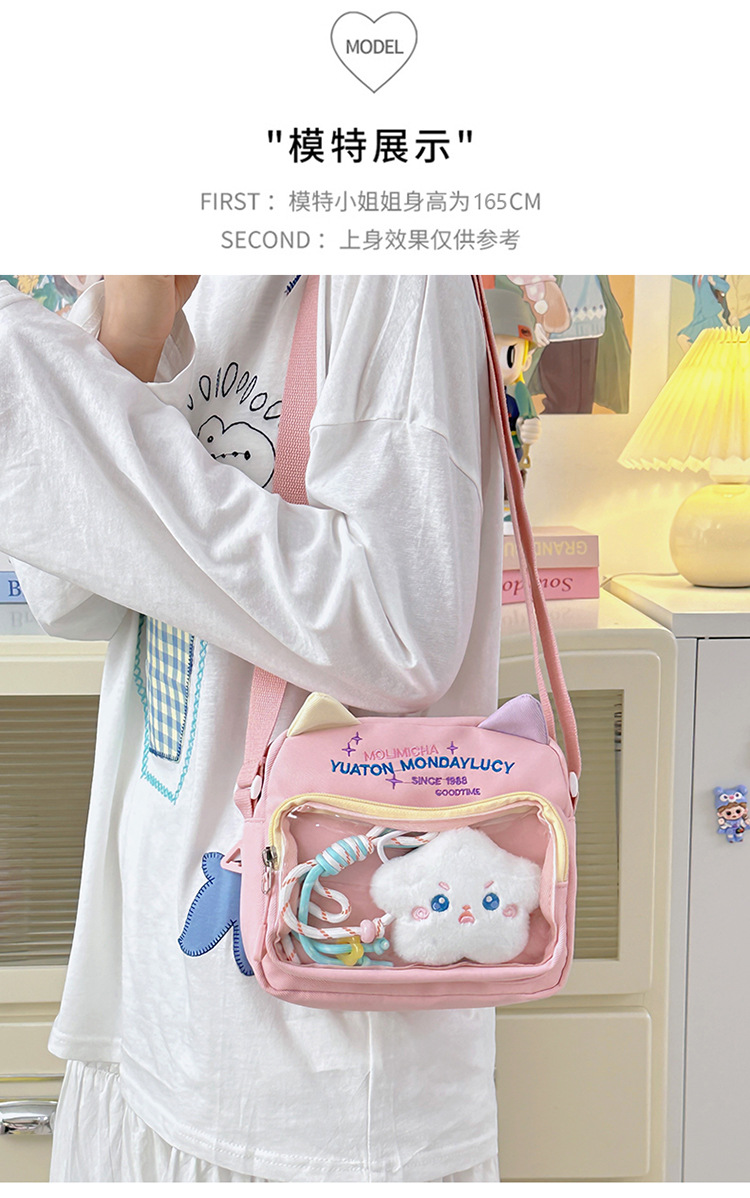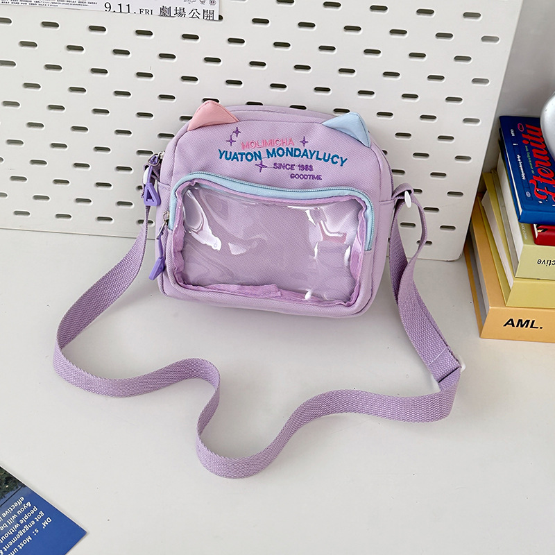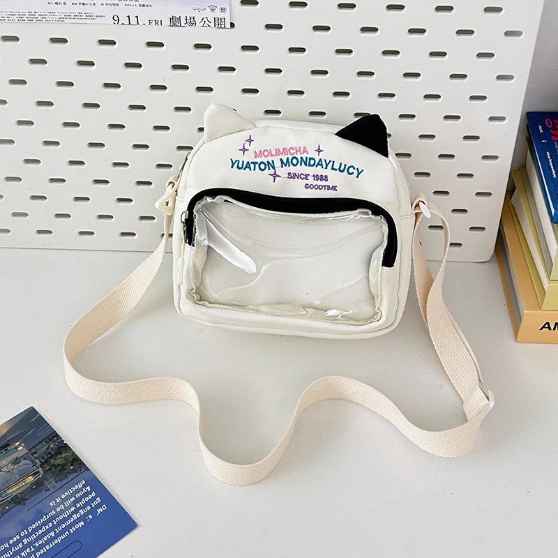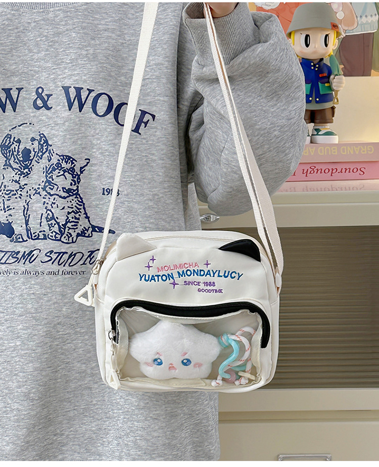 여성용 크로스백, 새로운 대비색상 도파민 스몰 스퀘어백, 귀엽고 멋스러운 투명 나일론 숄더백