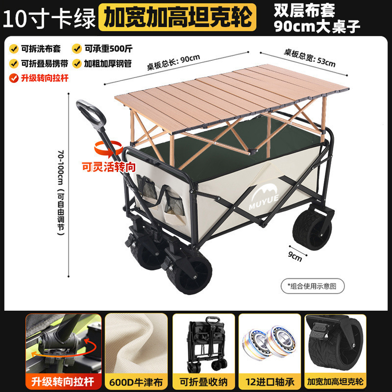 • 카드 그린 [이중 두꺼운 옥스포드 천] - 업그레이드/ 8inch 오프로드 휠/더블 브레이크 + 강화된 나뭇결 테이블