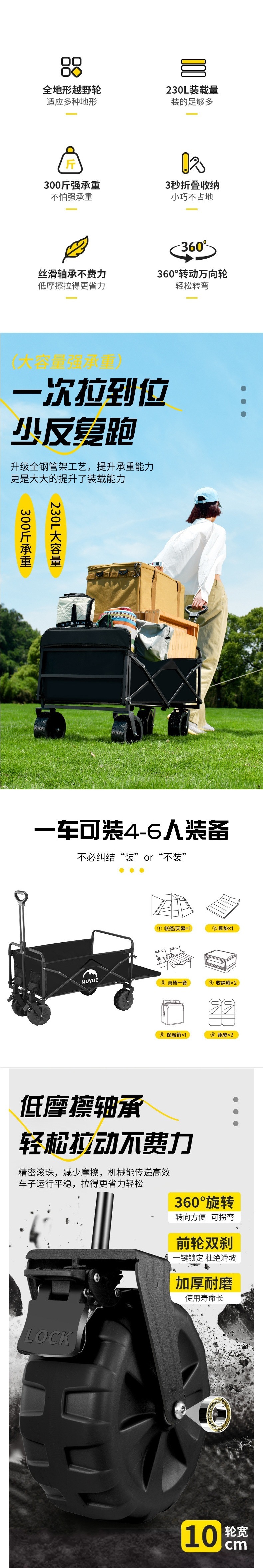 • 블랙 [이중 두꺼운 옥스포드 천] - 대형 / 8inch 오프로드 휠 / 더블 브레이크 / 티핑 버킷 스타일 + 나뭇결 테이블