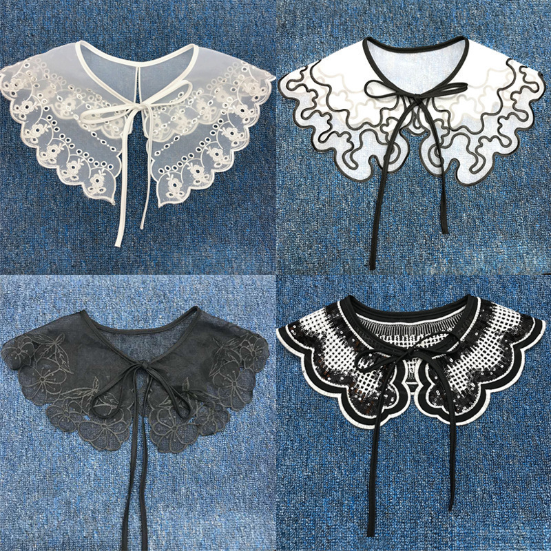 새로운 패션 화이트 블랙 레이스 수 놓은 가짜 칼라 옷