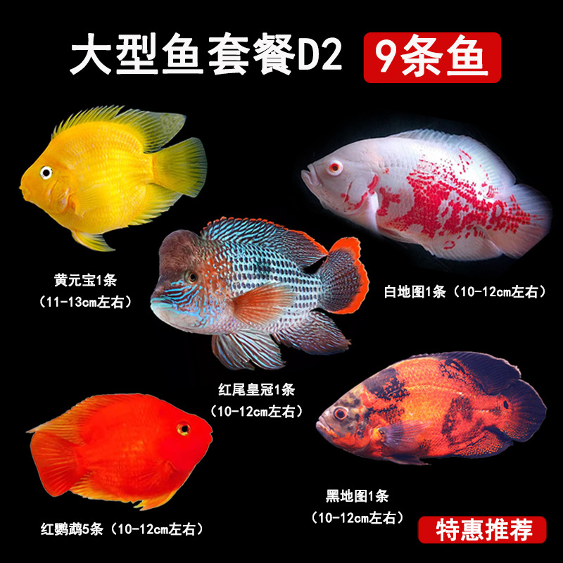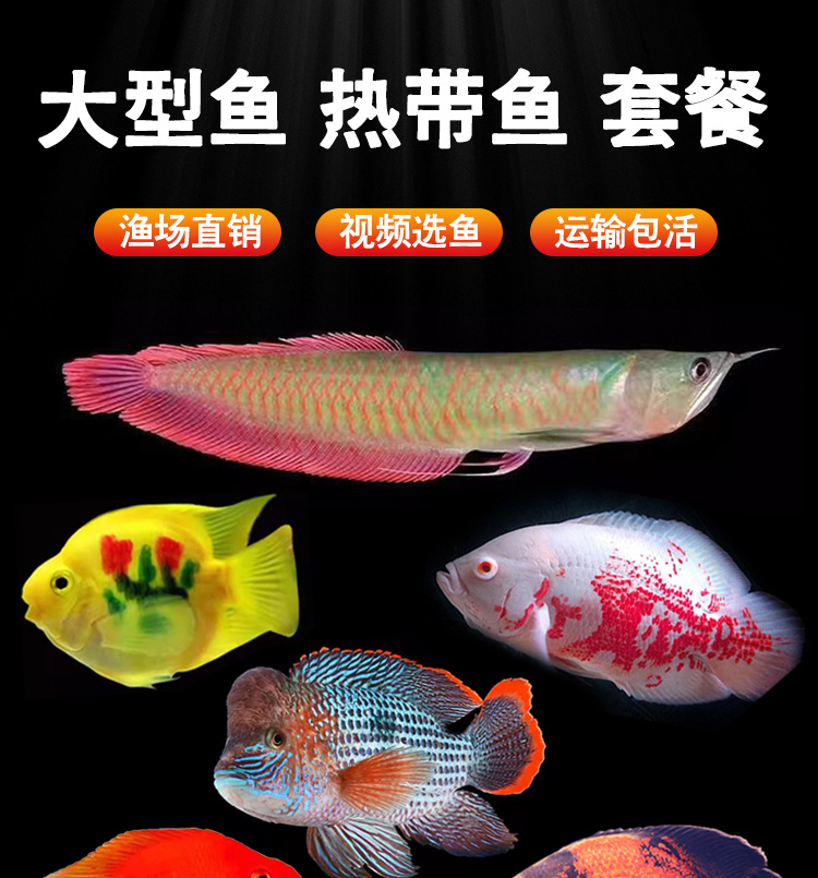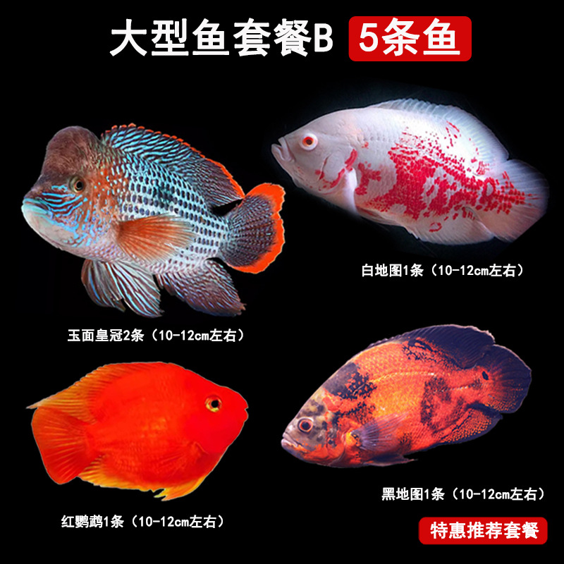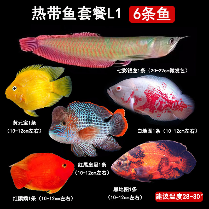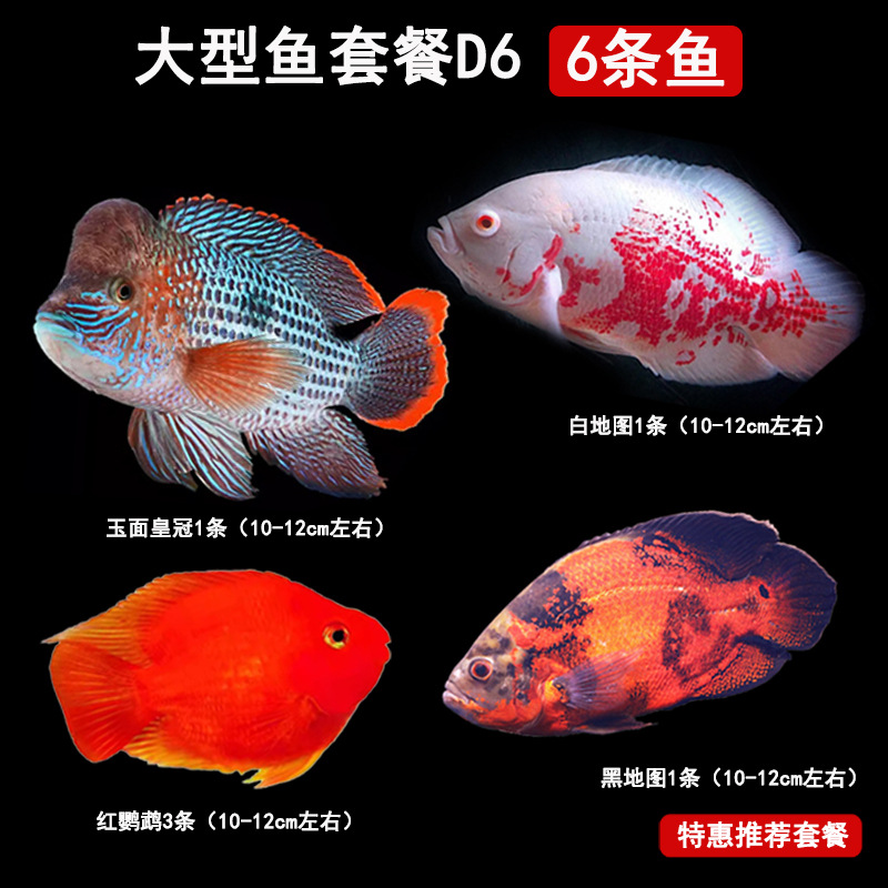 행운의 물고기, 행운의 물고기, 화려한 실버 아로와나, 옥 얼굴 크라운 물고기, 지도 물고기, 노란 앵무새 물고기, 열대 관상어 패키지