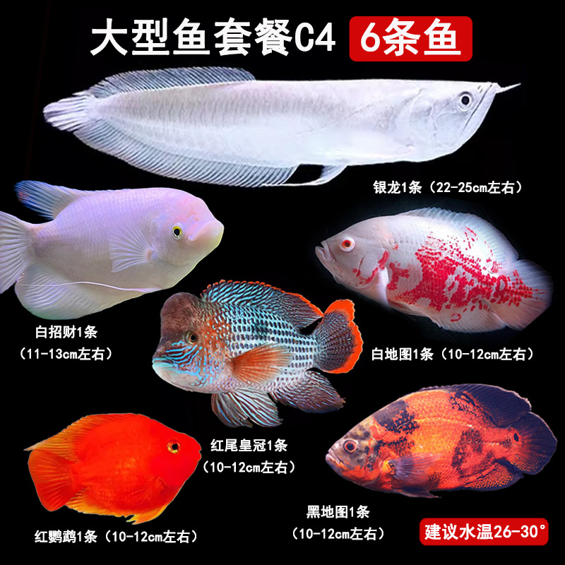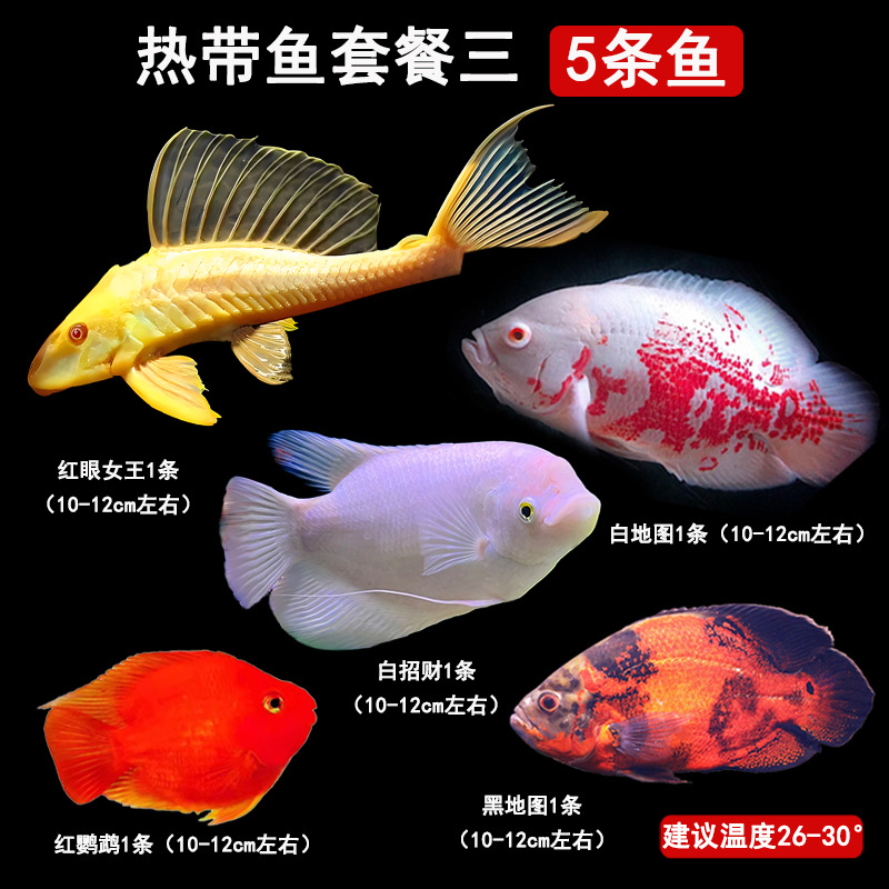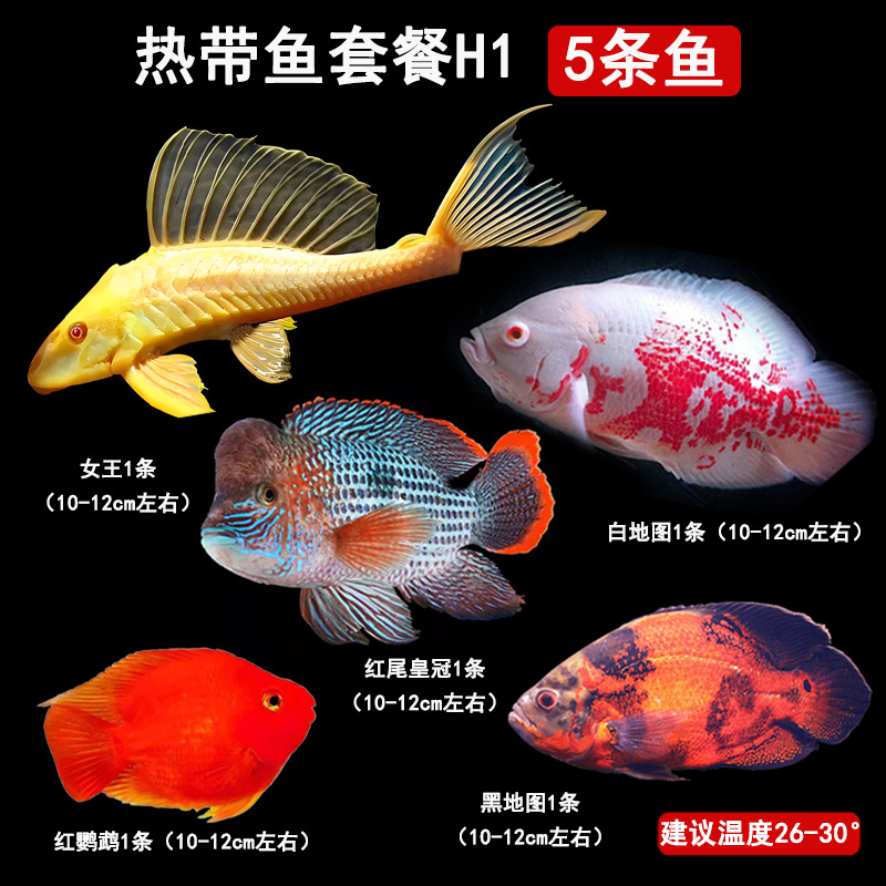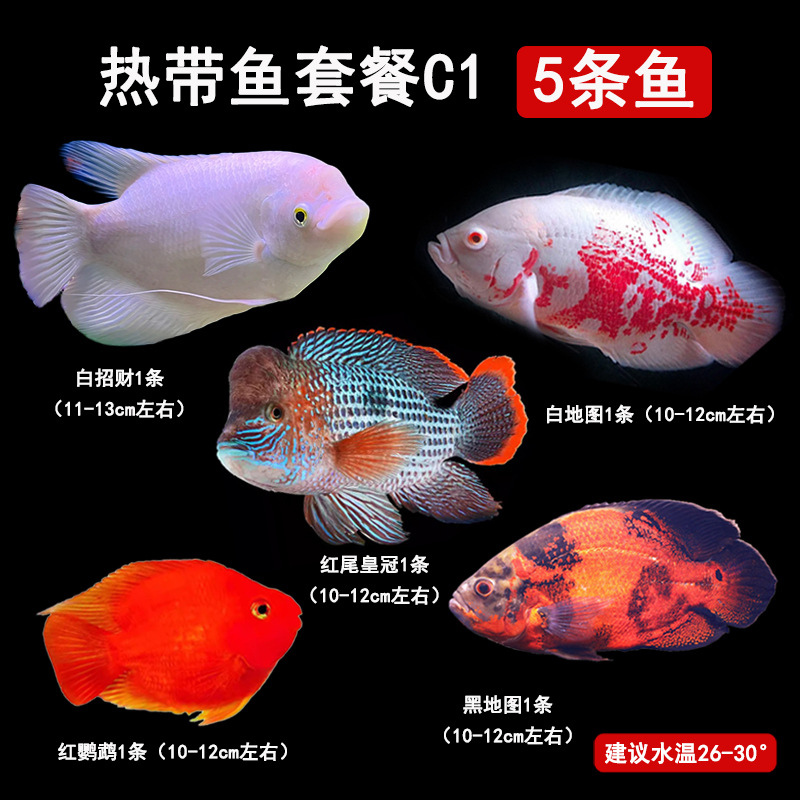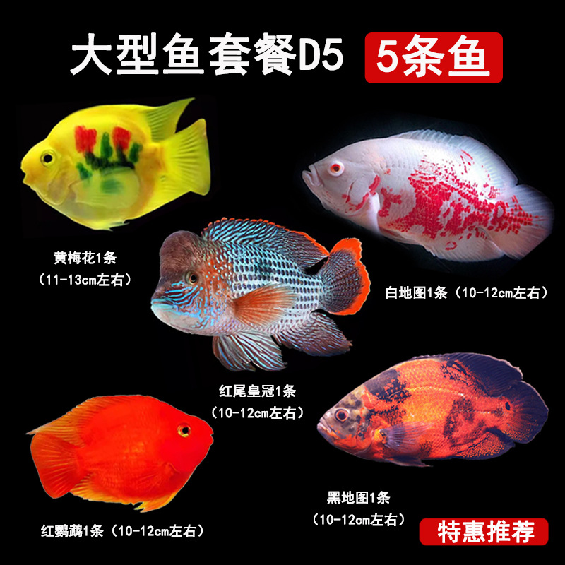 행운의 물고기, 행운의 물고기, 화려한 실버 아로와나, 옥 얼굴 크라운 물고기, 지도 물고기, 노란 앵무새 물고기, 열대 관상어 패키지