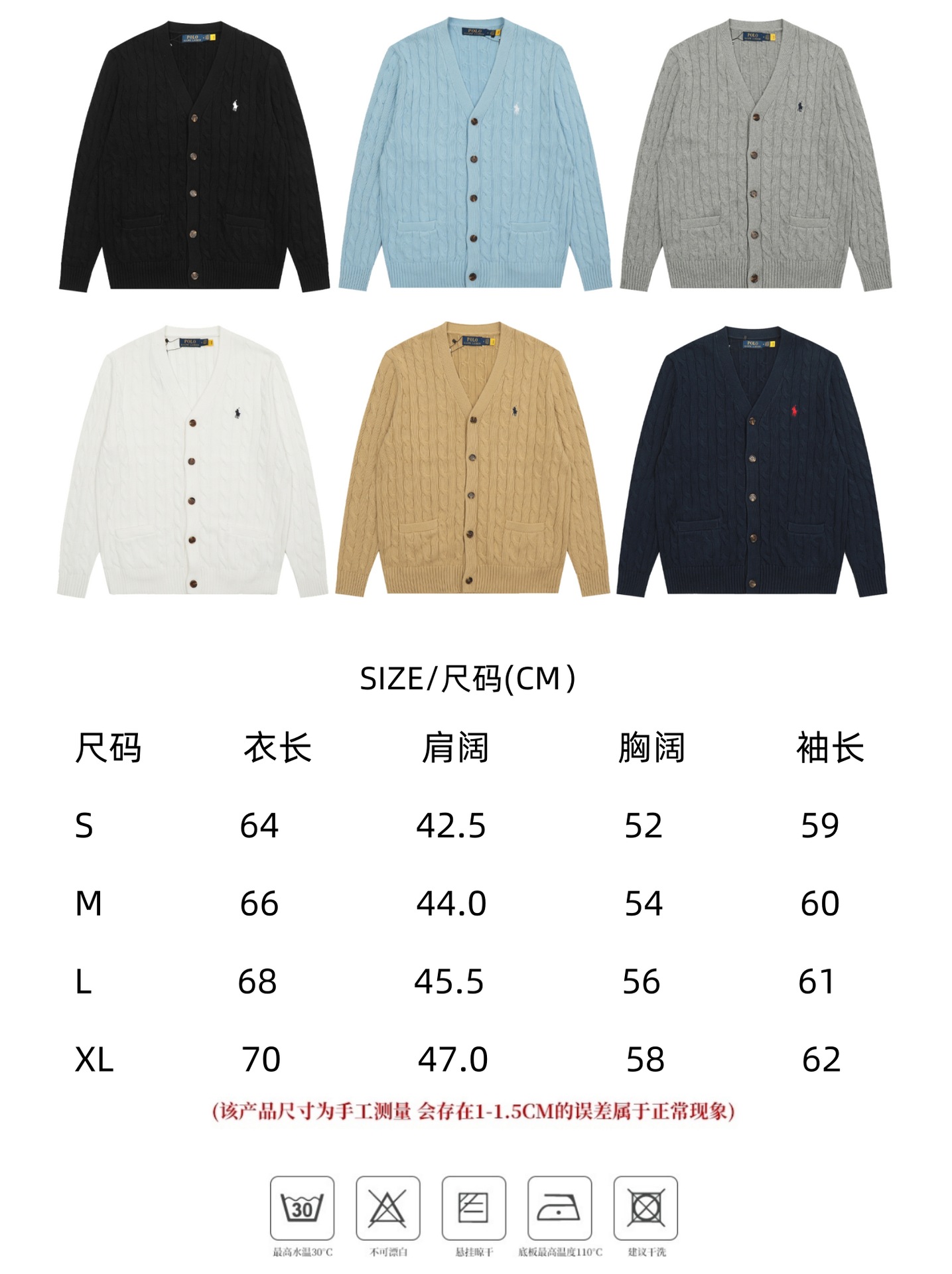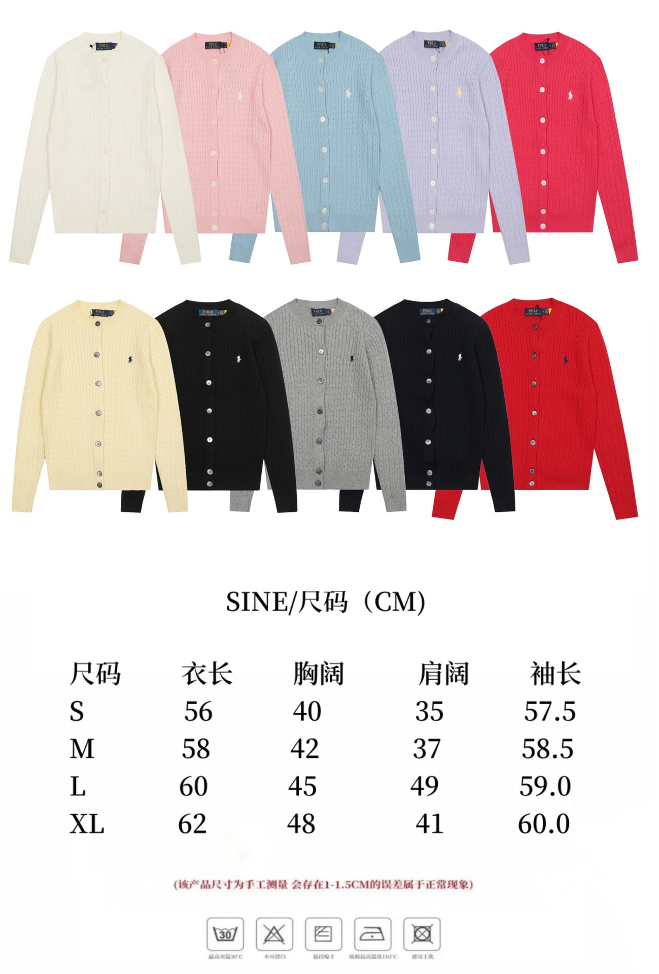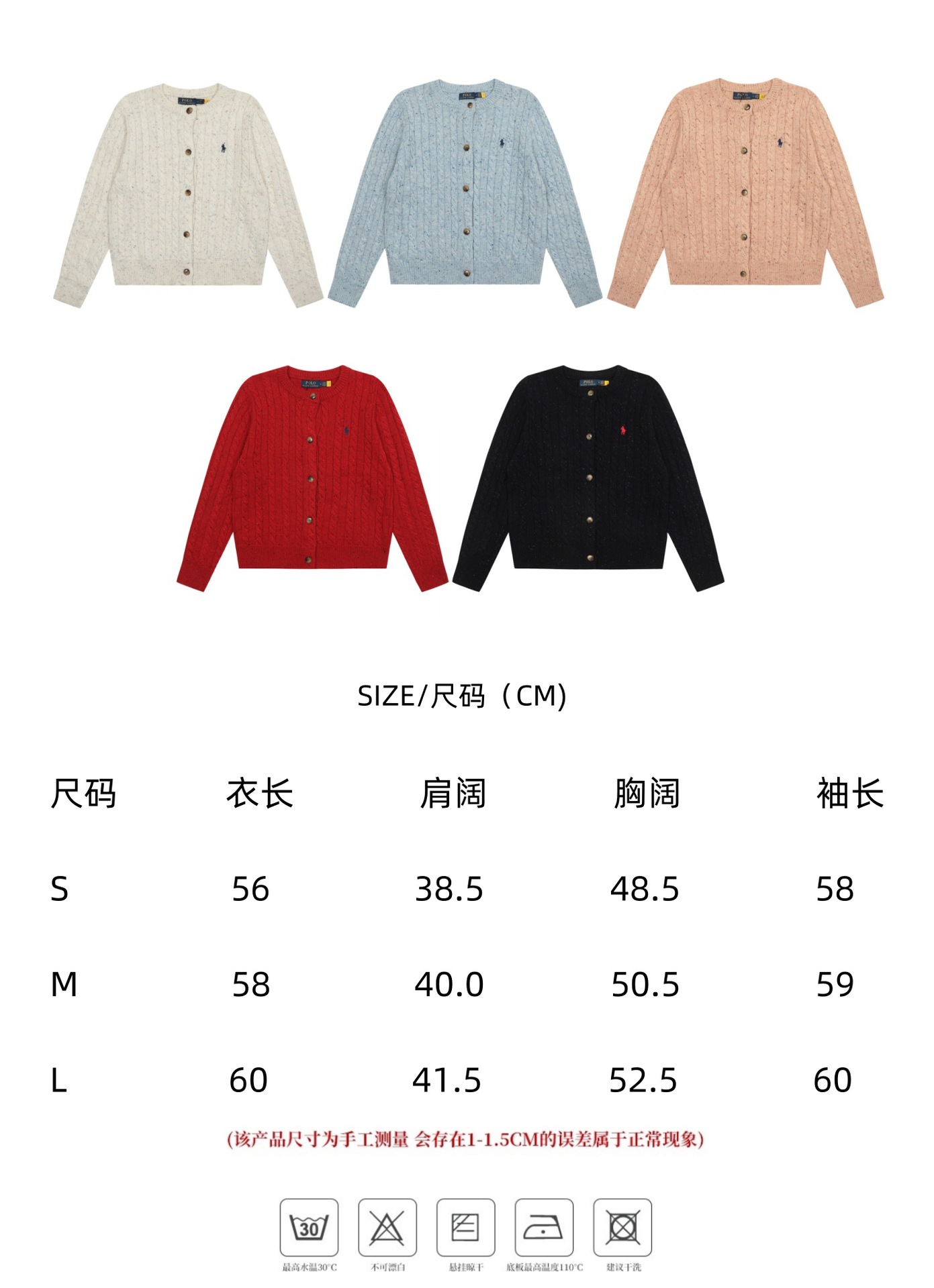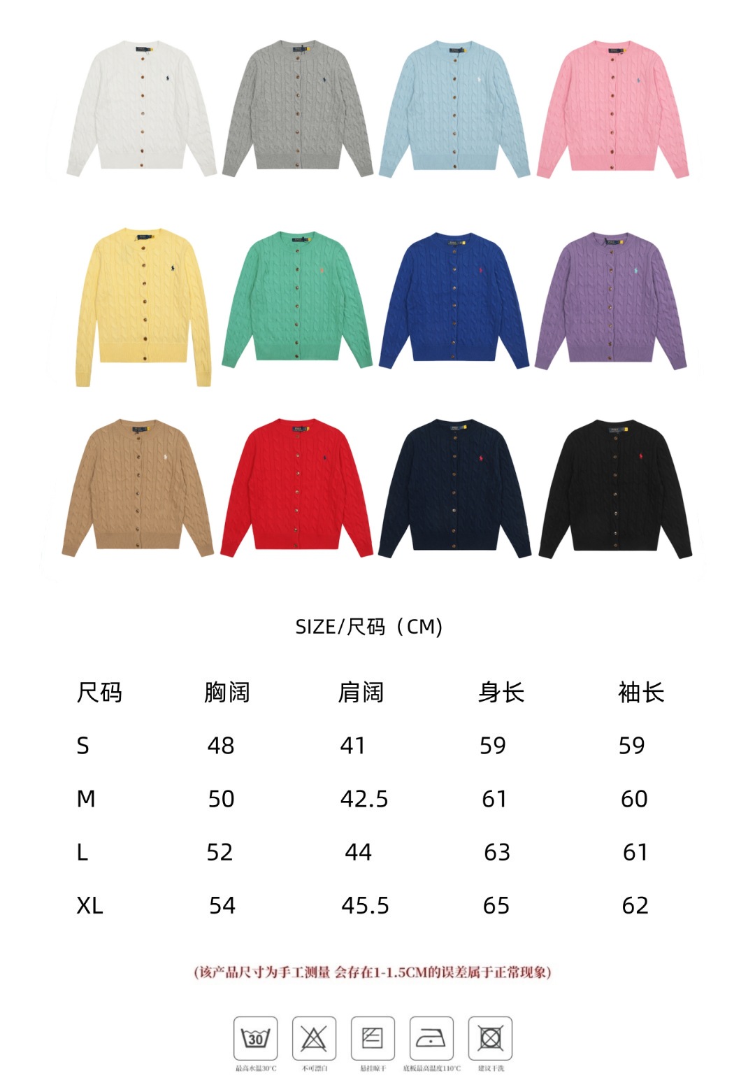 크로스보더 RL 러프 남녀공용 라운드넥 케이블 긴팔 니트 가디건 자수 트위스트 스몰 라벨스토어 가기