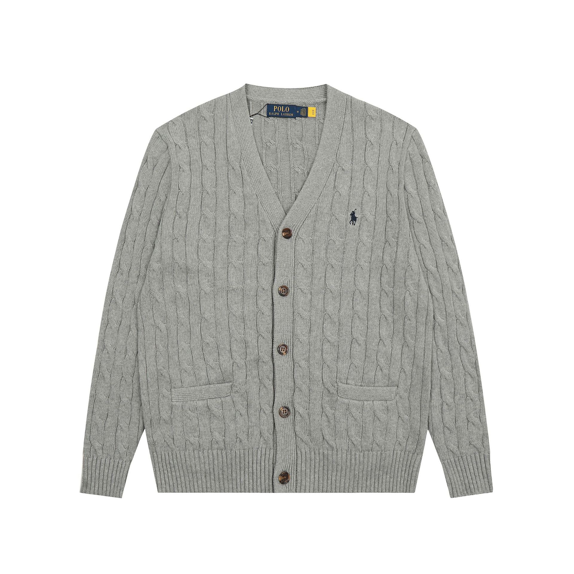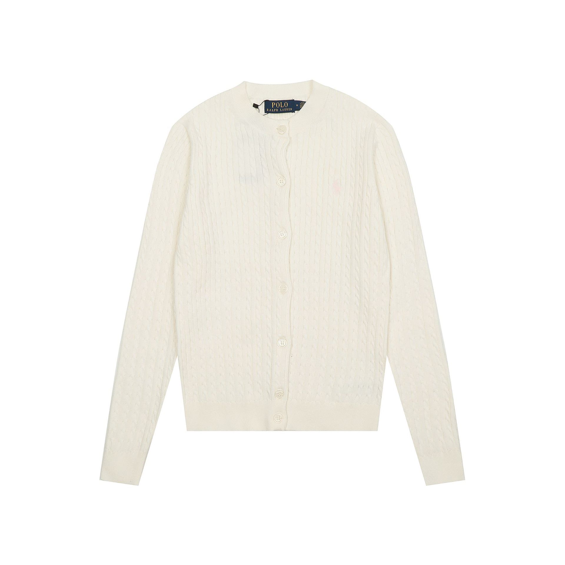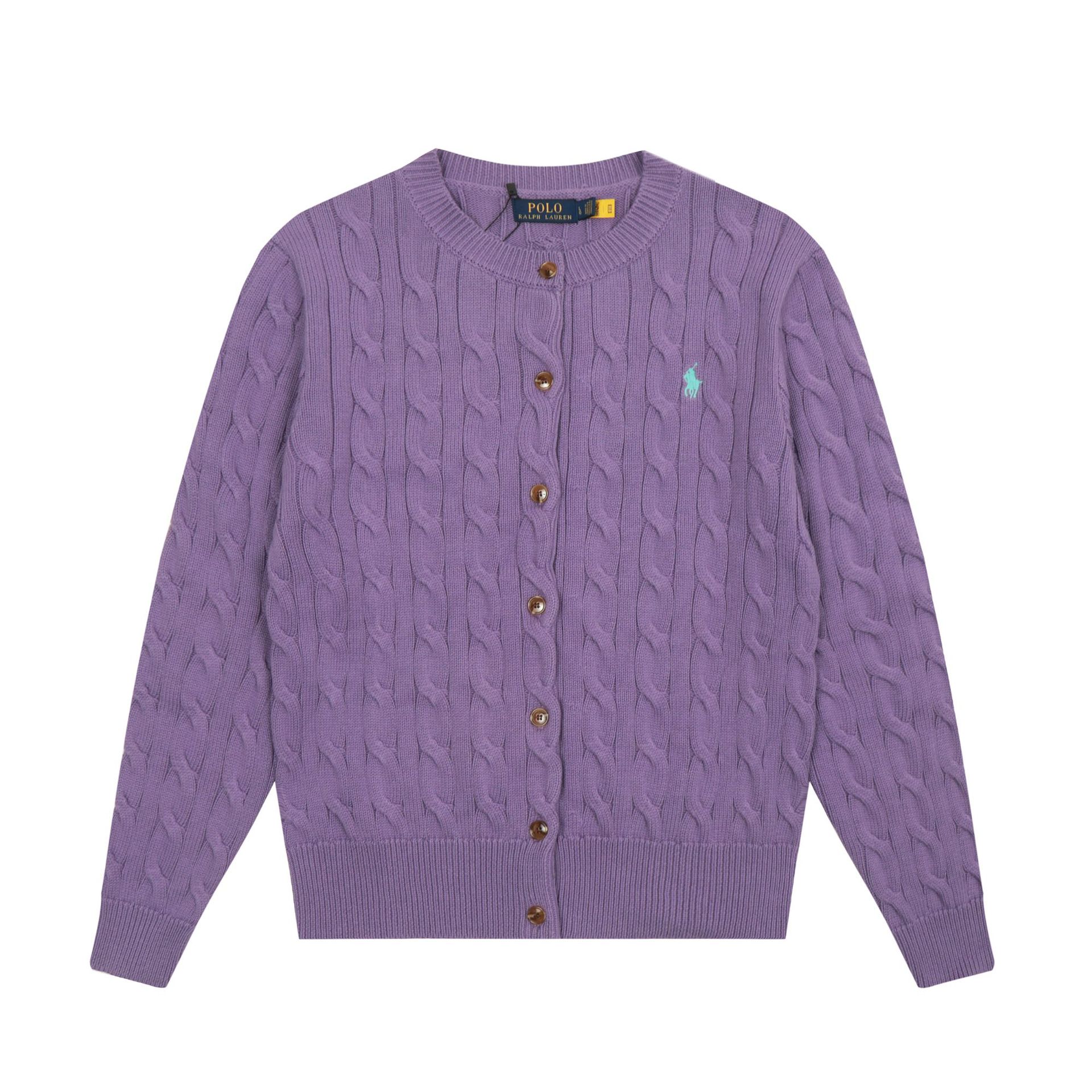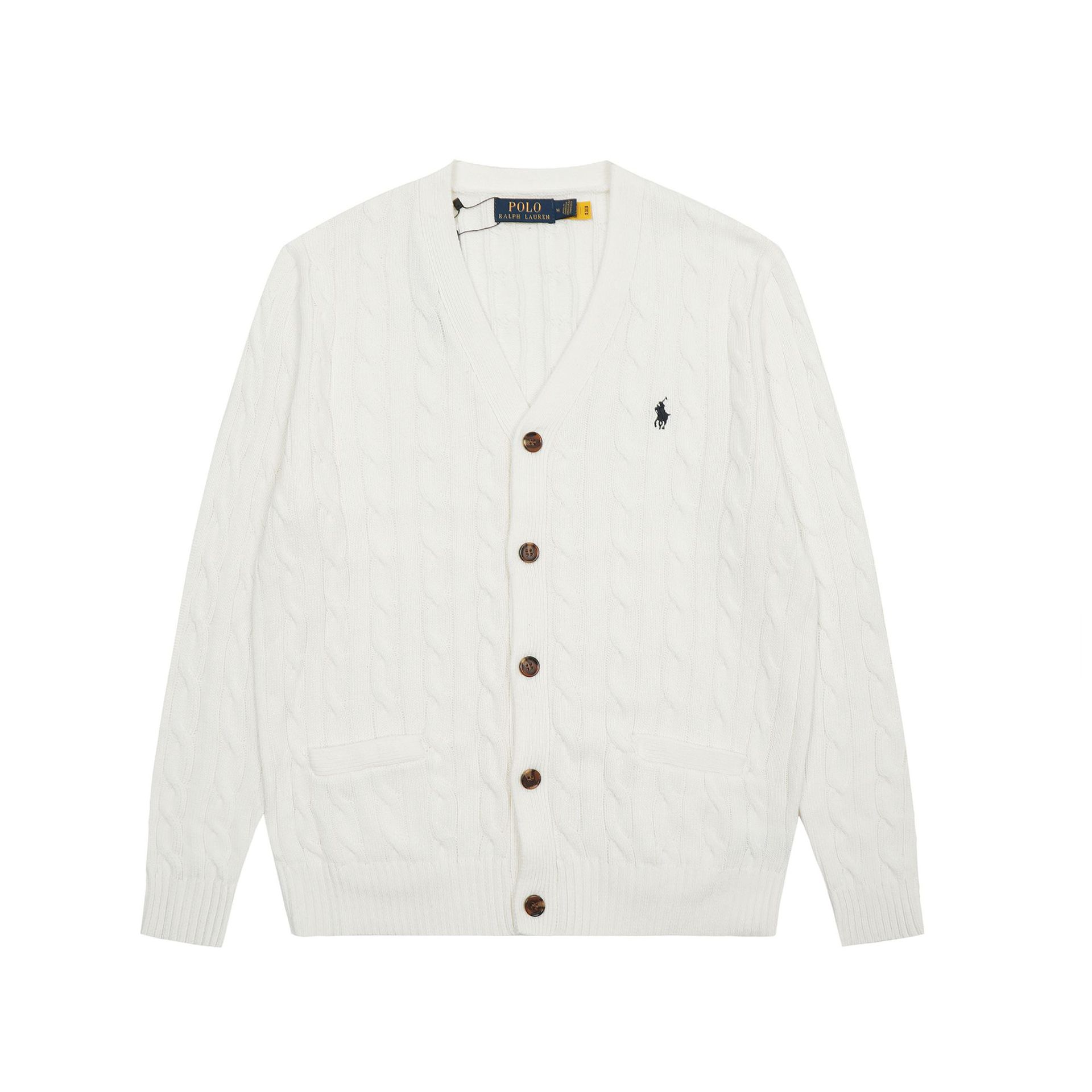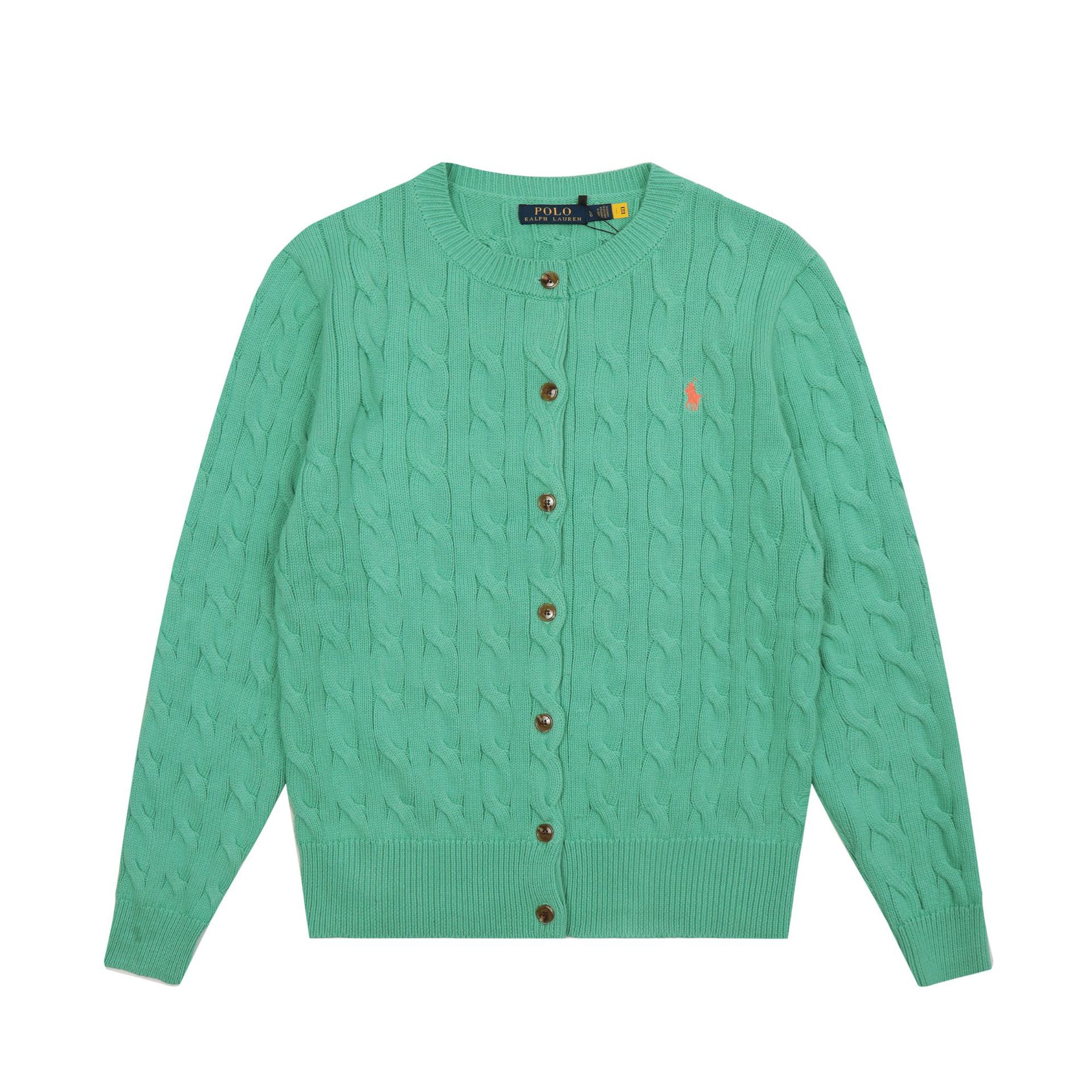 크로스보더 RL 러프 남녀공용 라운드넥 케이블 긴팔 니트 가디건 자수 트위스트 스몰 라벨