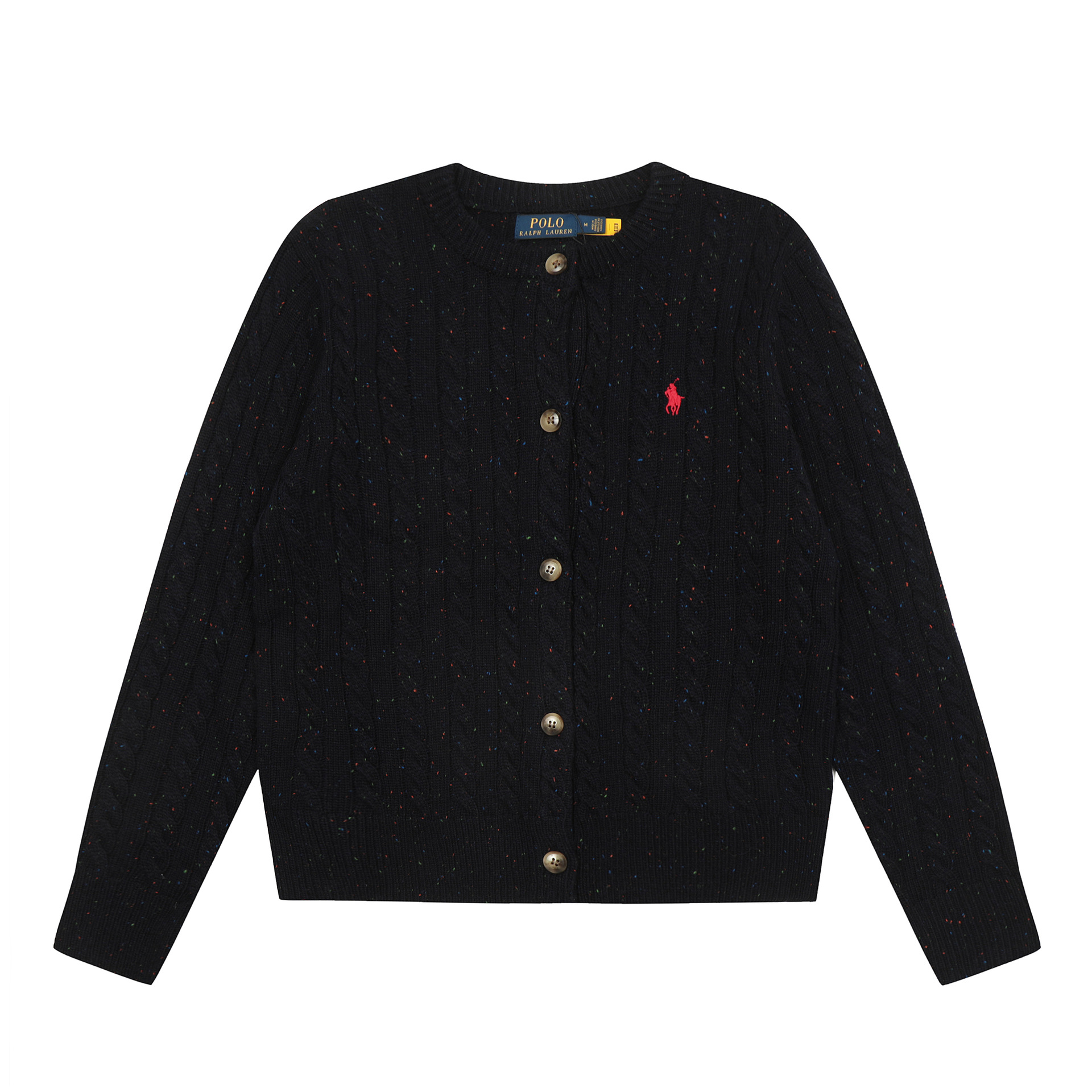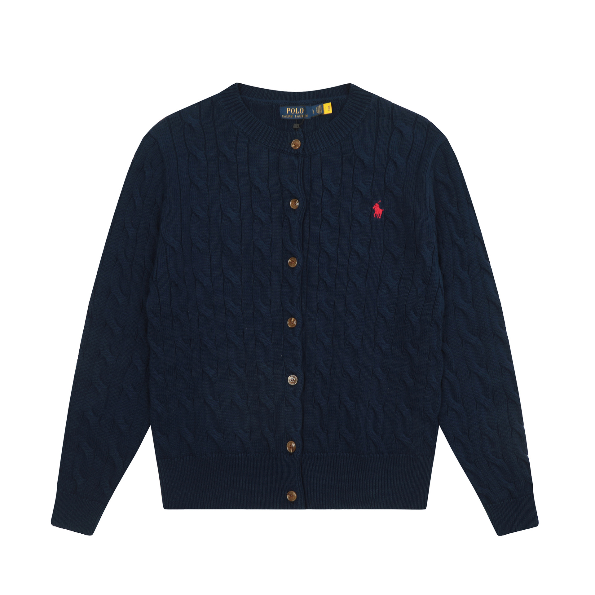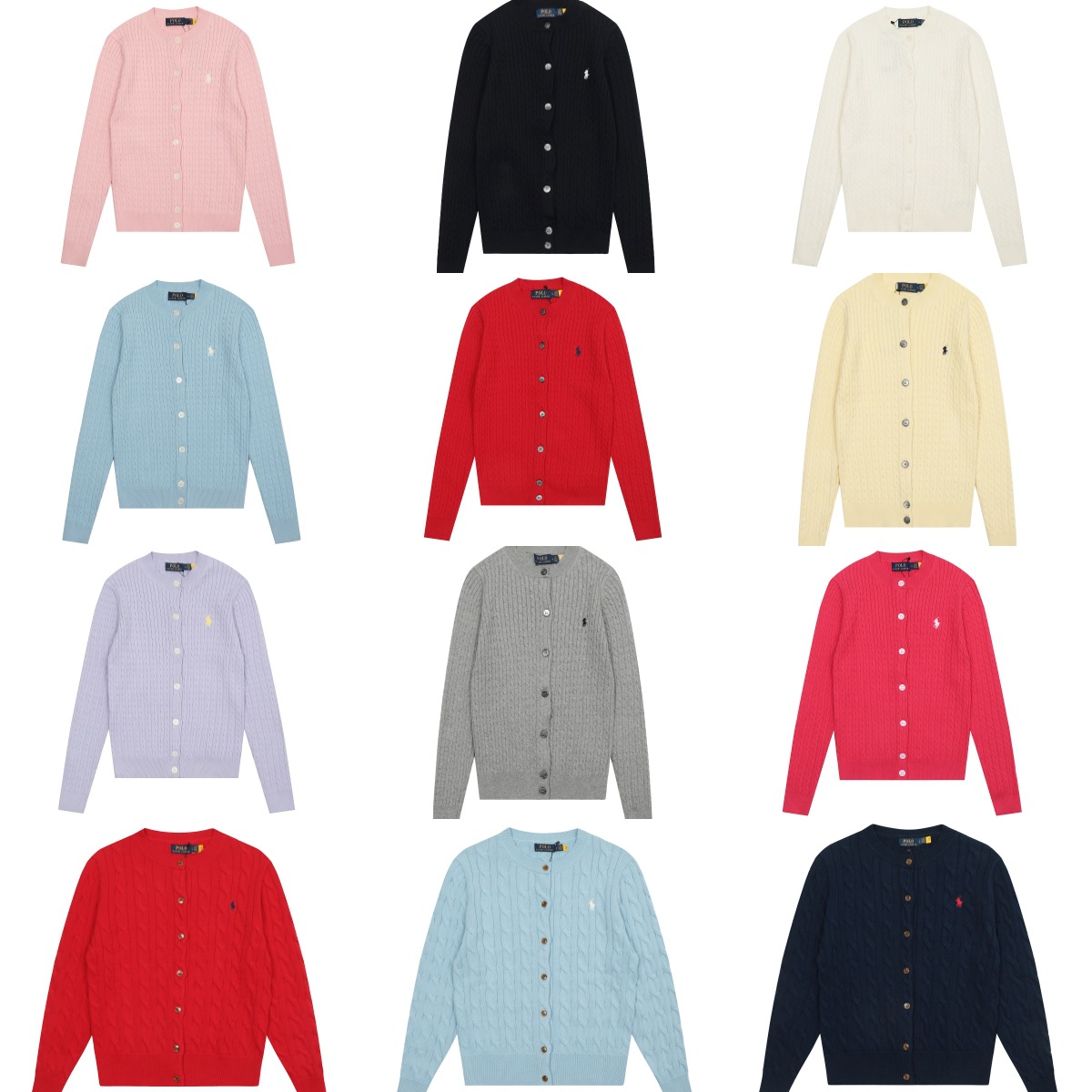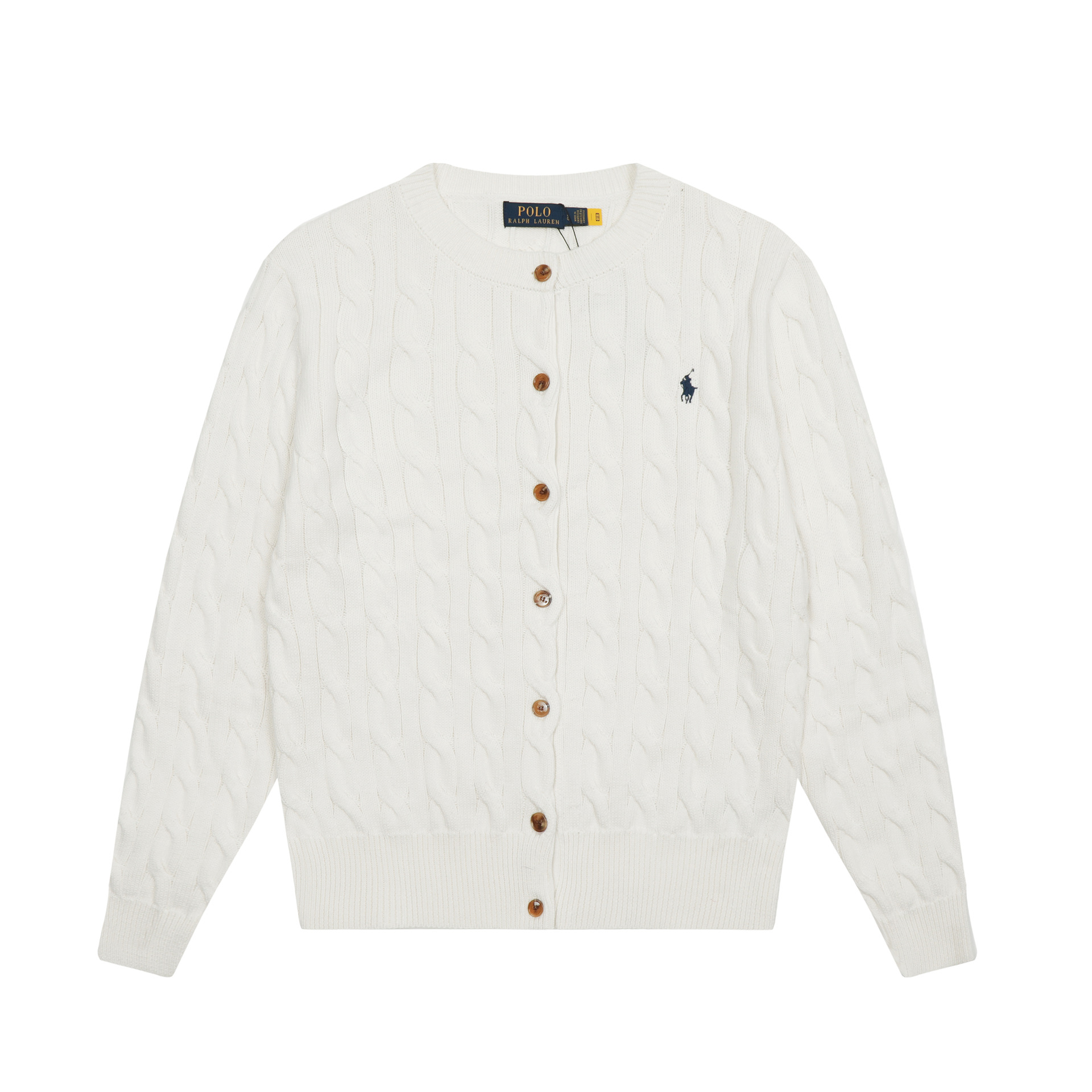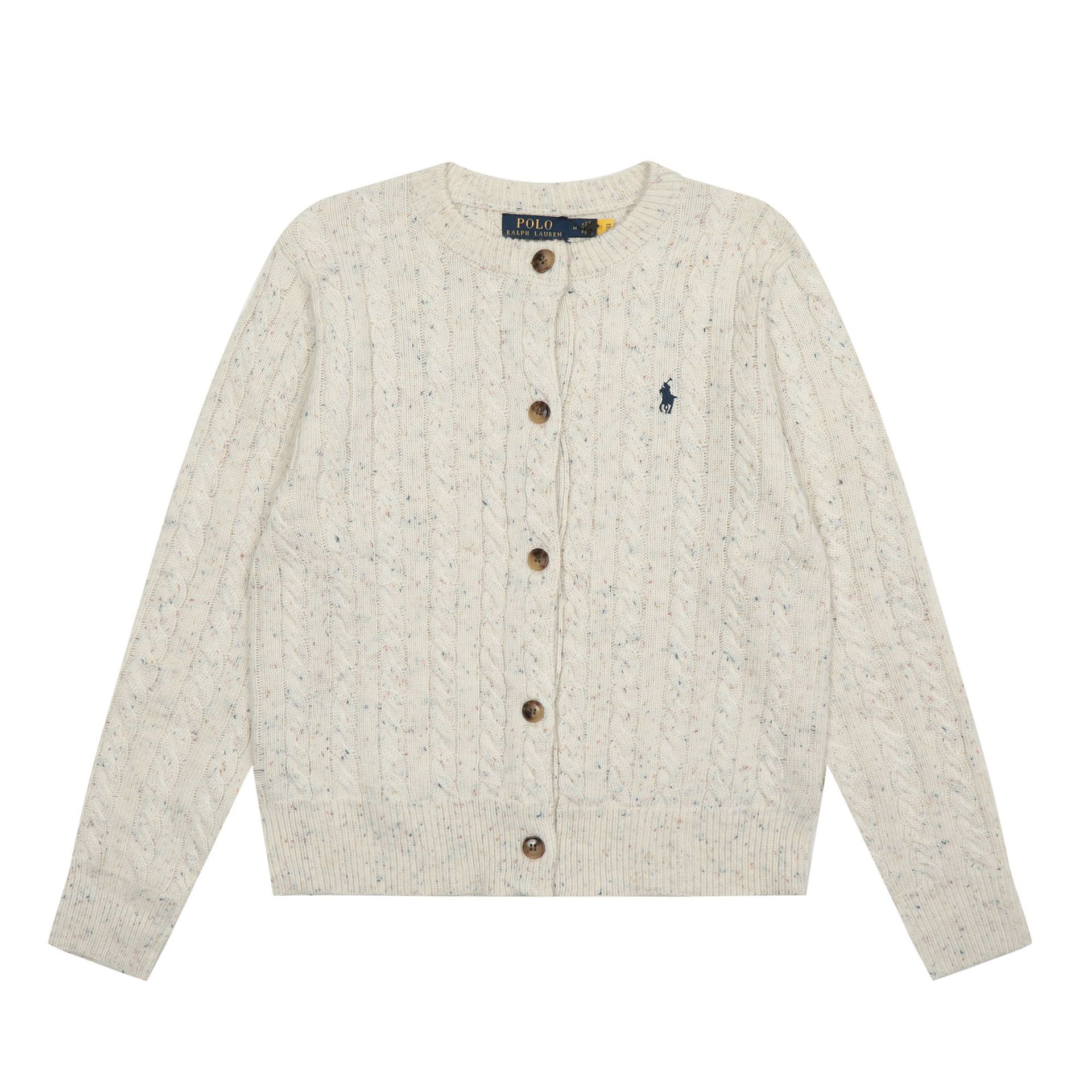 크로스보더 RL 러프 남녀공용 라운드넥 케이블 긴팔 니트 가디건 자수 트위스트 스몰 라벨
