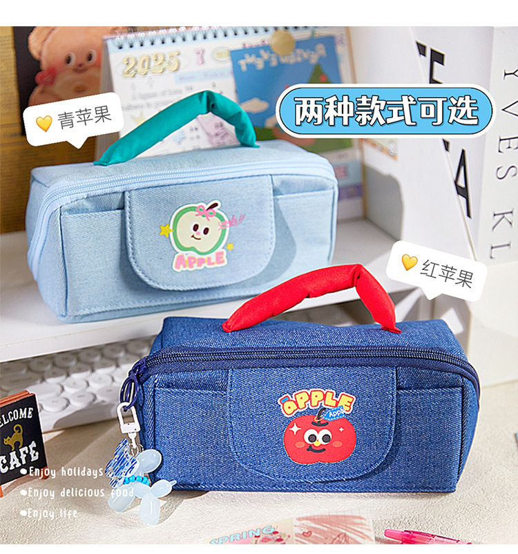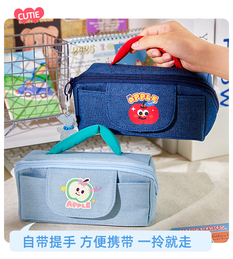 • 귀여운 사과 데님 그린 사과 필통