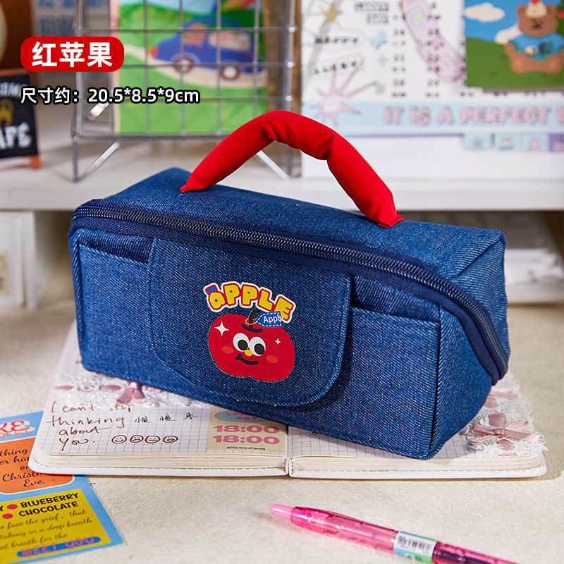 • 귀여운 사과 데님 빨간 사과 연필 가방