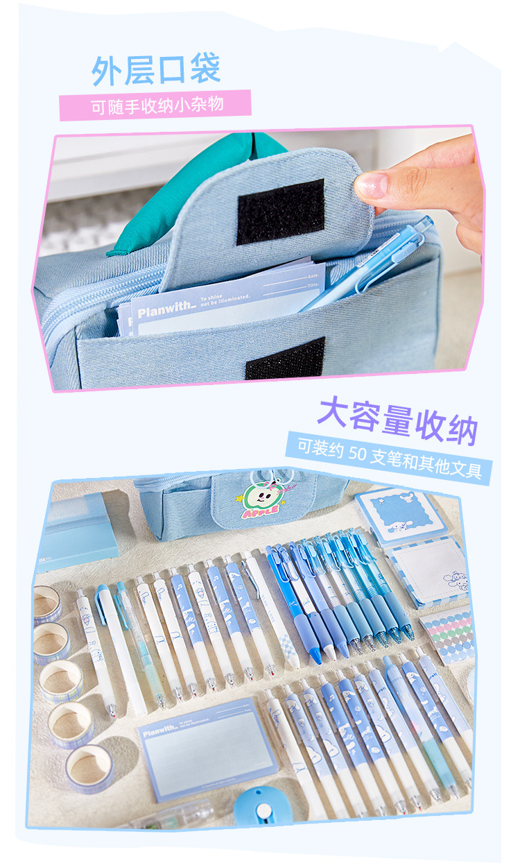 데님 대용량 휴대용 연필 가방 캔버스 소년 소녀 얼룩 방지 연필 가방 고급 중학교 문구 보관