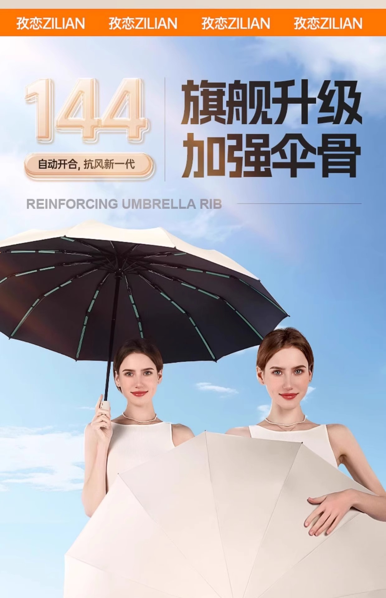 • 전자동 [144 유리섬유 방풍 우산 갈비뼈/비가 오나 눈이 오나] 흑요석 블랙