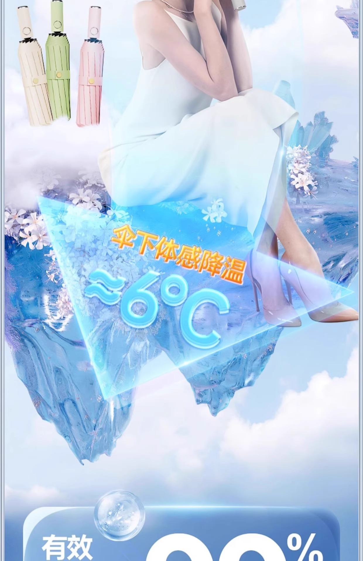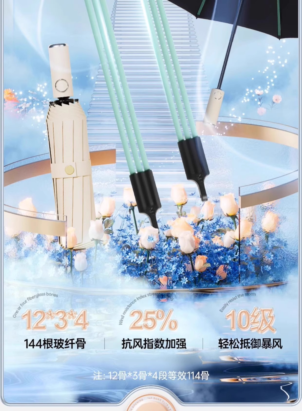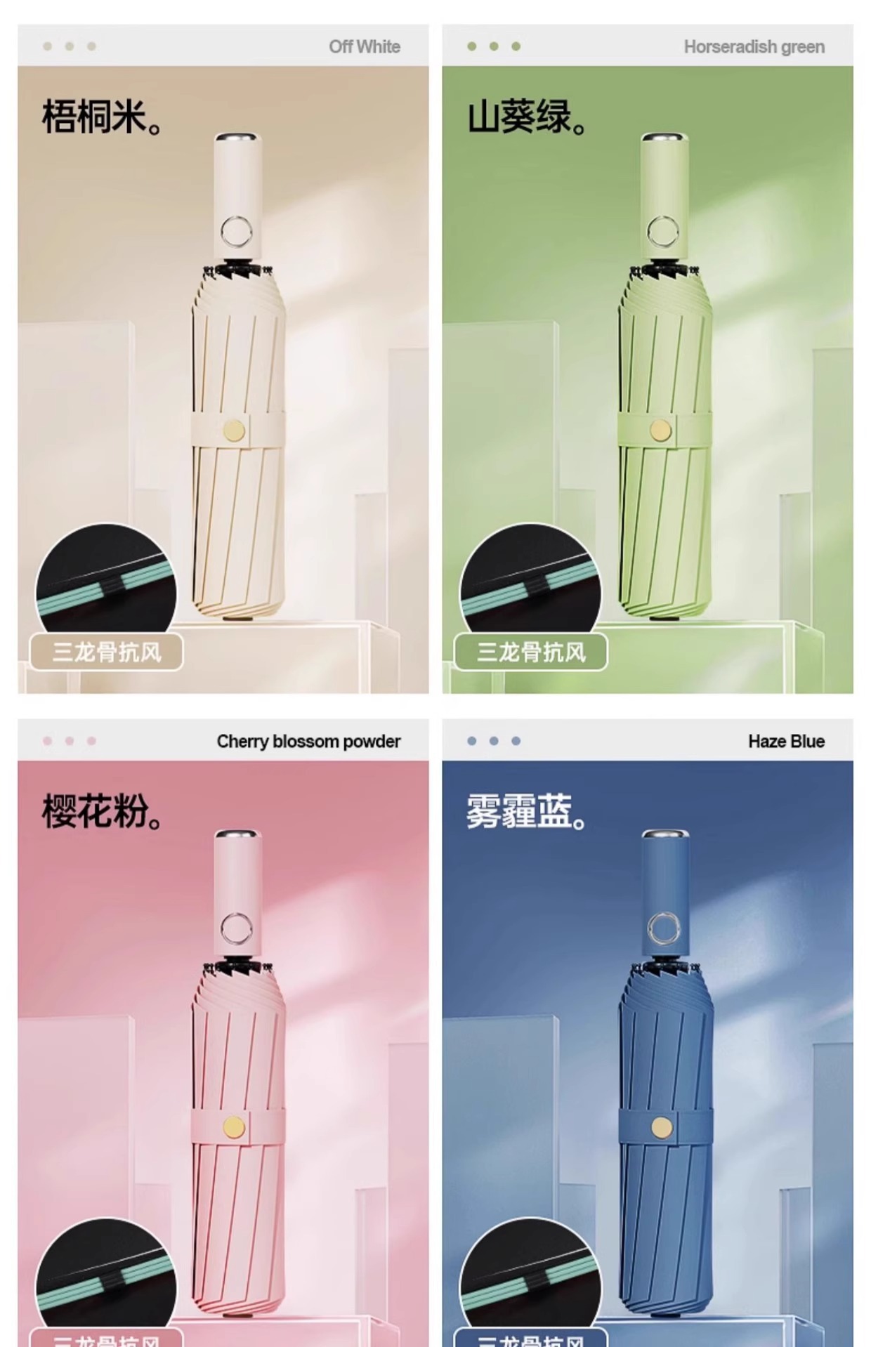 • 전자동 [8개의 미세한 강철 우산 갈비뼈/맑음 또는 비] 하늘색