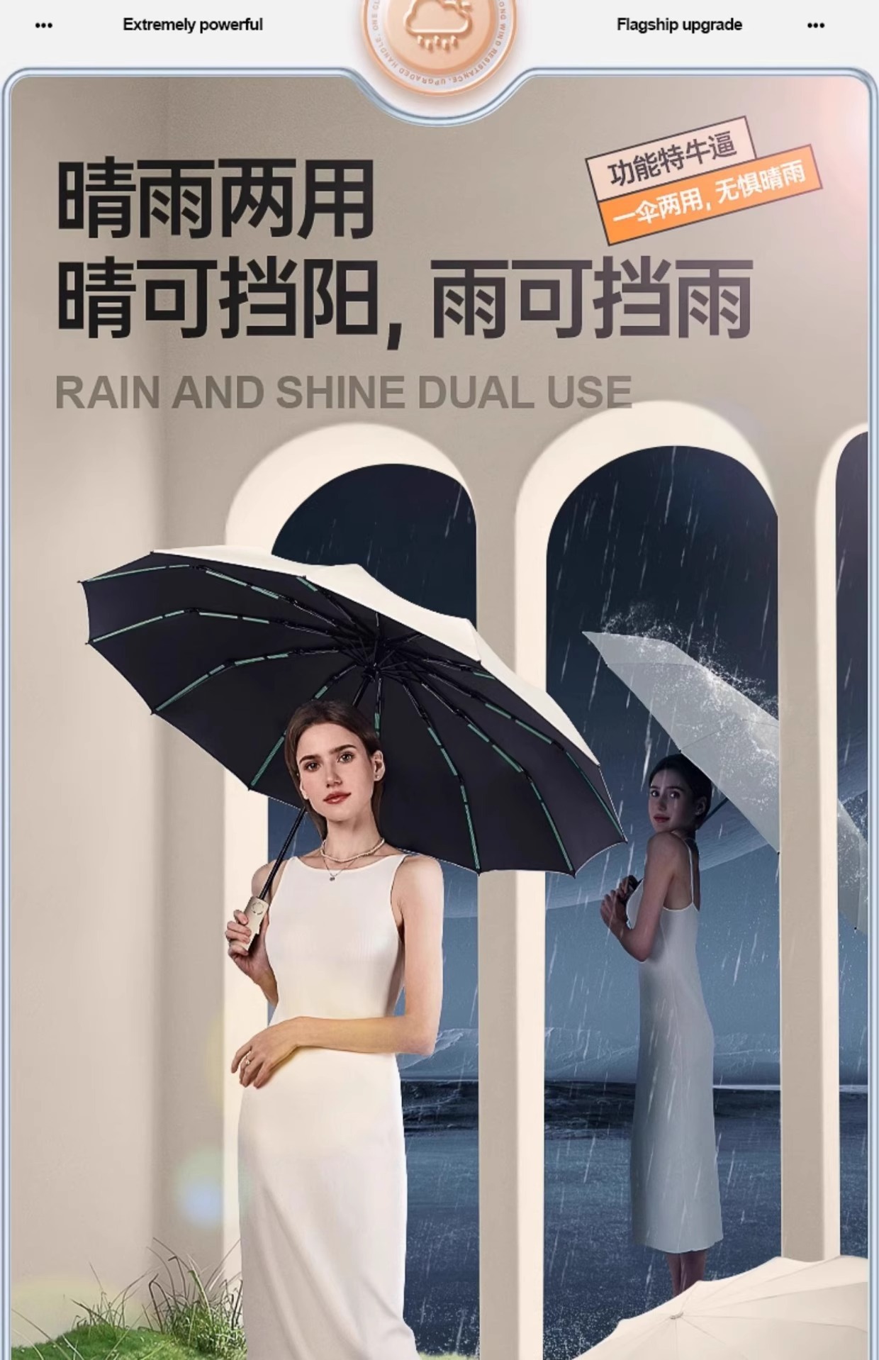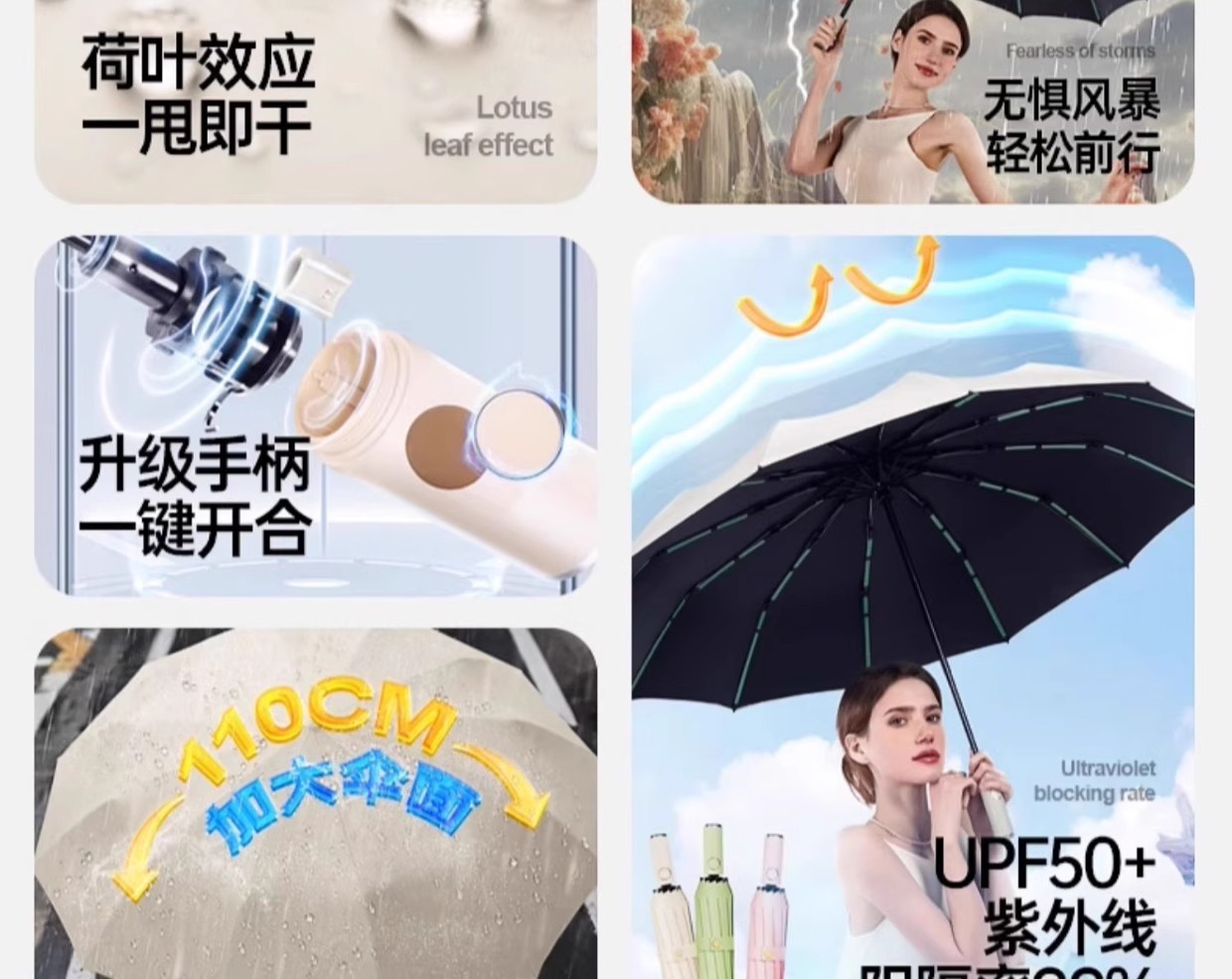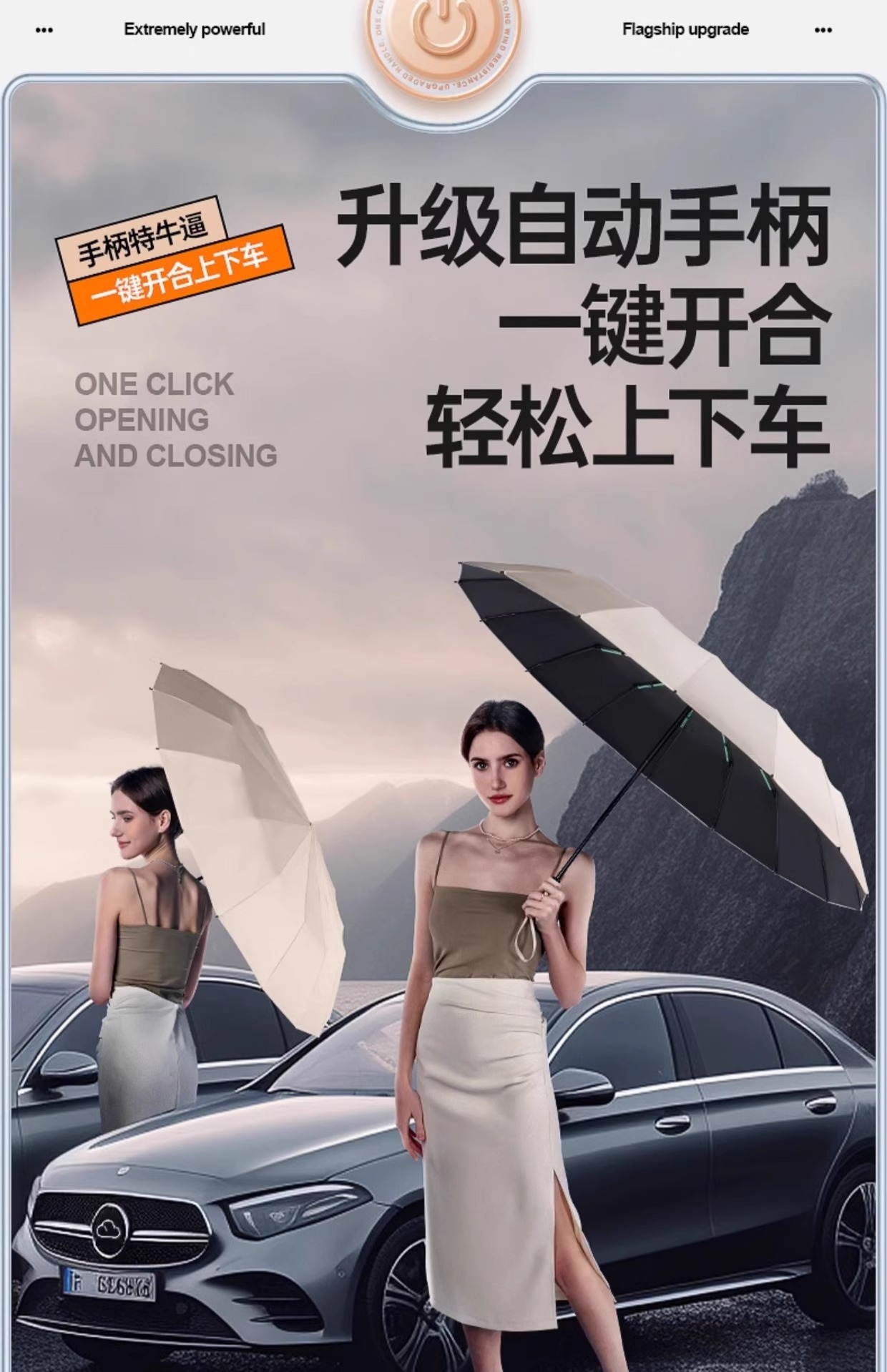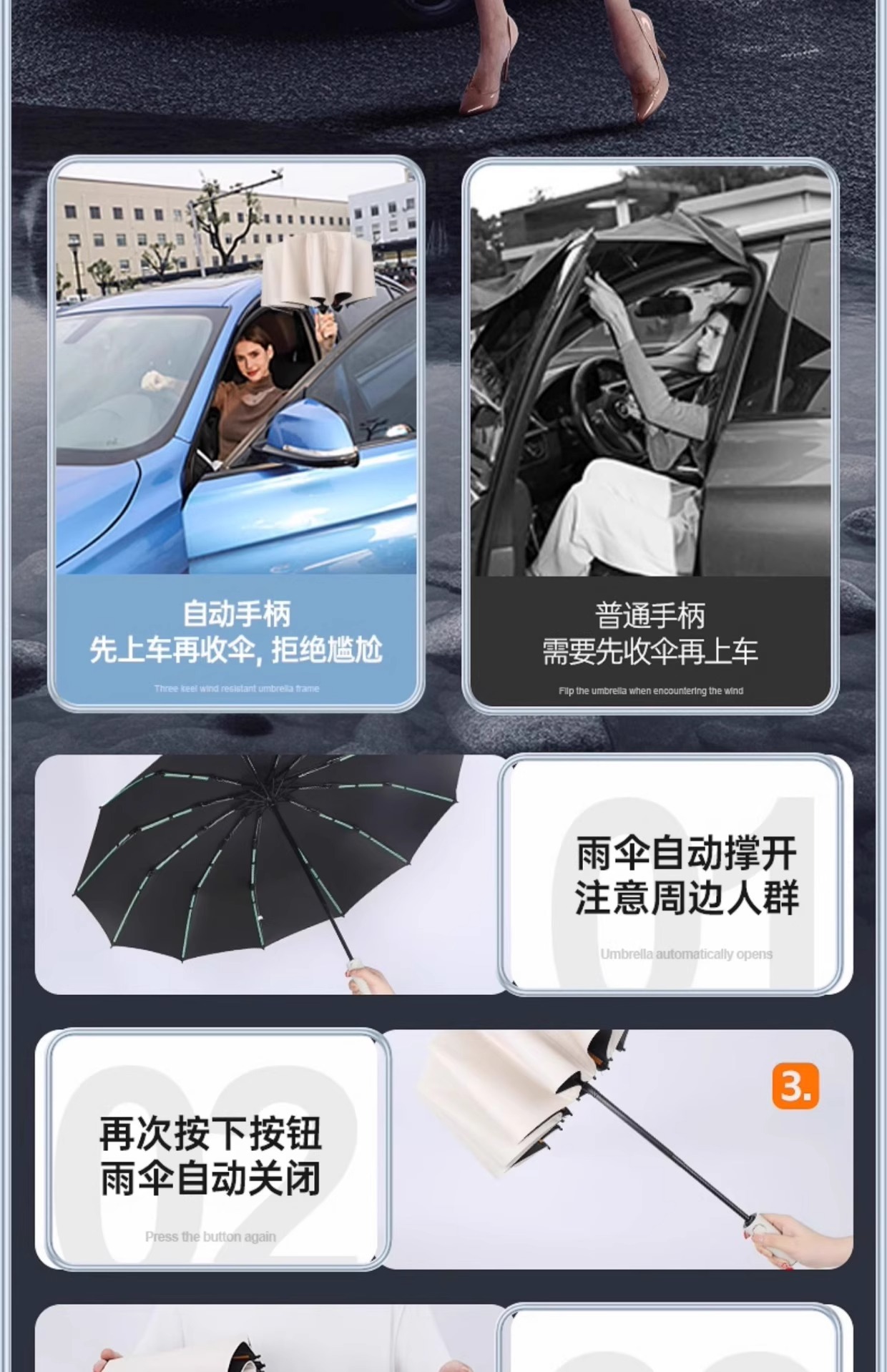 여성과 남성을 위한 완전 자동 우산, 비가 오나 눈이 오나, 초대형 강화 자외선 차단 및 자외선 차단 접이식 태양 우산스토어 가기