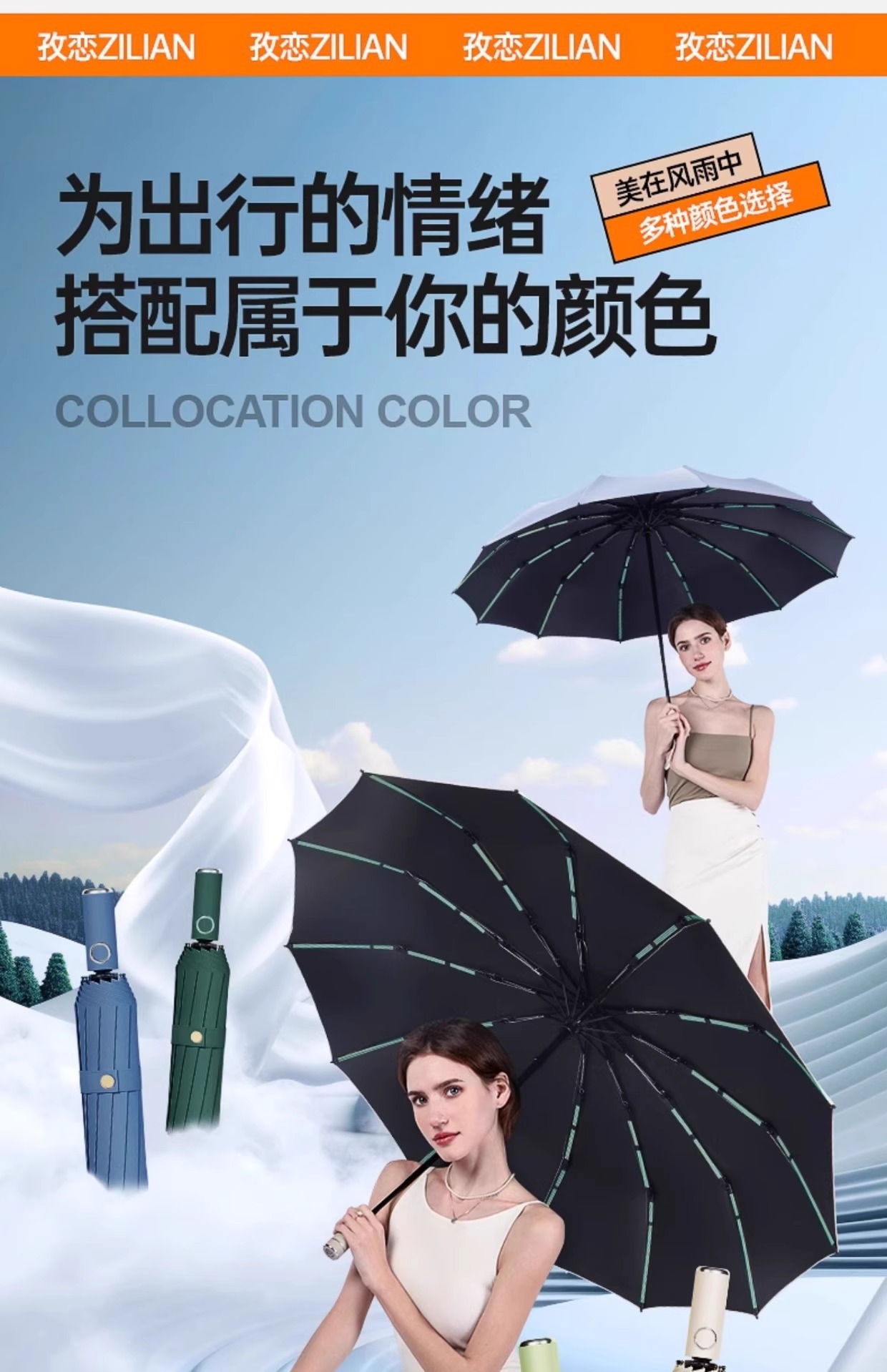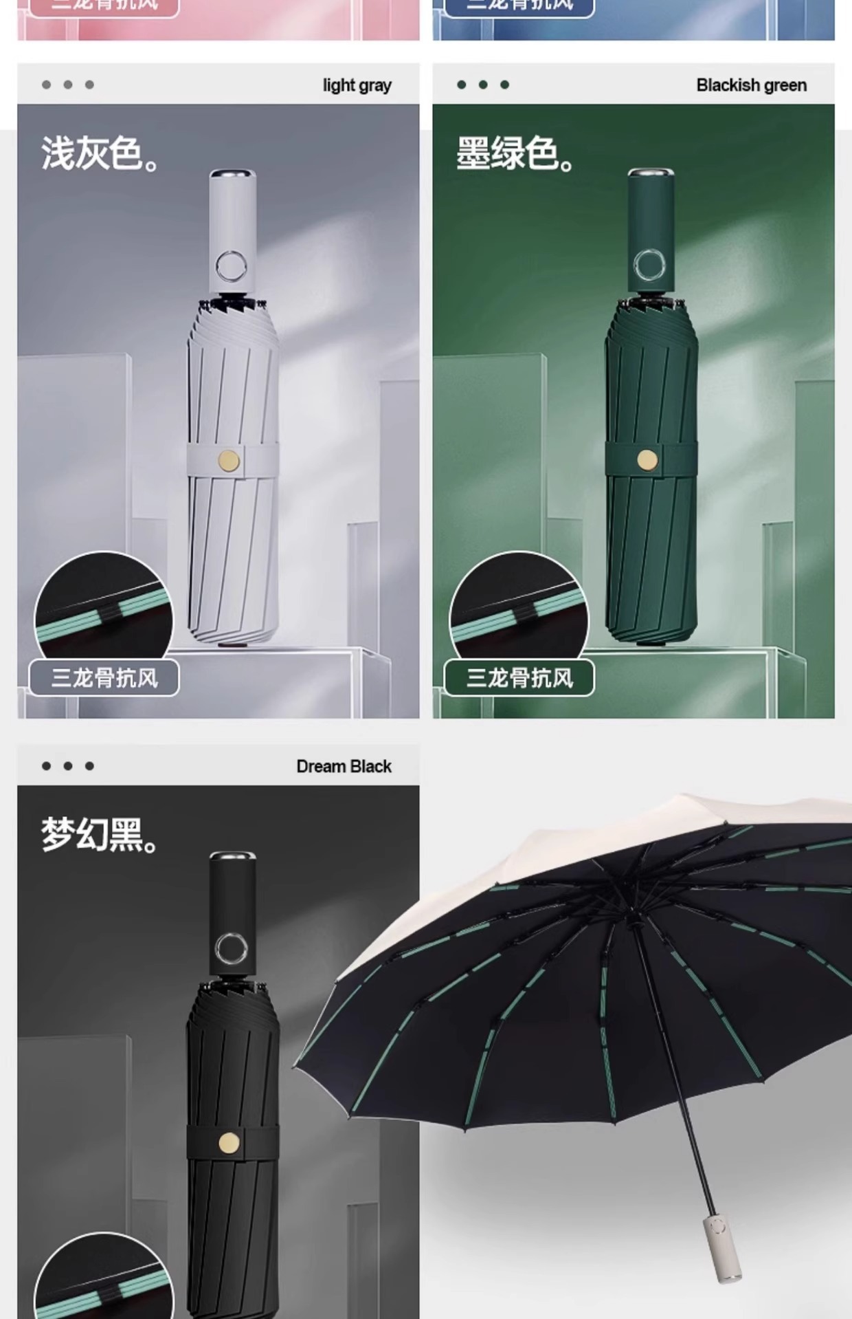 • 전자동 [8개의 미세한 강철 우산 갈비뼈/맑음 또는 비] 진한 녹색