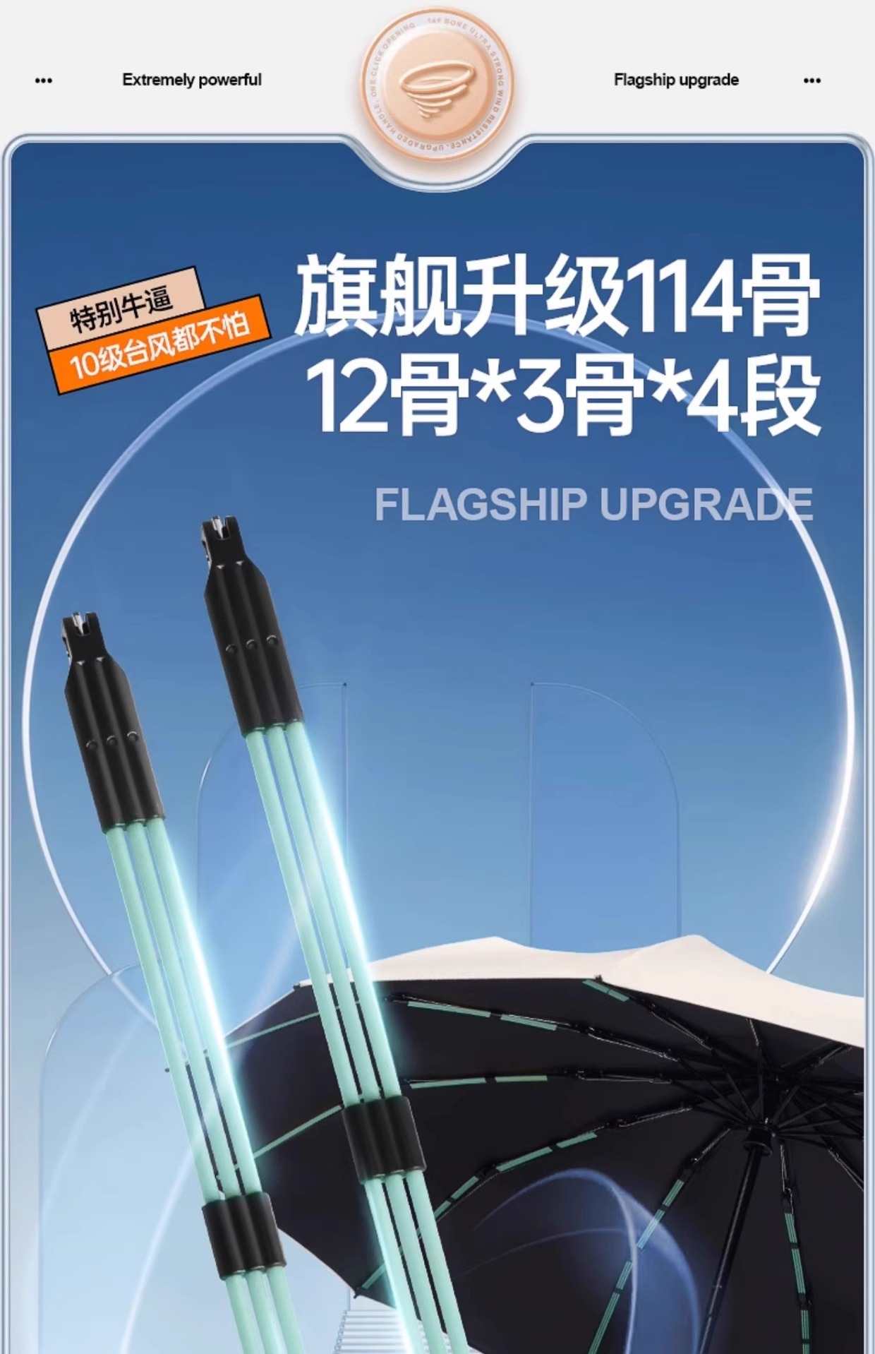 • 전자동 [144 유리섬유 방풍 우산 갈비뼈/맑음 또는 비] 조용한 파란색