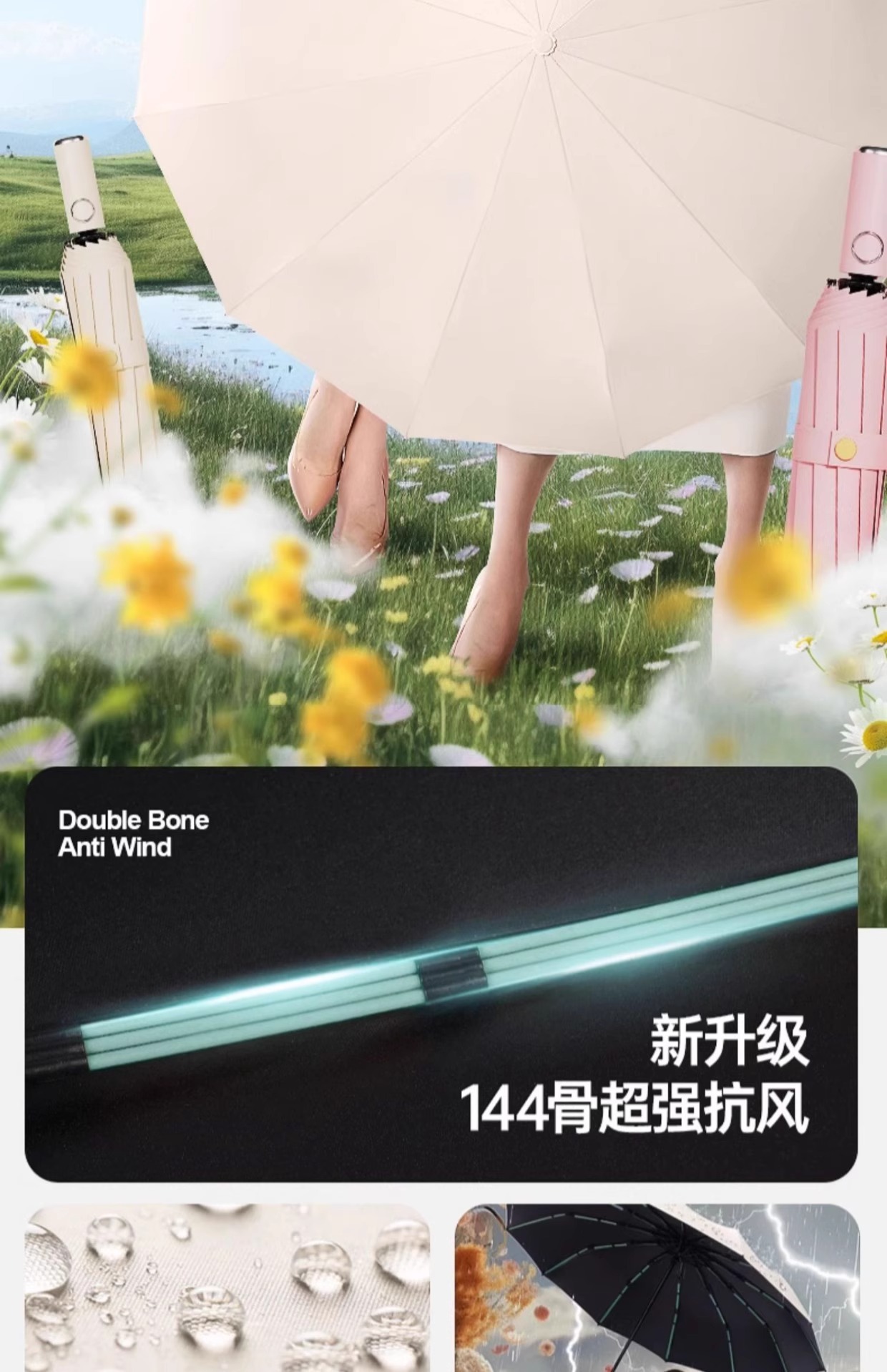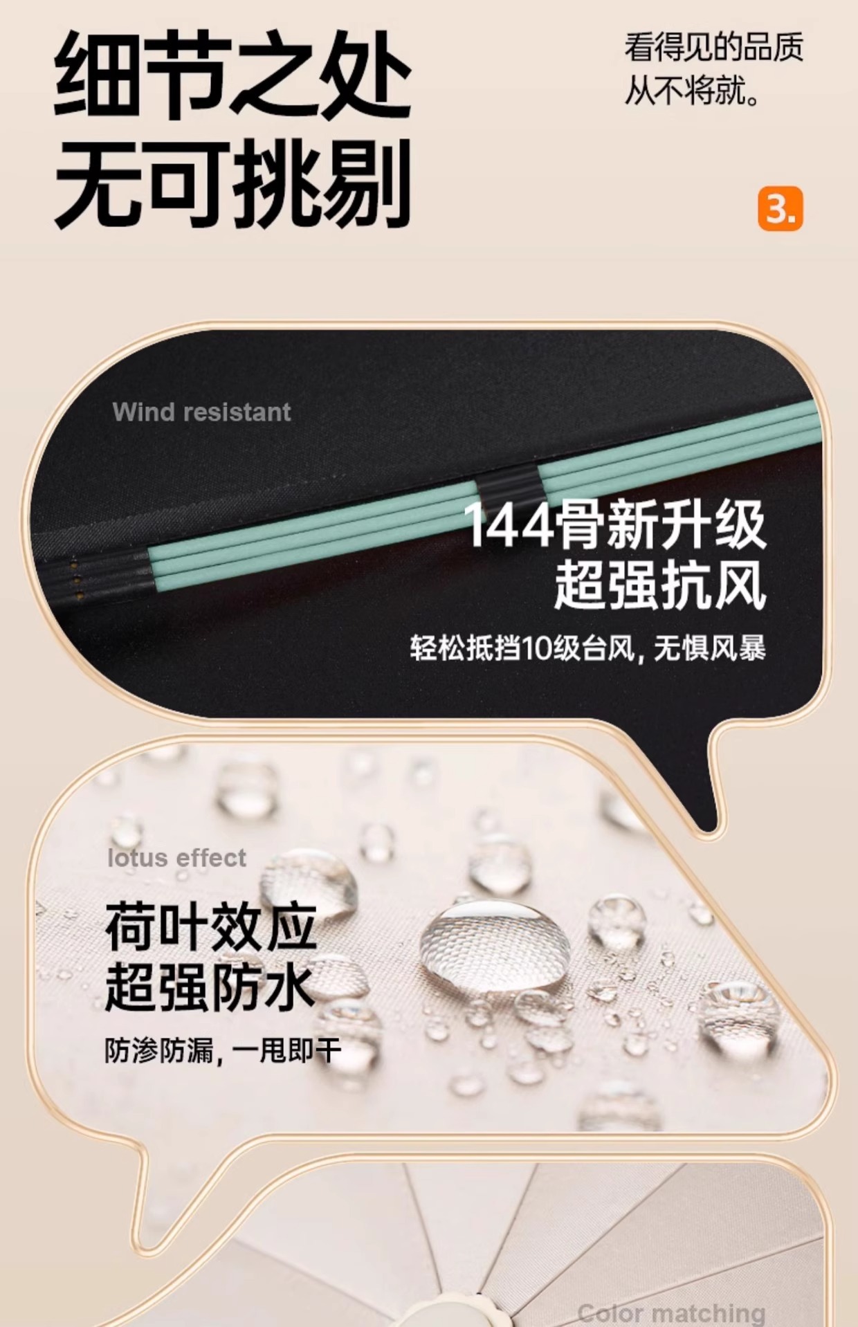 • 전자동 [144 유리섬유 방풍 우산 갈비/맑음 또는 비] 플라타너스 쌀