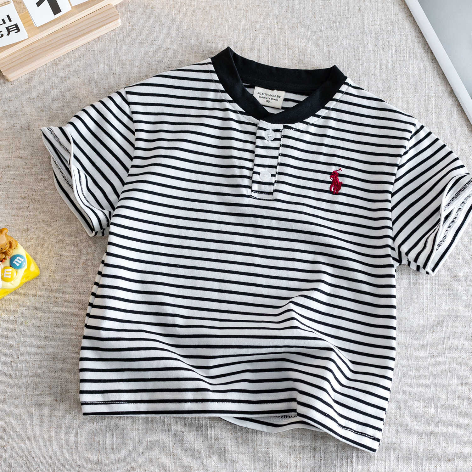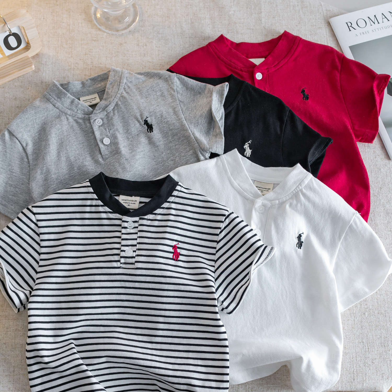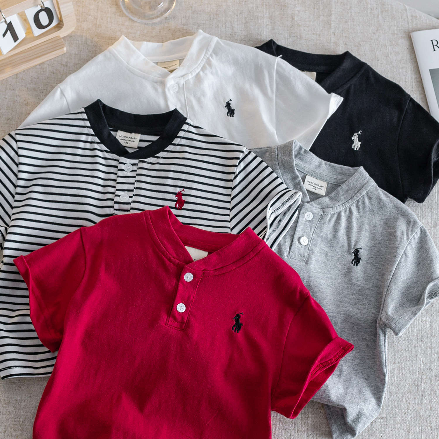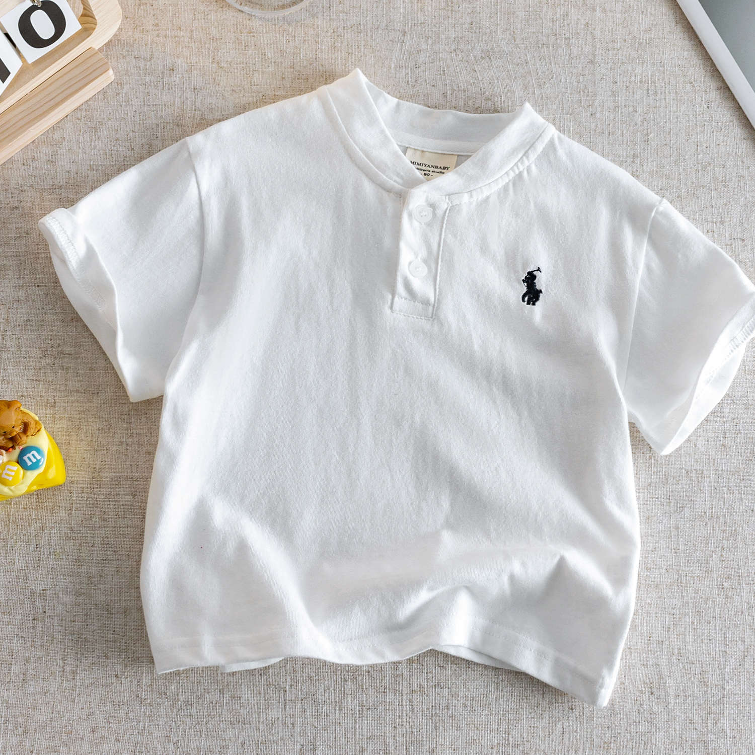 아동 의류 새로운 스타일 2025 어린이 v 넥 반팔 티셔츠 한국 스타일 아기 소녀 반팔 티셔츠 얇은 소년 여름 탑 유행스토어 가기