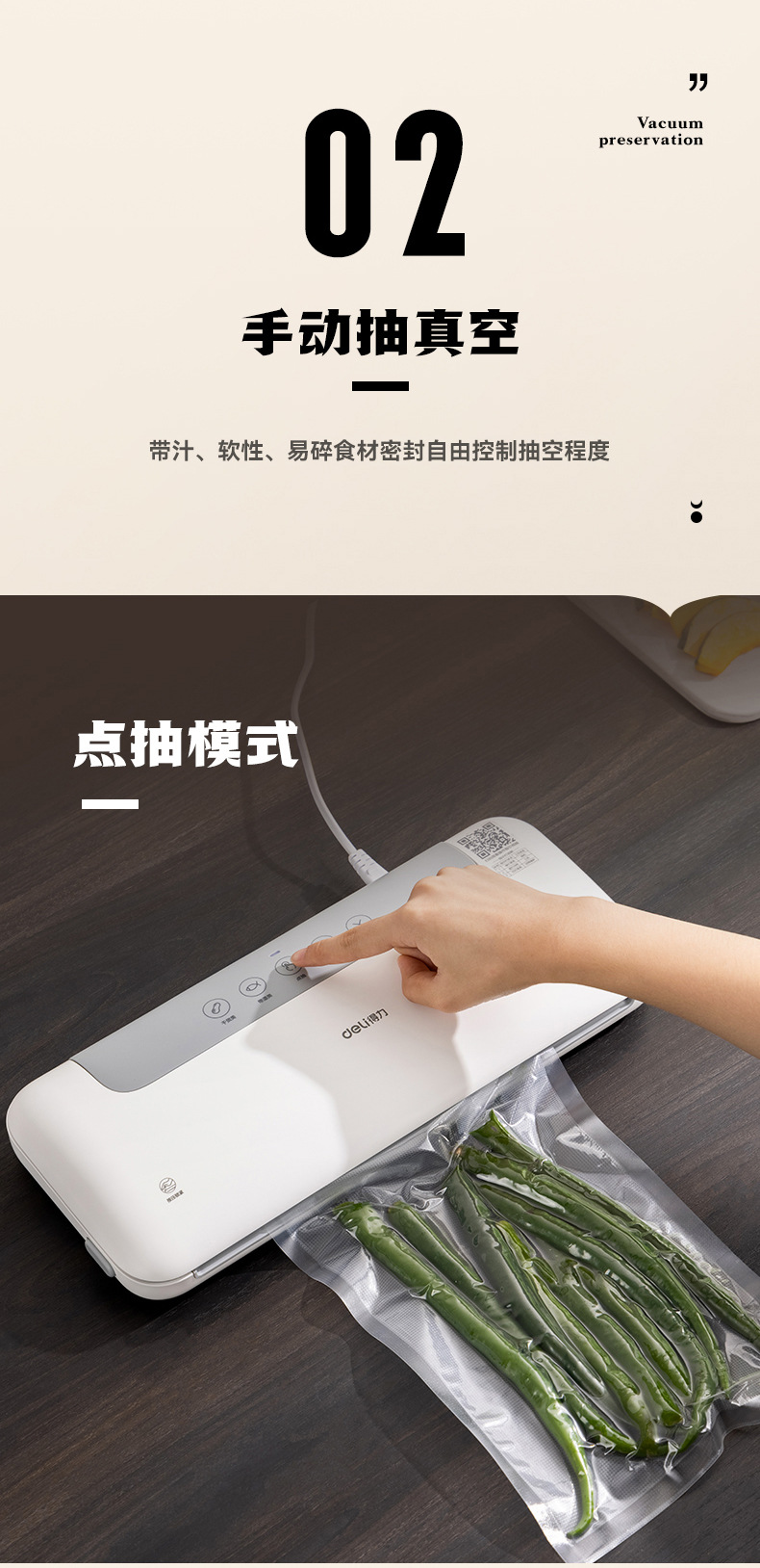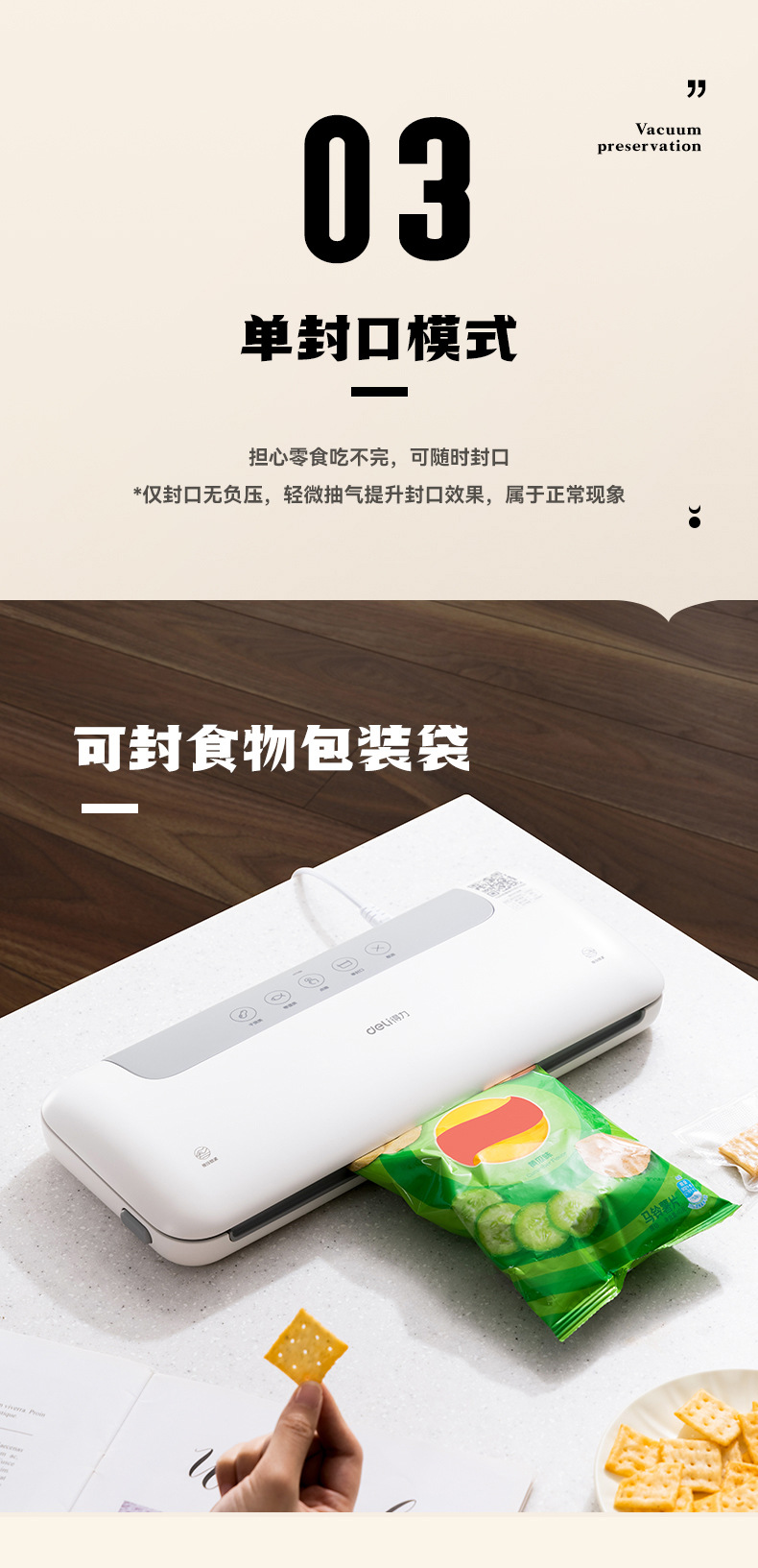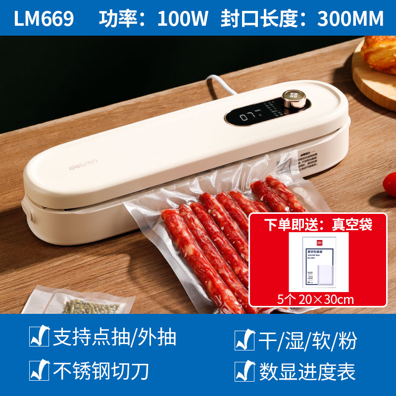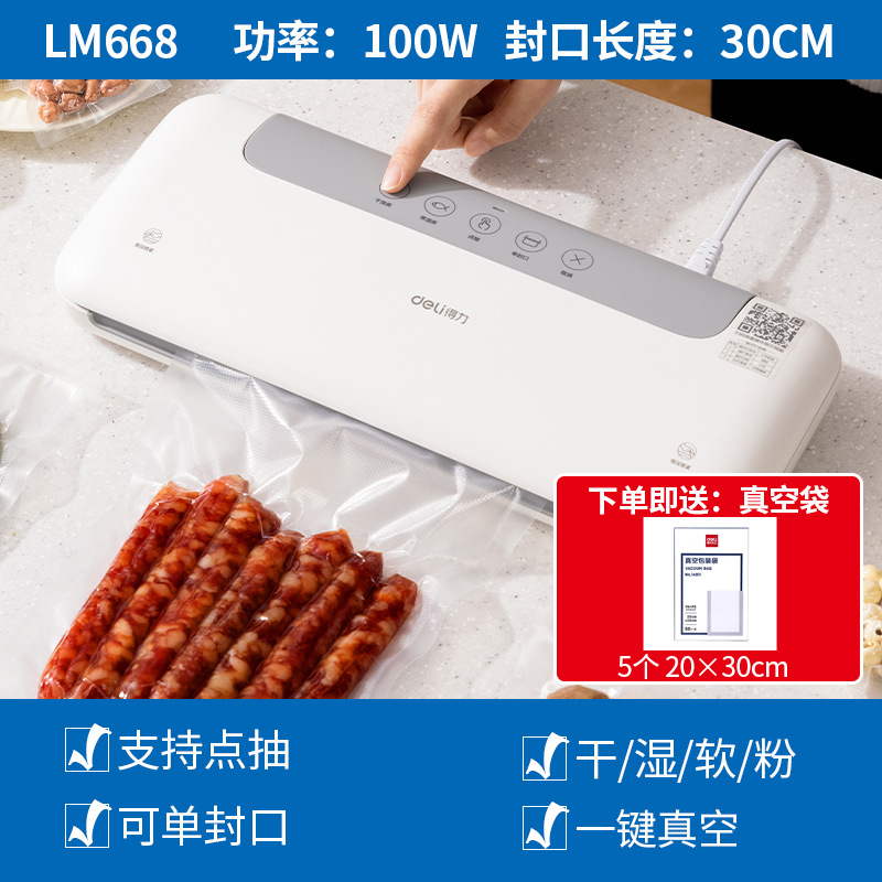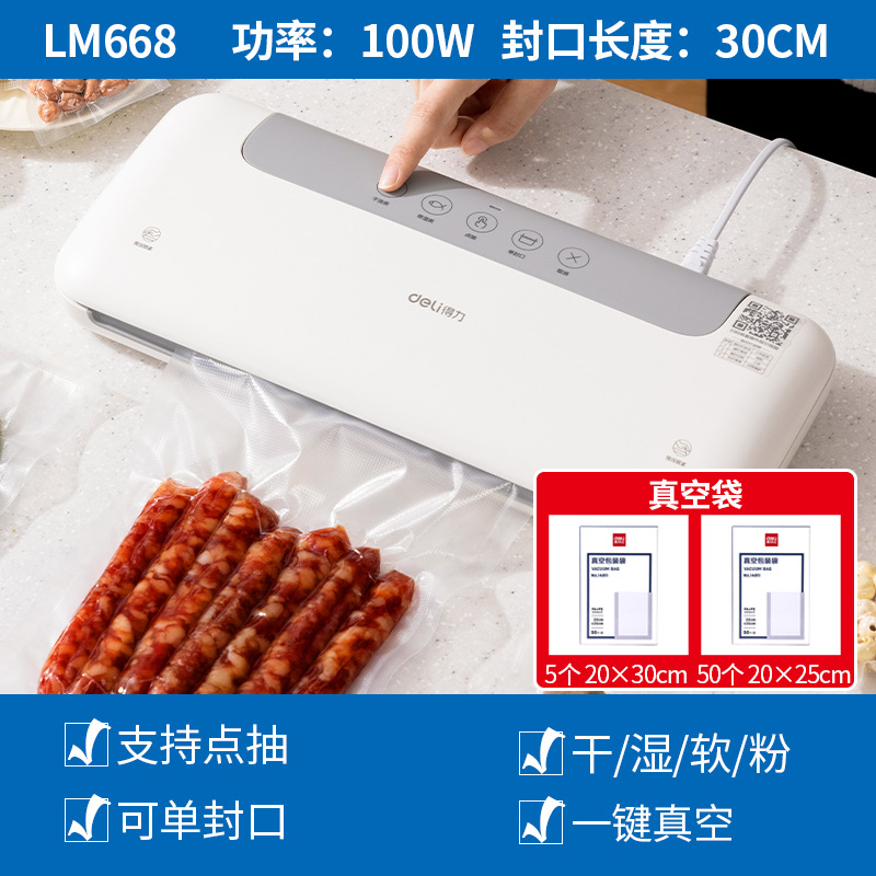 델리 LM668 진공 포장기, 밀봉기, 습식 및 건식 사용 가능, 가정용 및 상업용 플라스틱 밀봉 및 압축 식품 보존 기계