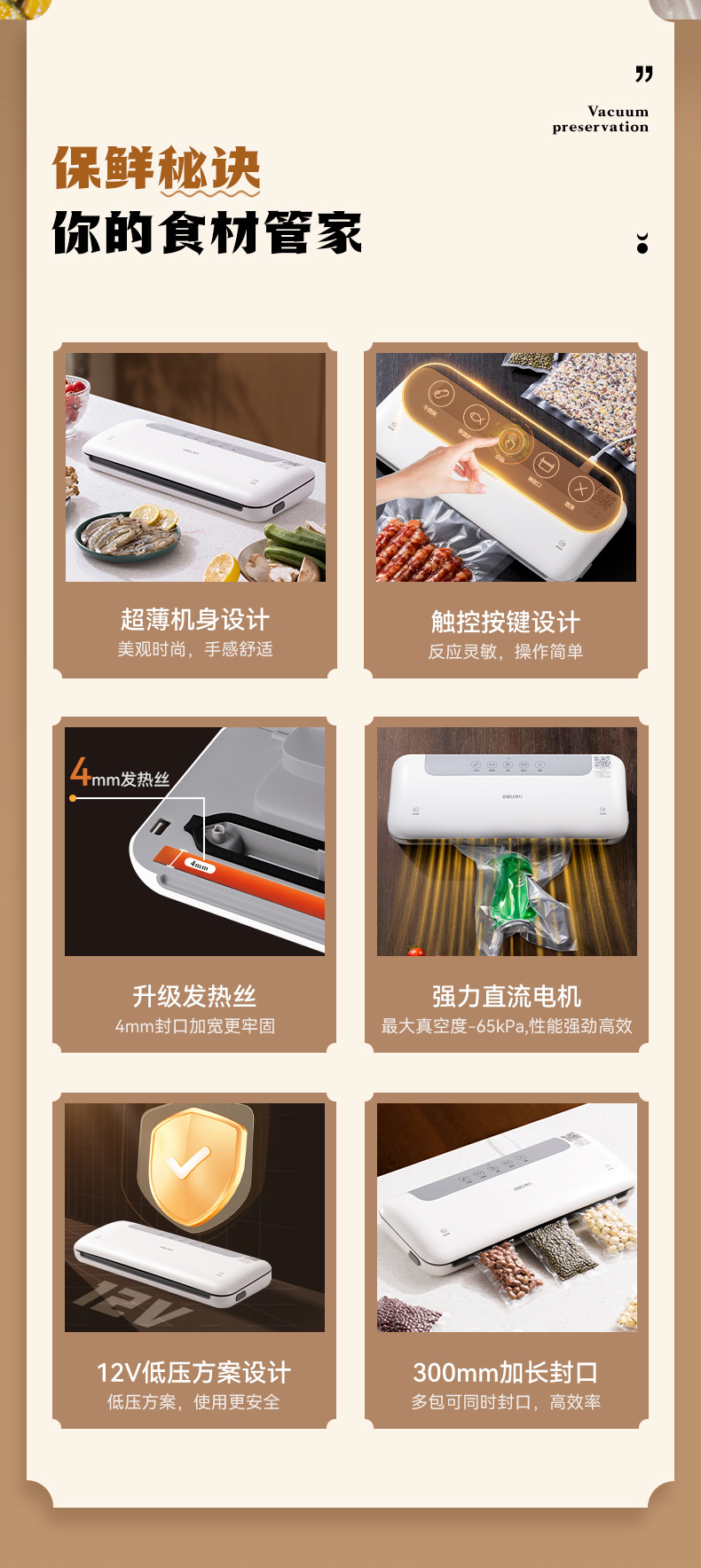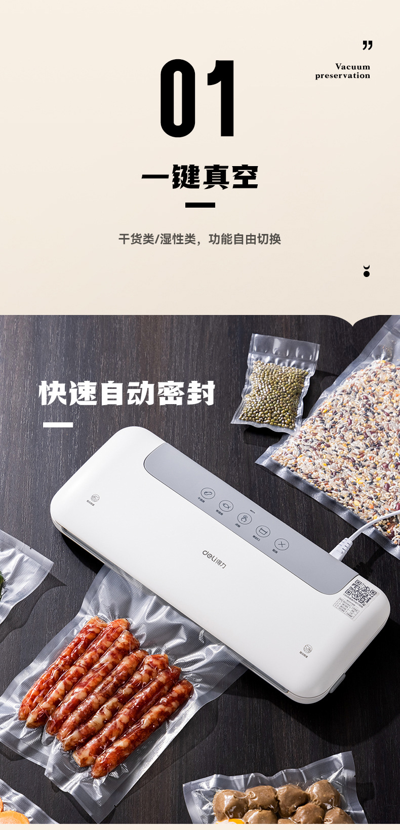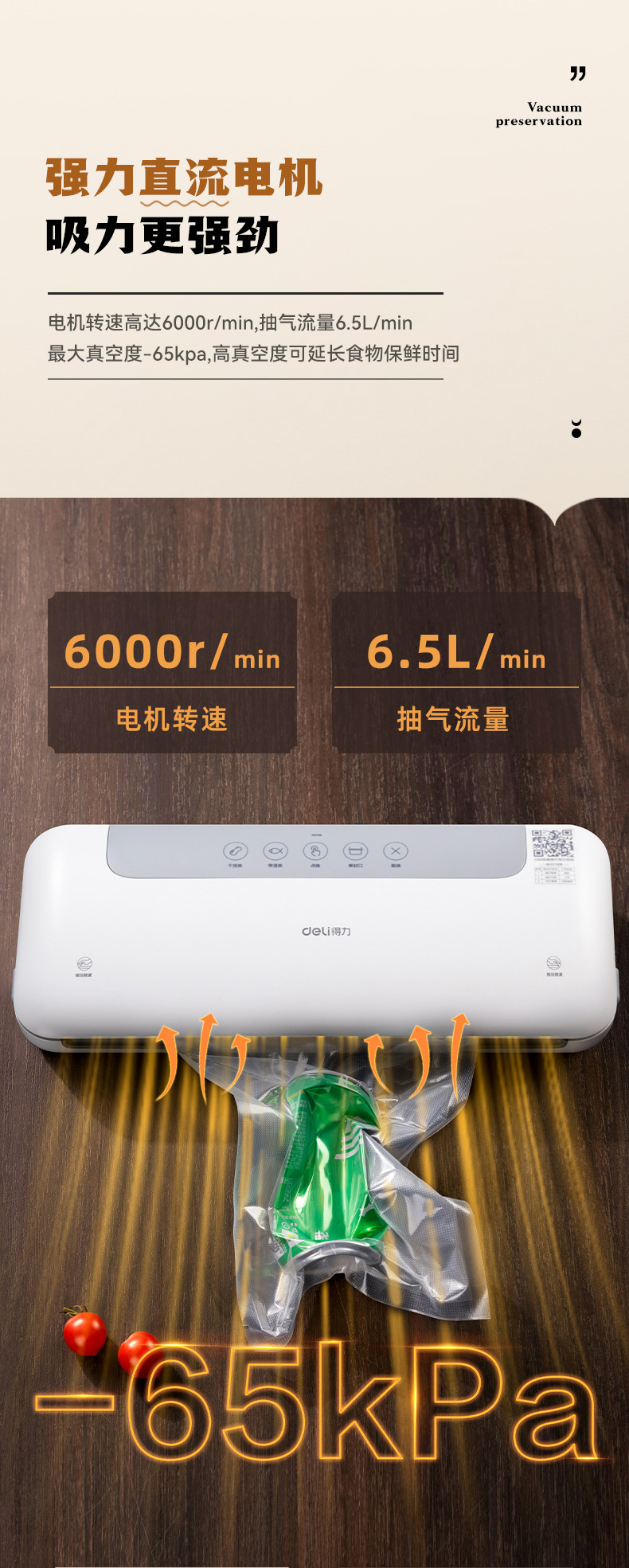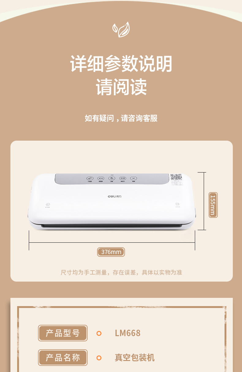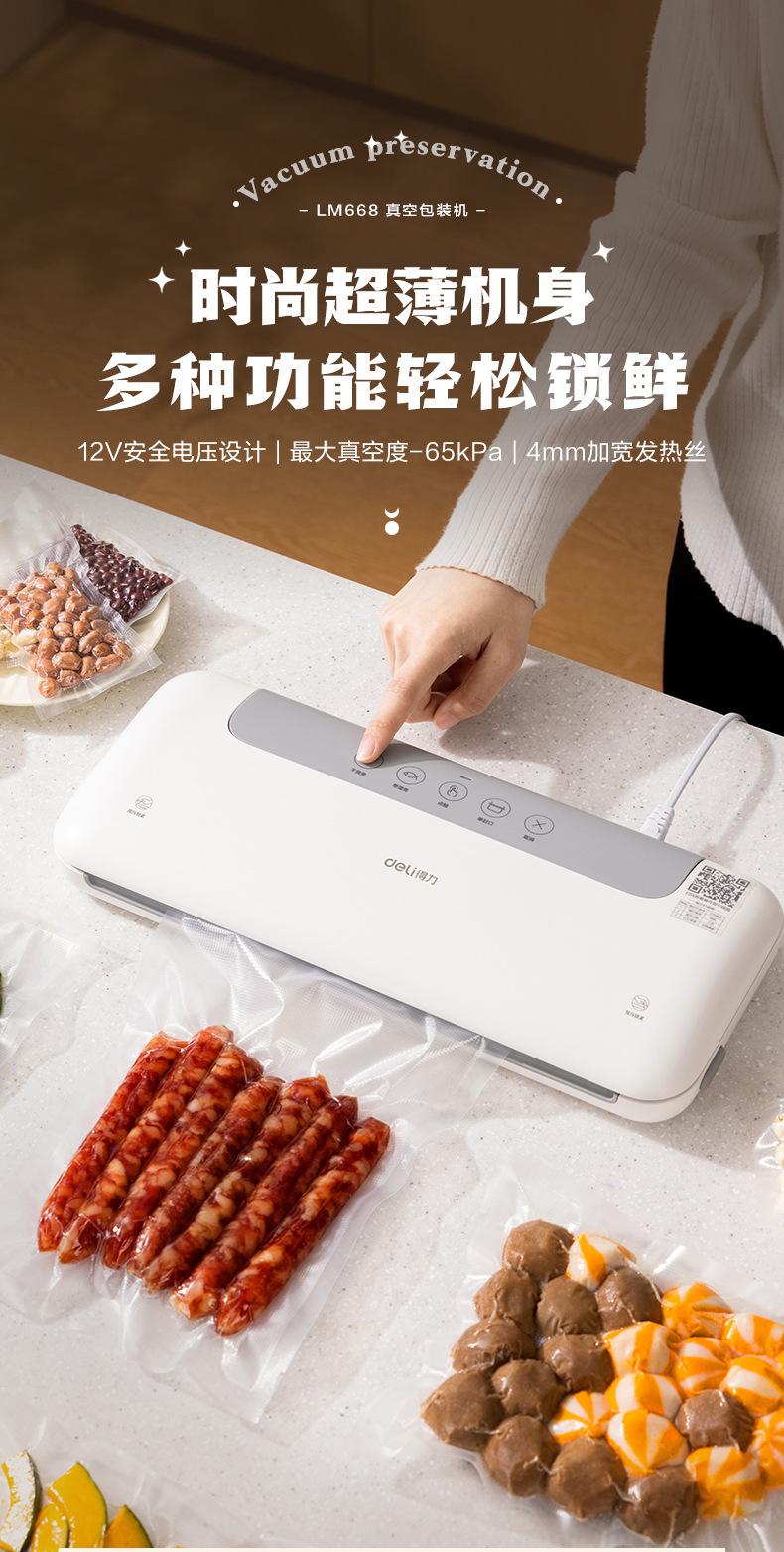 델리 LM668 진공 포장기, 밀봉기, 습식 및 건식 사용 가능, 가정용 및 상업용 플라스틱 밀봉 및 압축 식품 보존 기계스토어 가기
