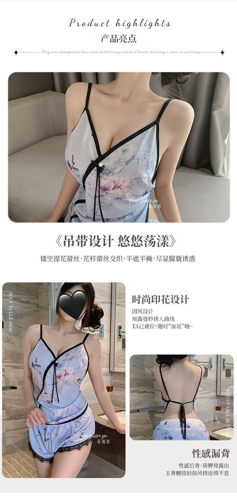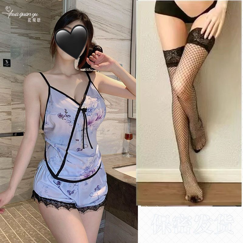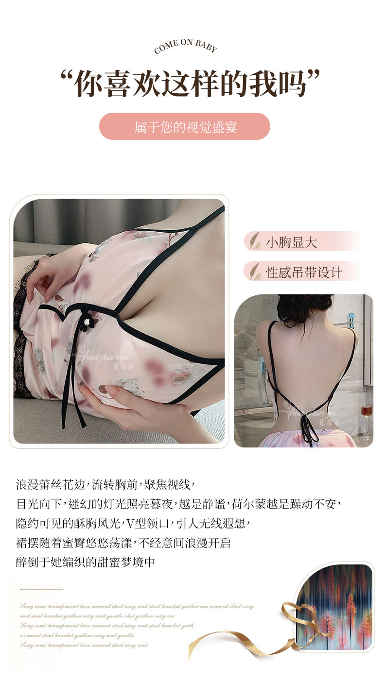 2025 새로운 여름 스타일 아이스 실크 뱃주머니 잠옷 여성 성인 섹시한 서스펜더 백리스 속옷 얇은스토어 가기